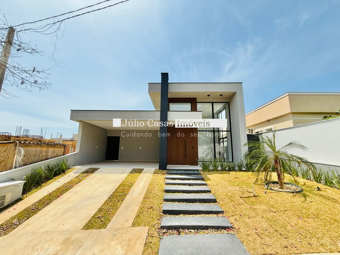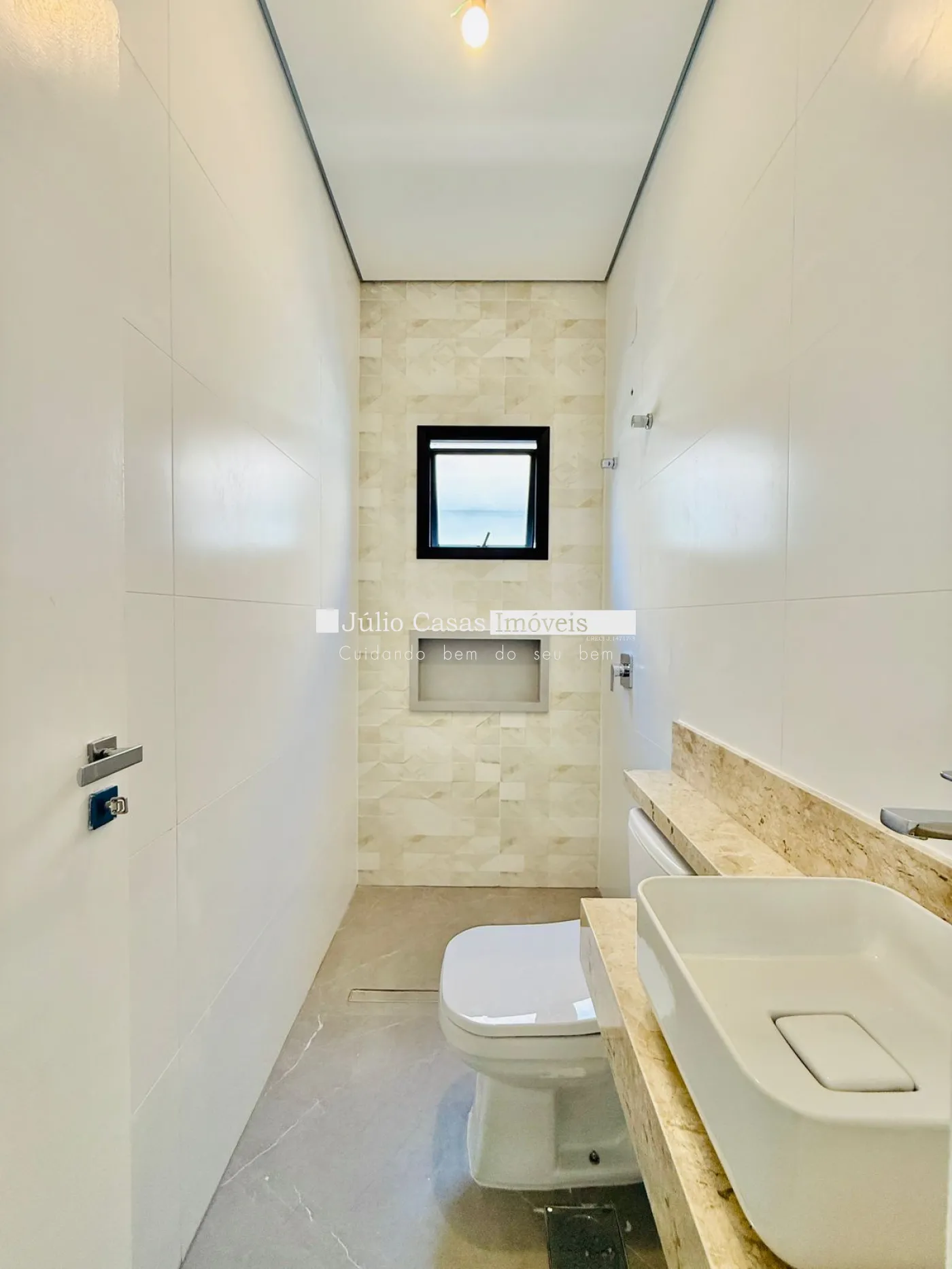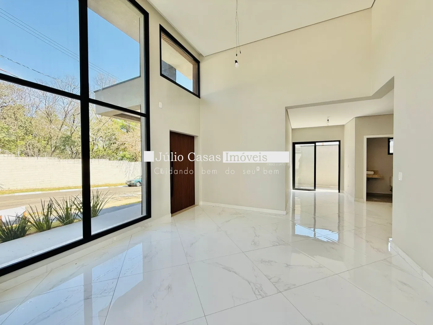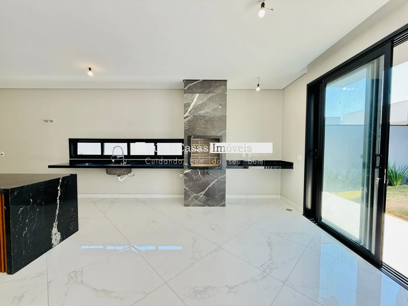 Casa térrea a venda em condomínio com sala 2 ambientes com pé direito duplo, cozinha integrada com ilha ampla em granito São Gabriel, a área gourmet com churrasqueira e pia, lavabo, 3 suítes amplas 1 sendo máster com espaço para closet, quarto em piso carpete madeira, ambientes frios e sala em porcelanato primeira linha, persianas automatizadas, banheiros com nicho e pia em mármore travertino com cuba sobreposta. quintal gramado, exaustão para churrasqueira, pressurizador na caixa d`água, infraestrutura completa para ar condicionado, e infraestrutura pronta para aquecedor solar. Entrada de serviço independente.