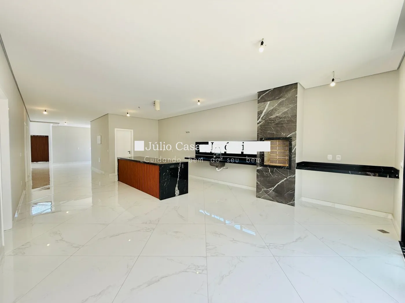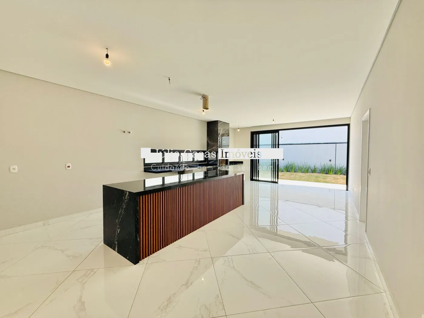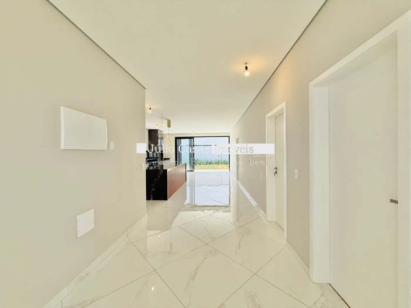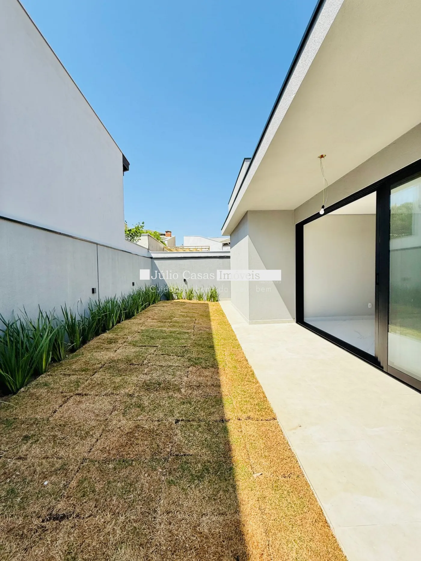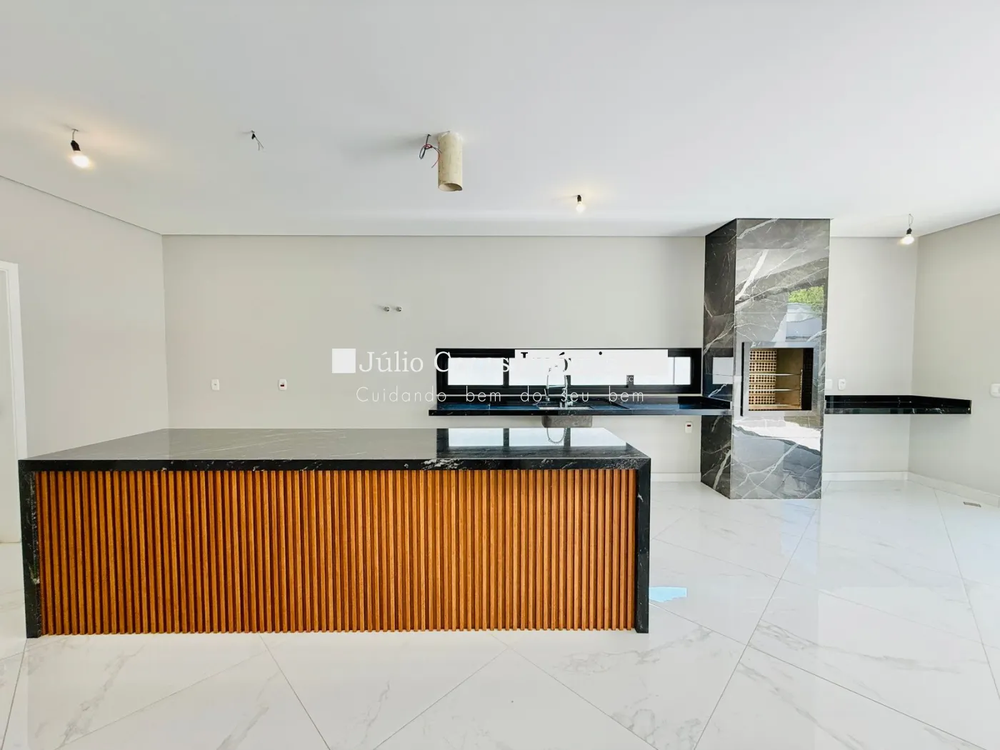 Casa térrea a venda em condomínio com sala 2 ambientes com pé direito duplo, cozinha integrada com ilha ampla em granito São Gabriel, a área gourmet com churrasqueira e pia, lavabo, 3 suítes amplas 1 sendo máster com espaço para closet, quarto em piso carpete madeira, ambientes frios e sala em porcelanato primeira linha, persianas automatizadas, banheiros com nicho e pia em mármore travertino com cuba sobreposta. quintal gramado, exaustão para churrasqueira, pressurizador na caixa d`água, infraestrutura completa para ar condicionado, e infraestrutura pronta para aquecedor solar. Entrada de serviço independente.