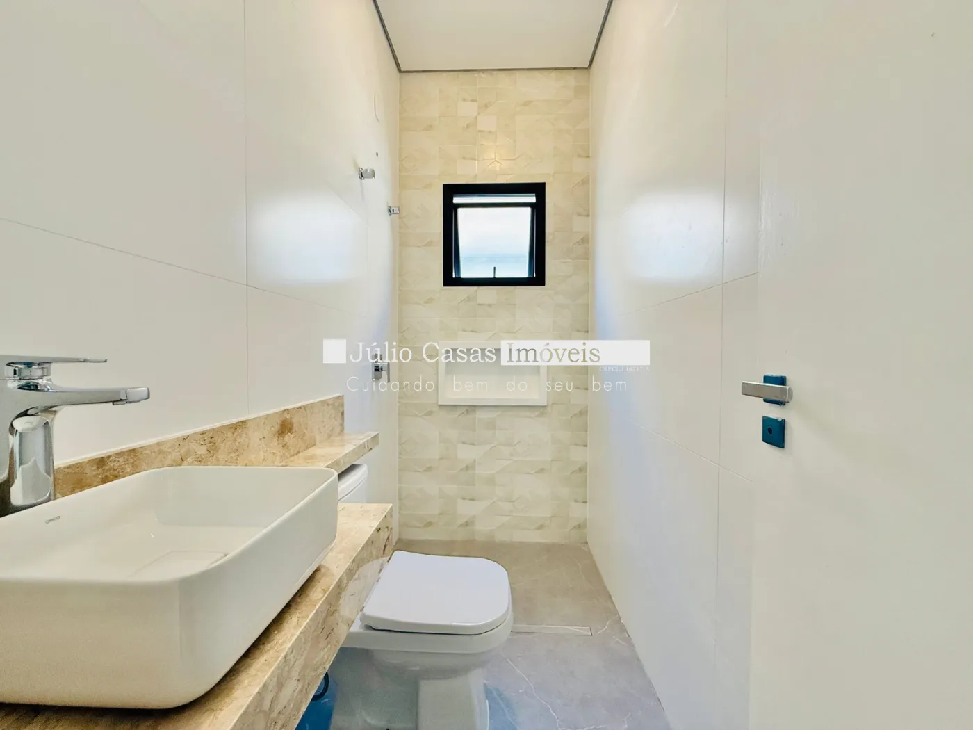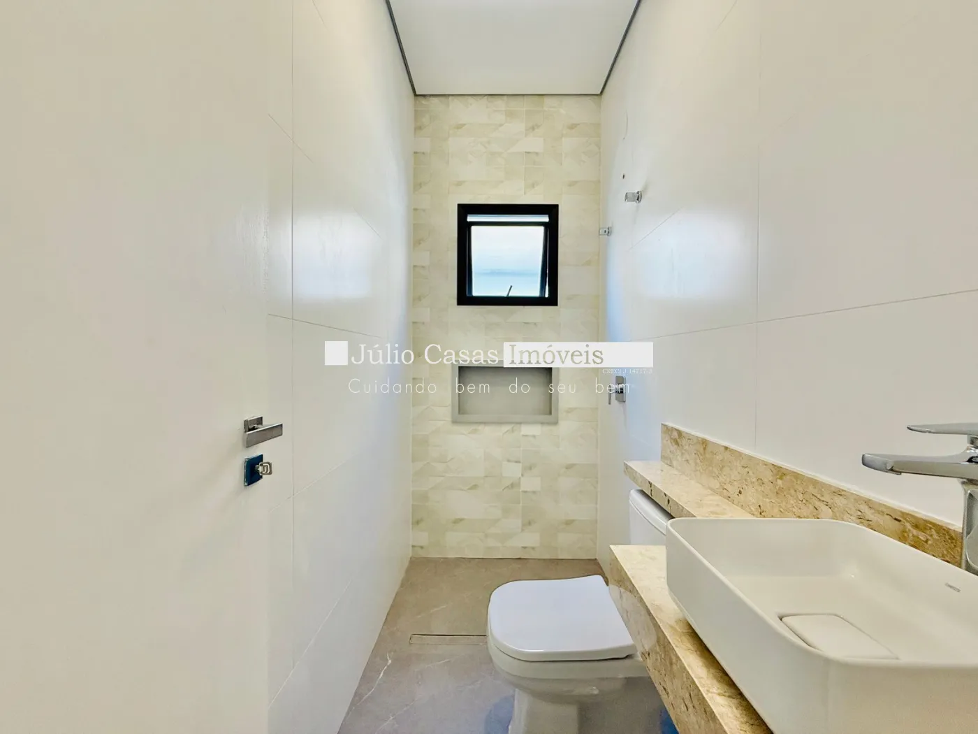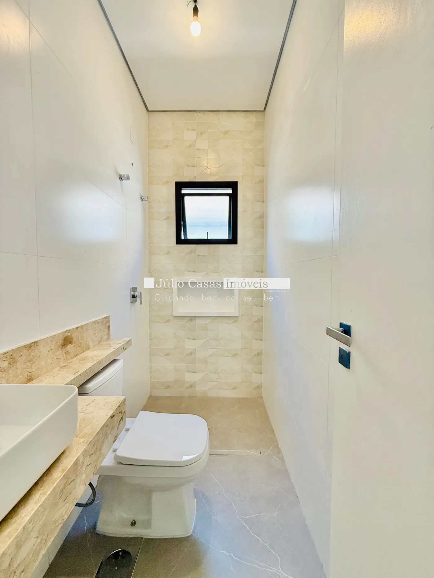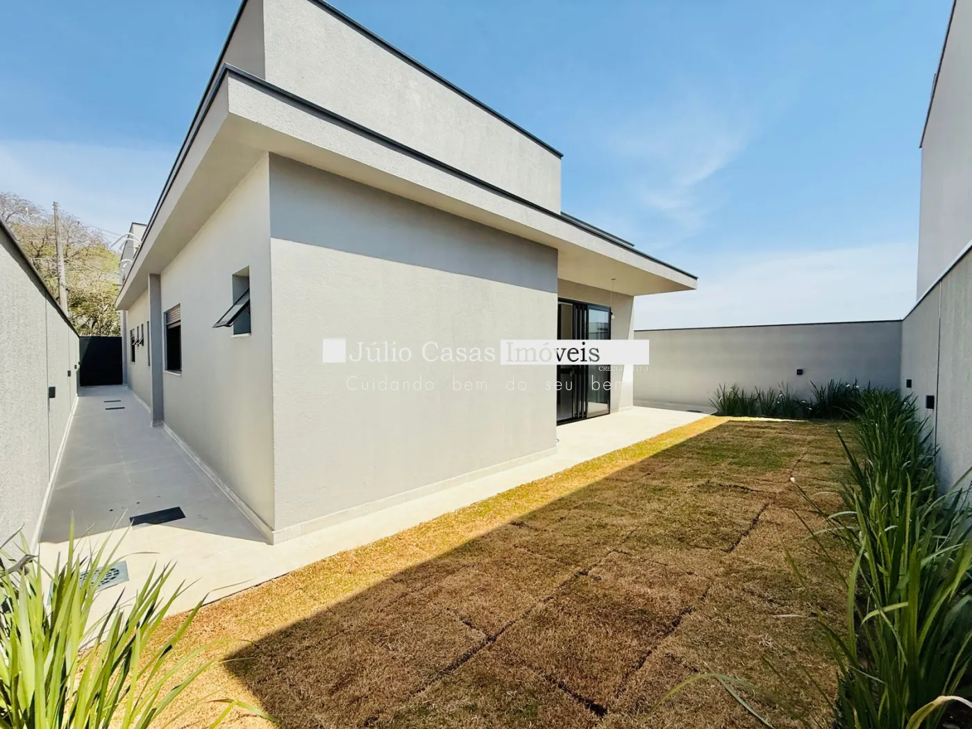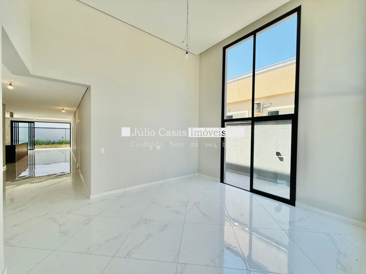 Casa térrea a venda em condomínio com sala 2 ambientes com pé direito duplo, cozinha integrada com ilha ampla em granito São Gabriel, a área gourmet com churrasqueira e pia, lavabo, 3 suítes amplas 1 sendo máster com espaço para closet, quarto em piso carpete madeira, ambientes frios e sala em porcelanato primeira linha, persianas automatizadas, banheiros com nicho e pia em mármore travertino com cuba sobreposta. quintal gramado, exaustão para churrasqueira, pressurizador na caixa d`água, infraestrutura completa para ar condicionado, e infraestrutura pronta para aquecedor solar. Entrada de serviço independente.