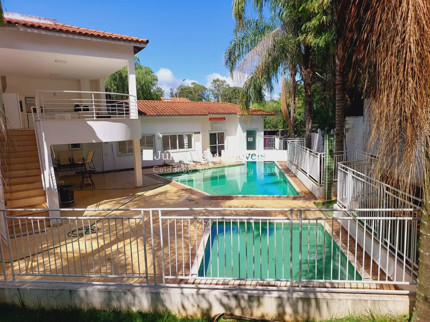 Mercadinho, quadra poliesportiva, piscina adulto e infantil, salão de festas e lindo jardim.