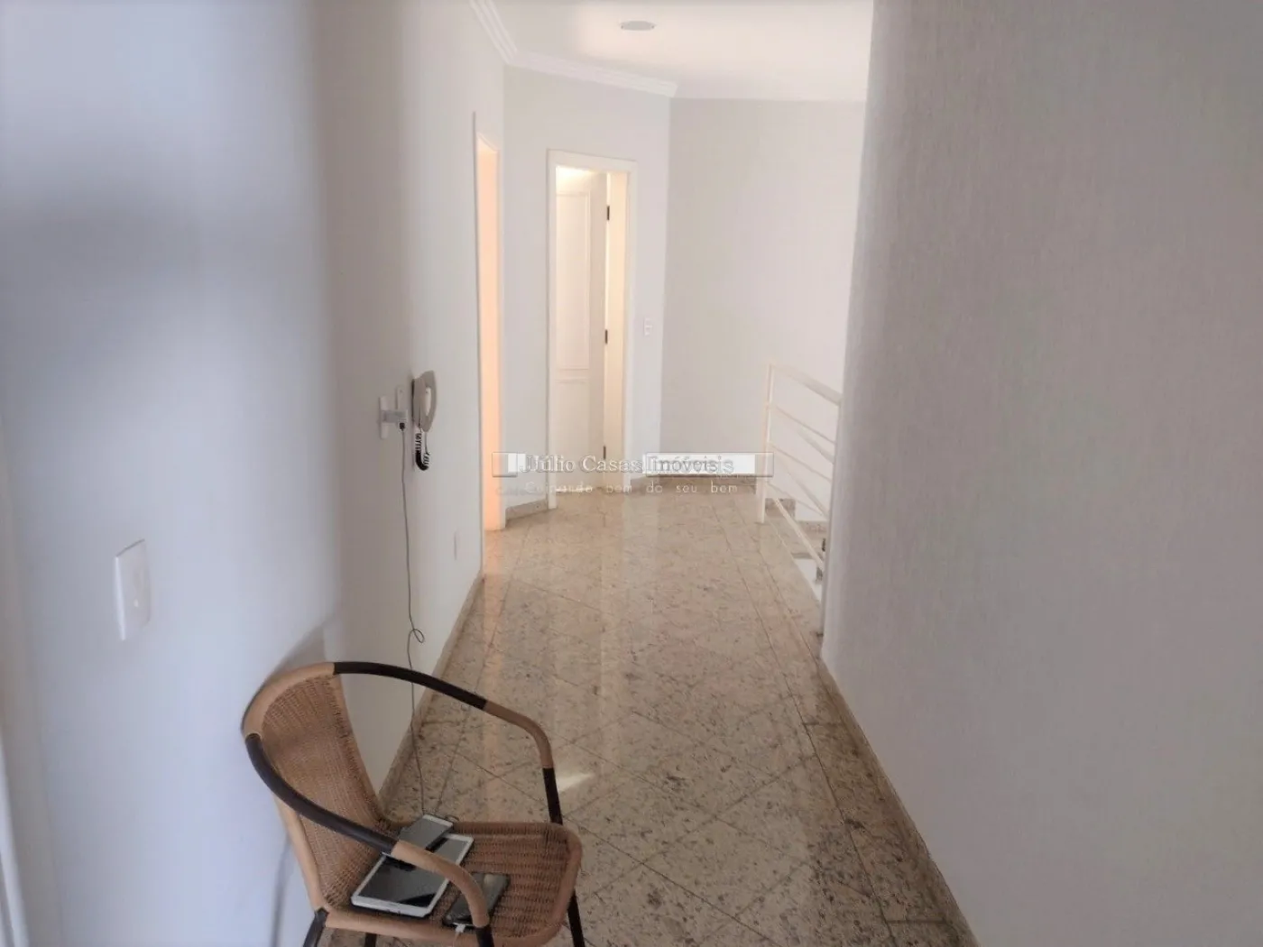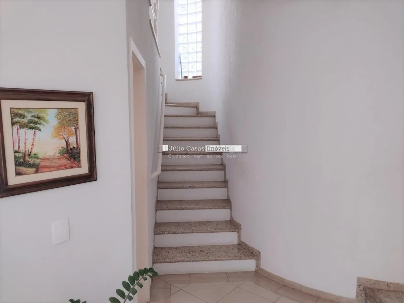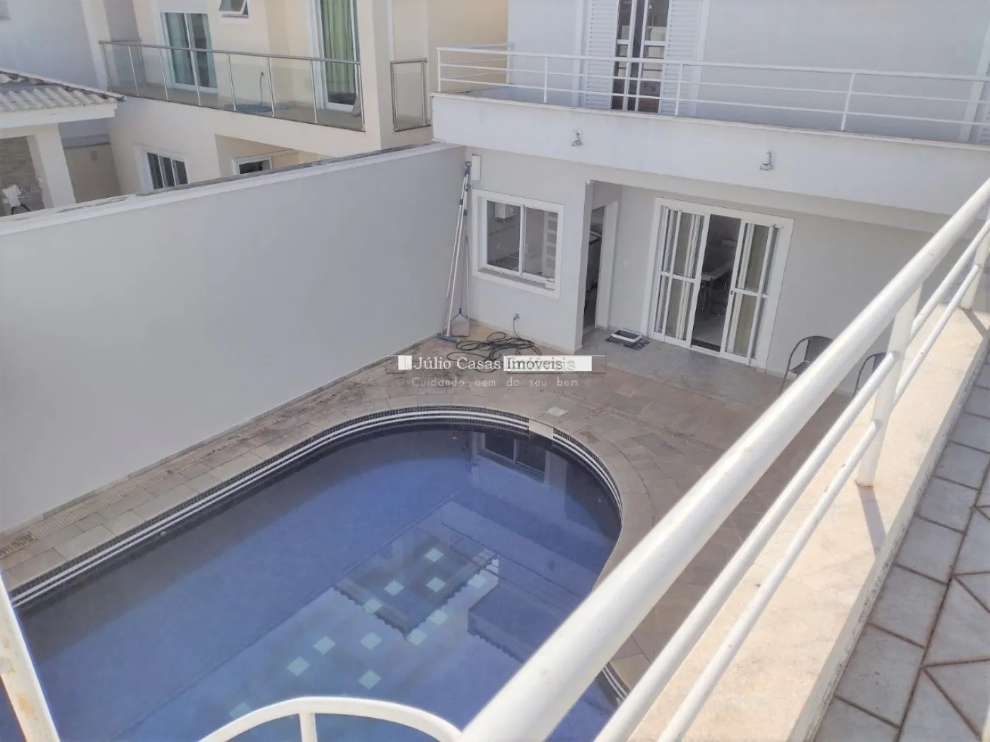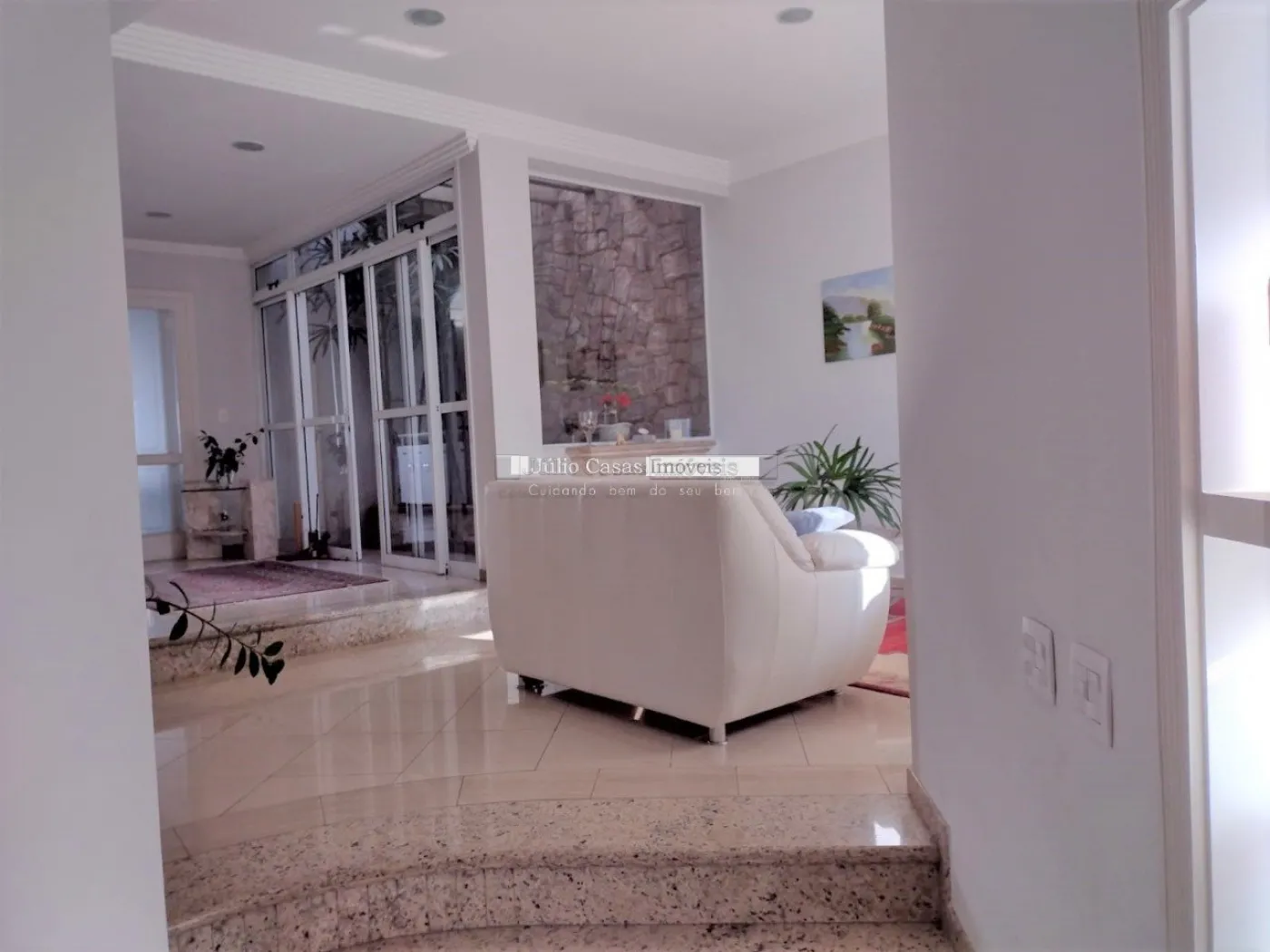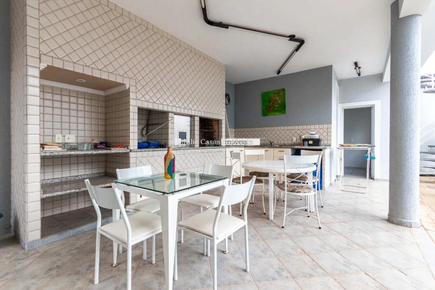 Cozinha com armários planejados despensa e lavanderia. Ampla área gourmet com churrasqueira, forno para pizza, balcão de apoio em `U` em pedra são gabriel, integrado a área com piscina circundado por um exuberante jardim e sauna à vapor. Além de uma sala de repouso podendo ser utilizada como sala de ginástica. E dependência de empregada com banheiro independente. No andar superior são quatro dormitórios sendo três suítes com banheiras de hidro massagem, todos com armários modulados e em três deles com sacadas. A suíte master conta ainda com um magnífico closet em `L` e ar condicionado. A casa conta com sistema de aquecimento solar para a piscina.