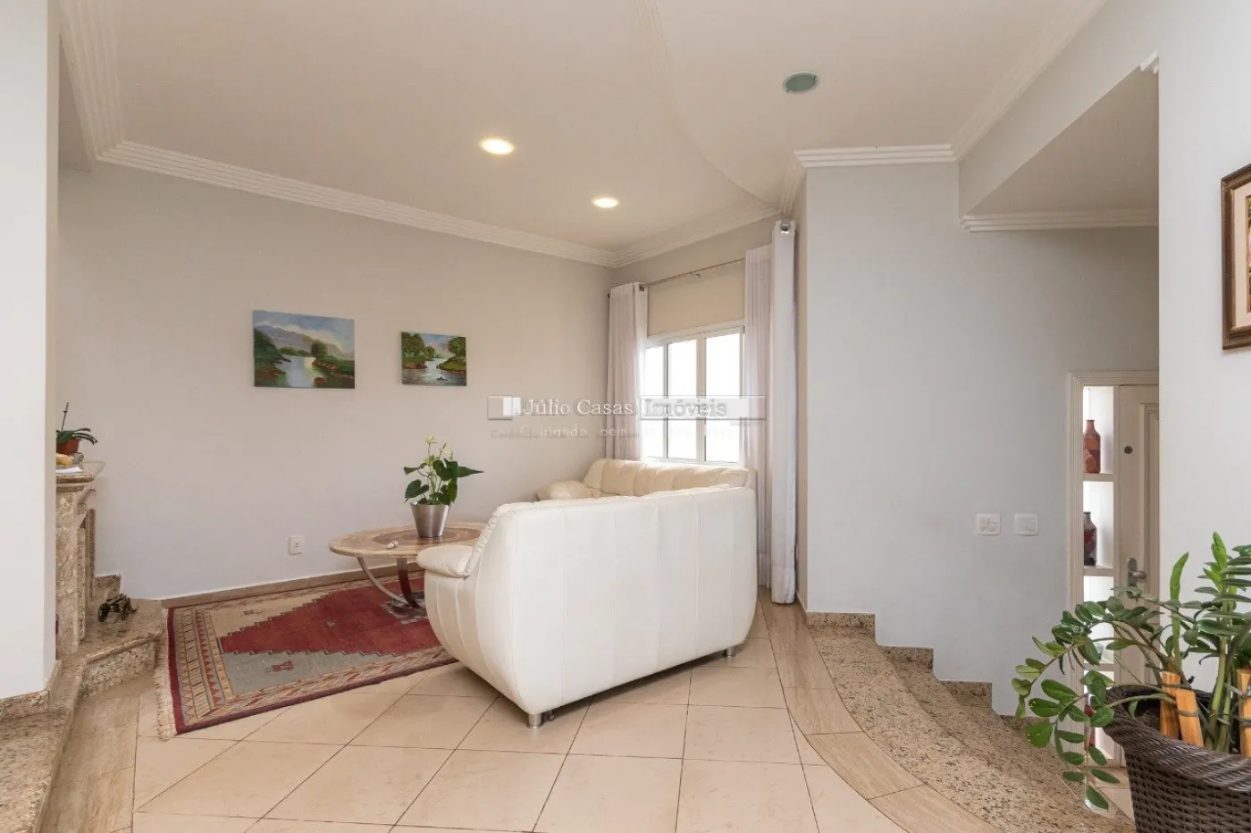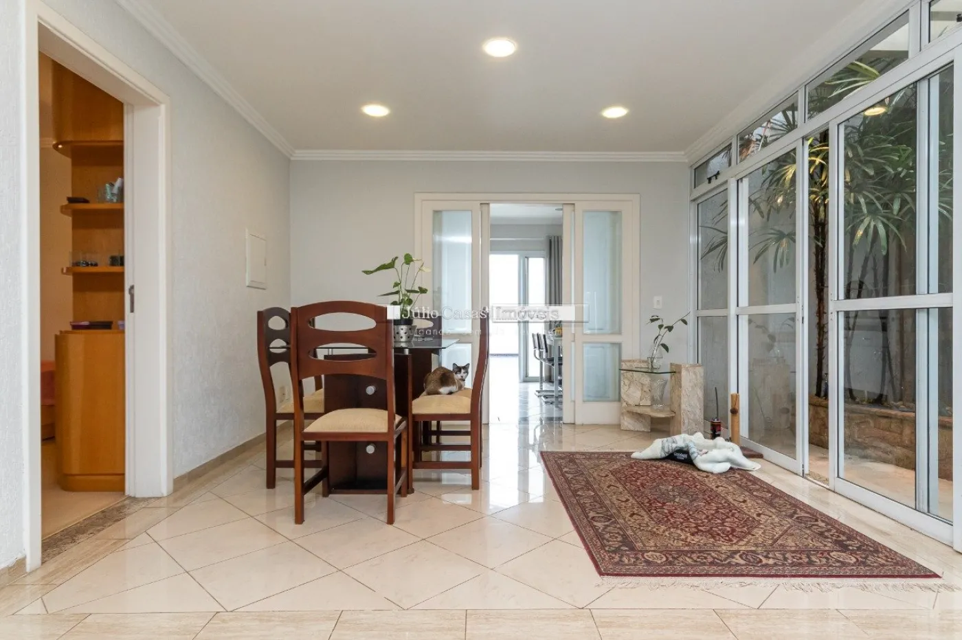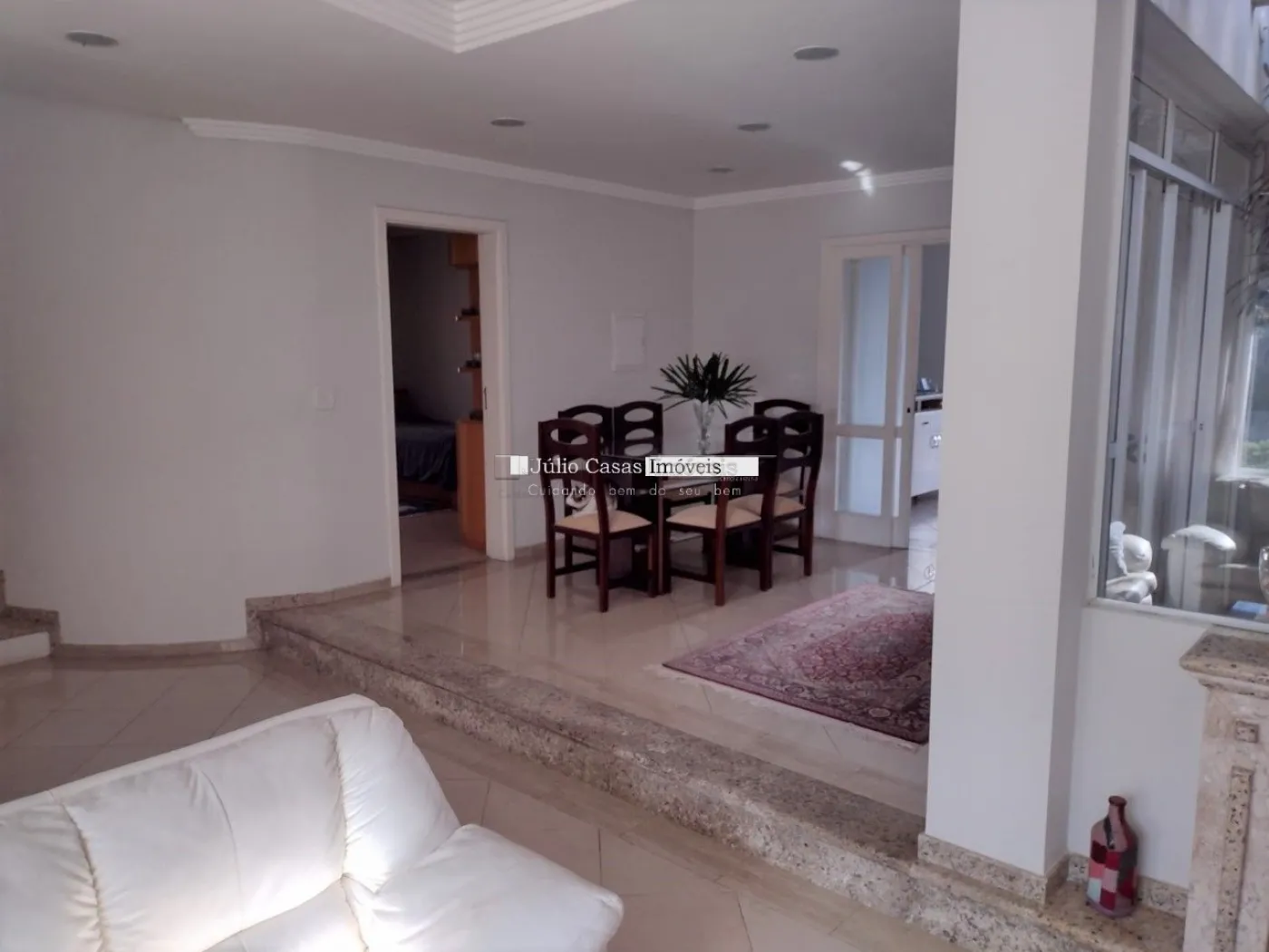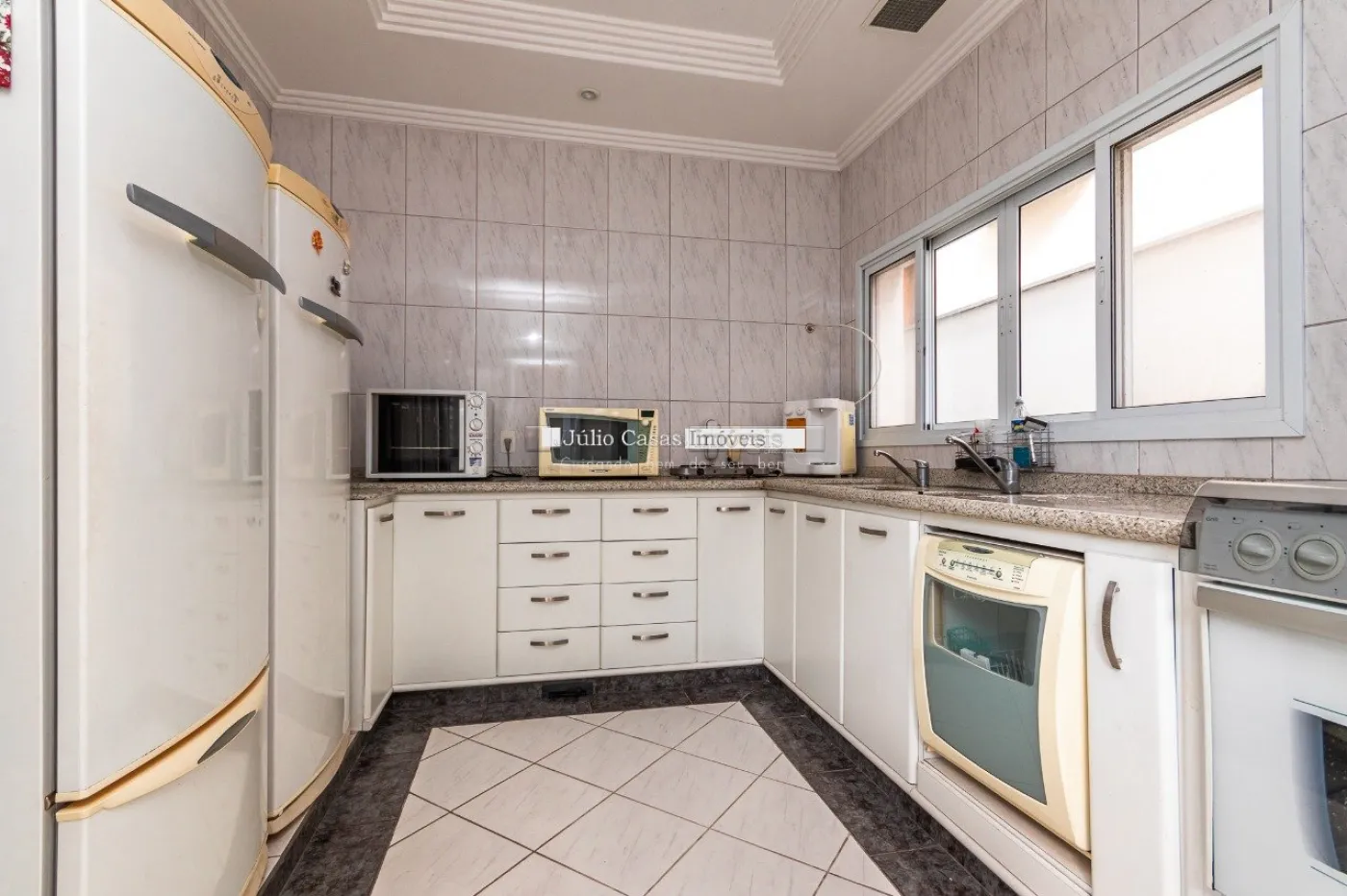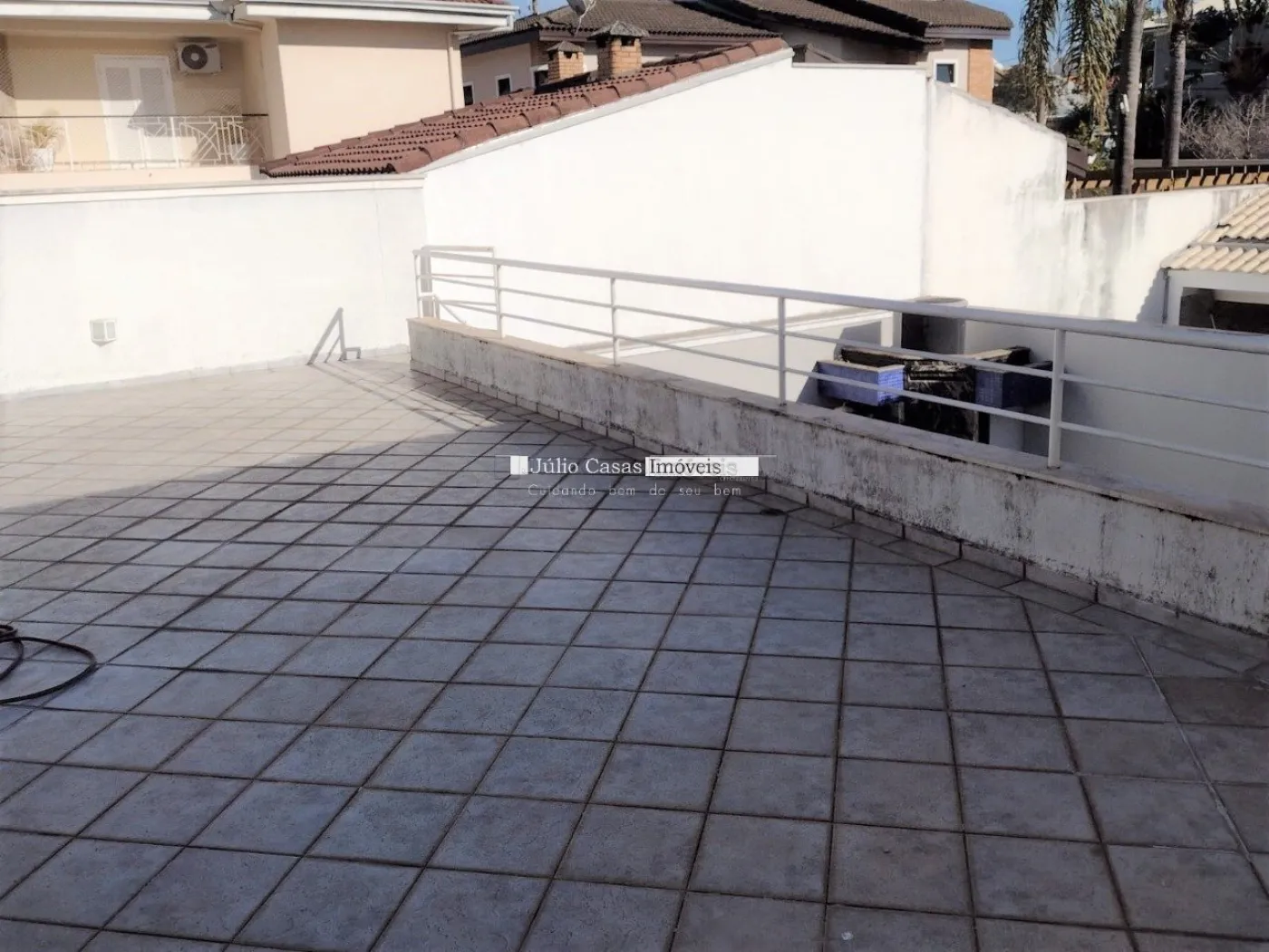Cozinha com armários planejados despensa e lavanderia. Ampla área gourmet com churrasqueira, forno para pizza, balcão de apoio em `U` em pedra são gabriel, integrado a área com piscina circundado por um exuberante jardim e sauna à vapor. Além de uma sala de repouso podendo ser utilizada como sala de ginástica. E dependência de empregada com banheiro independente. No andar superior são quatro dormitórios sendo três suítes com banheiras de hidro massagem, todos com armários modulados e em três deles com sacadas. A suíte master conta ainda com um magnífico closet em `L` e ar condicionado. A casa conta com sistema de aquecimento solar para a piscina.