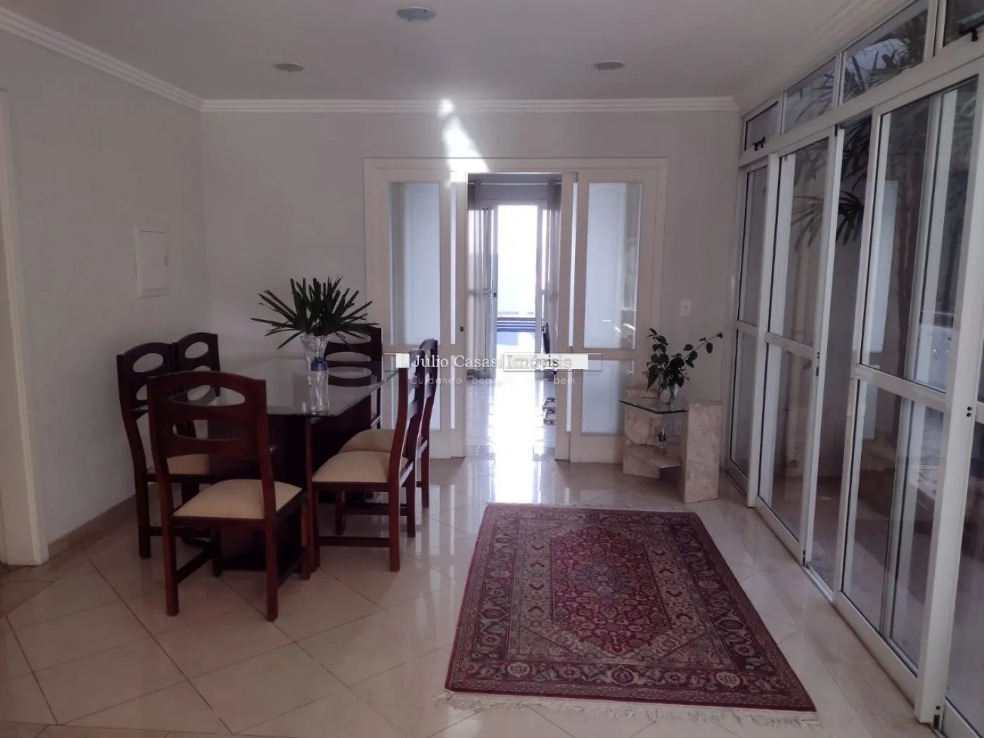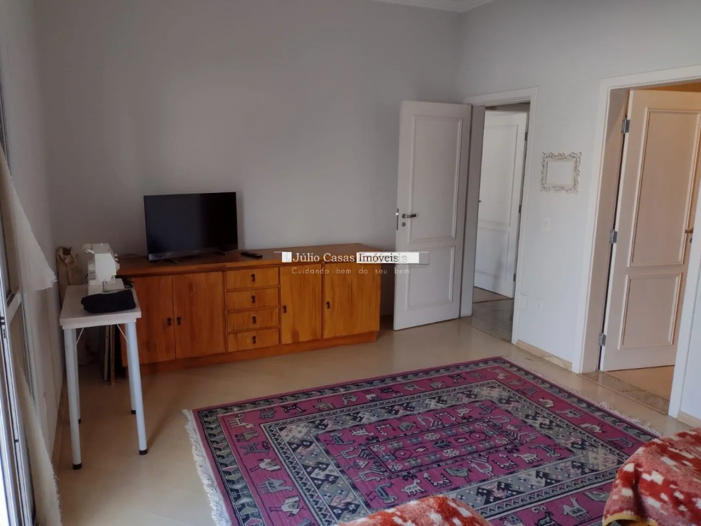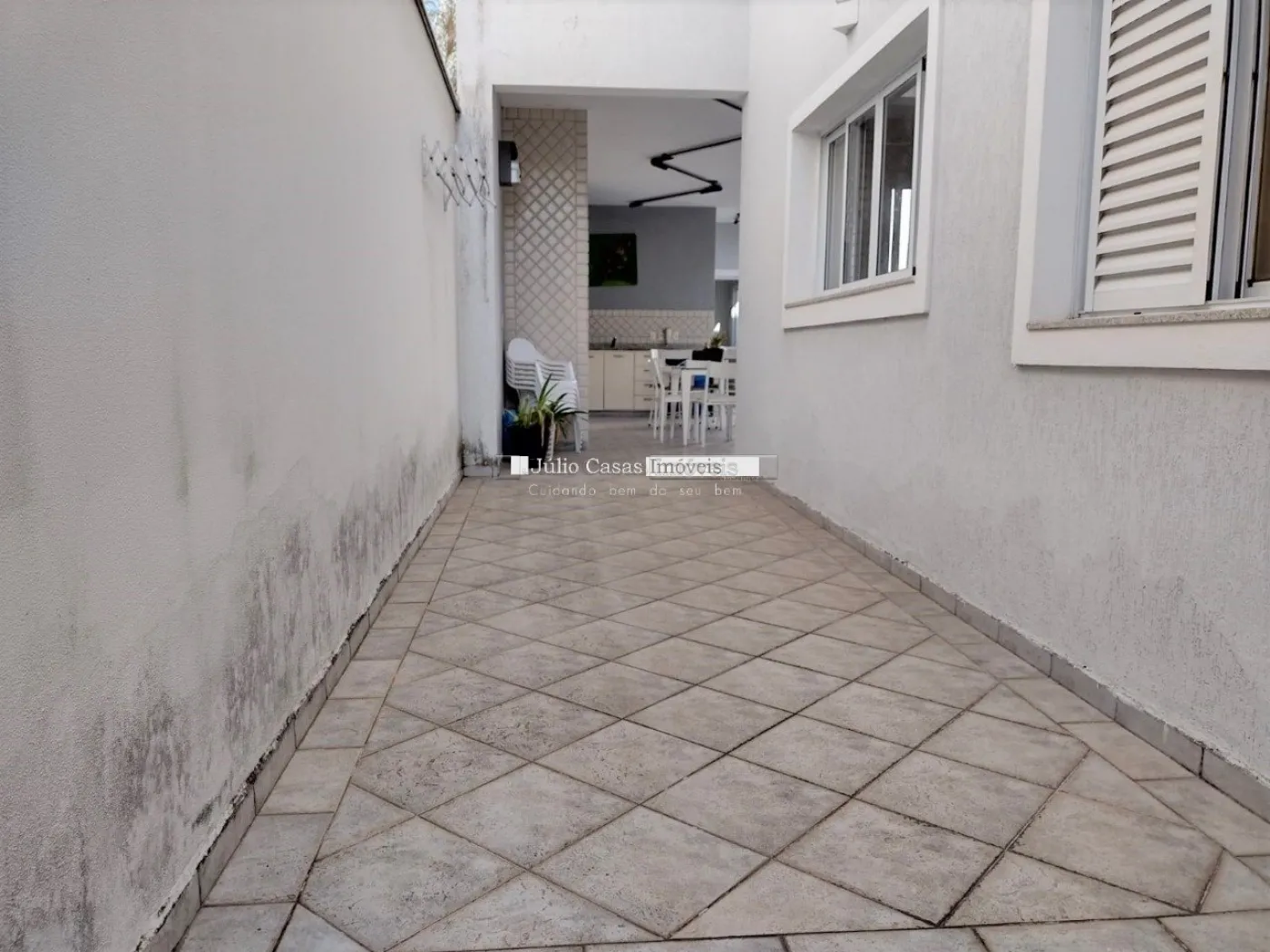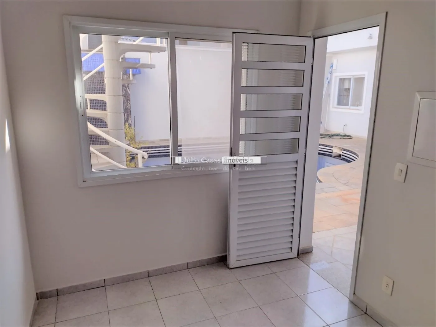 Cozinha com armários planejados despensa e lavanderia. Ampla área gourmet com churrasqueira, forno para pizza, balcão de apoio em `U` em pedra são gabriel, integrado a área com piscina circundado por um exuberante jardim e sauna à vapor. Além de uma sala de repouso podendo ser utilizada como sala de ginástica. E dependência de empregada com banheiro independente. No andar superior são quatro dormitórios sendo três suítes com banheiras de hidro massagem, todos com armários modulados e em três deles com sacadas. A suíte master conta ainda com um magnífico closet em `L` e ar condicionado. A casa conta com sistema de aquecimento solar para a piscina.