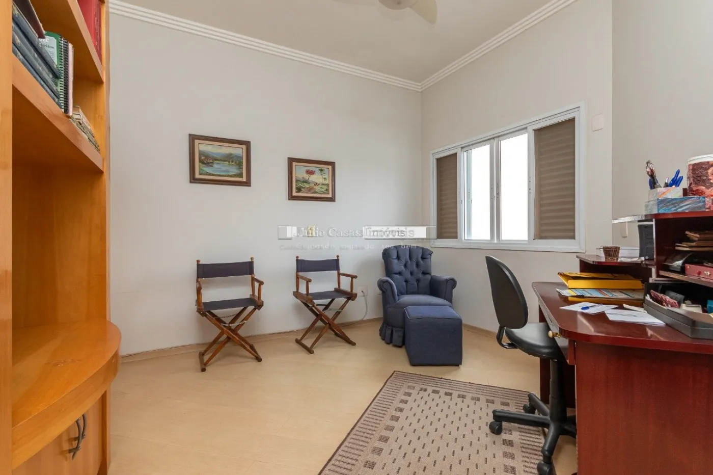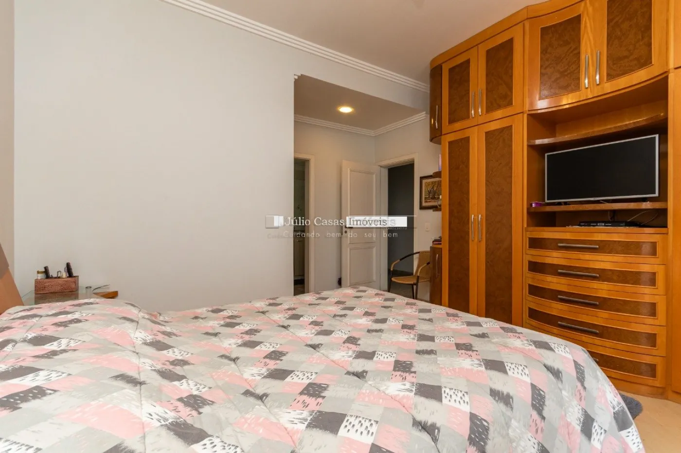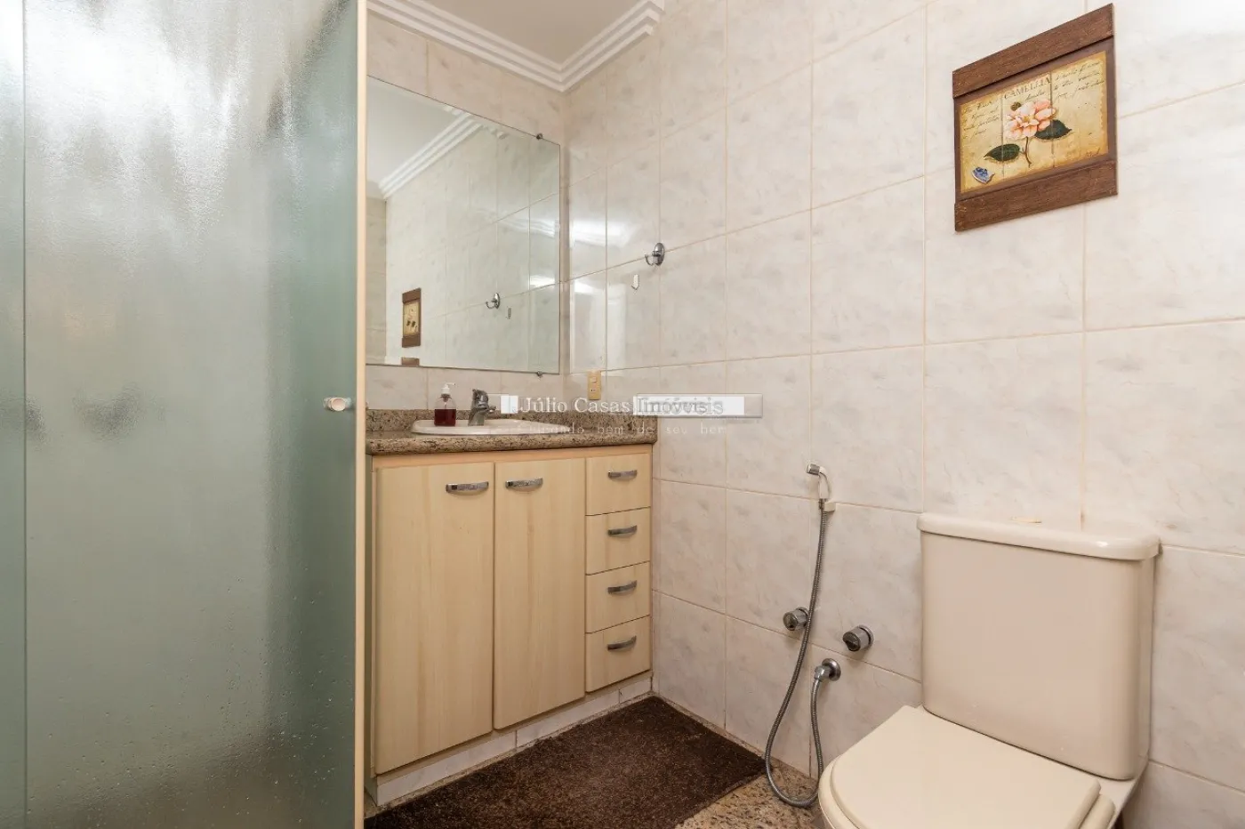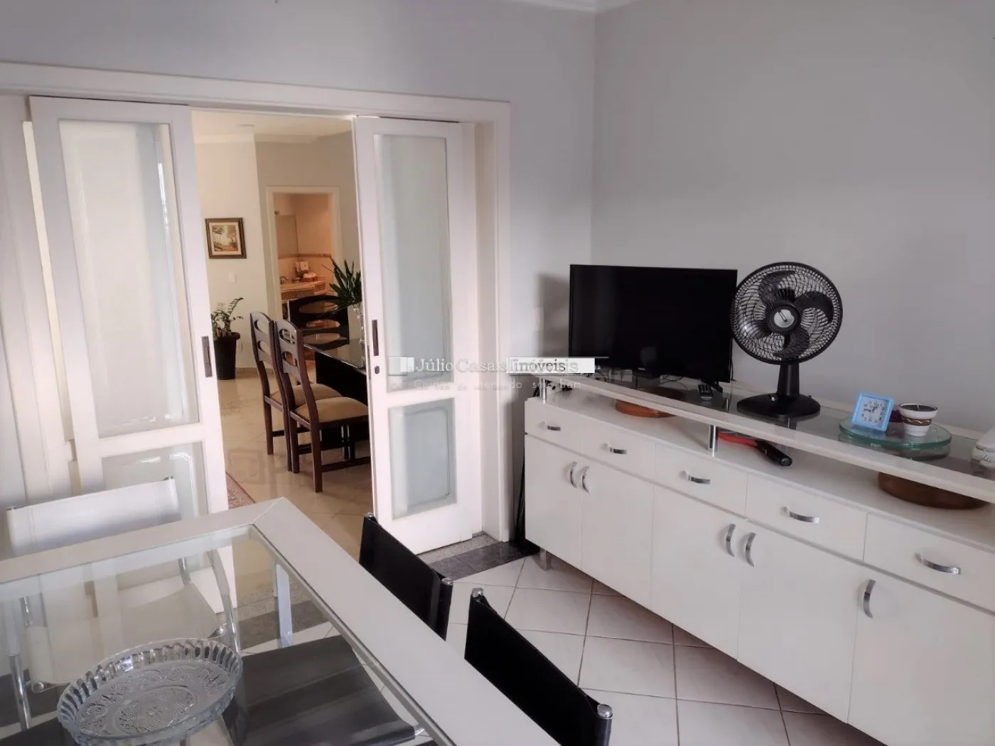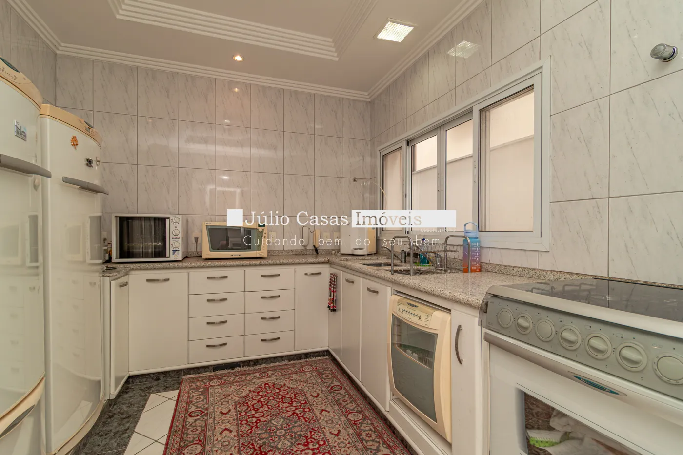 Cozinha com armários planejados despensa e lavanderia. Ampla área gourmet com churrasqueira, forno para pizza, balcão de apoio em `U` em pedra são gabriel, integrado a área com piscina circundado por um exuberante jardim e sauna à vapor. Além de uma sala de repouso podendo ser utilizada como sala de ginástica. E dependência de empregada com banheiro independente. No andar superior são quatro dormitórios sendo três suítes com banheiras de hidro massagem, todos com armários modulados e em três deles com sacadas. A suíte master conta ainda com um magnífico closet em `L` e ar condicionado. A casa conta com sistema de aquecimento solar para a piscina.