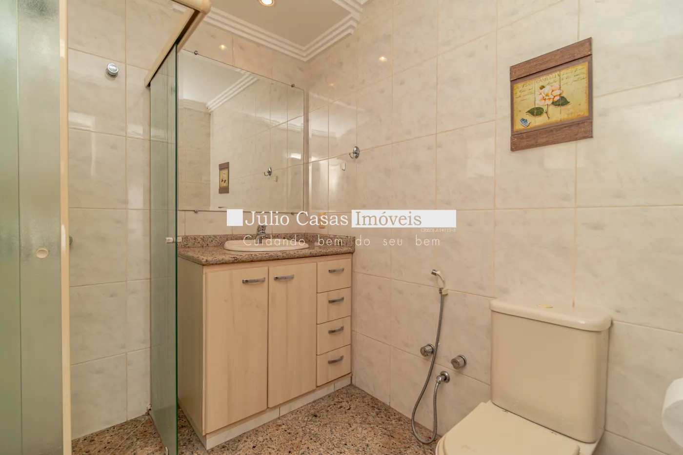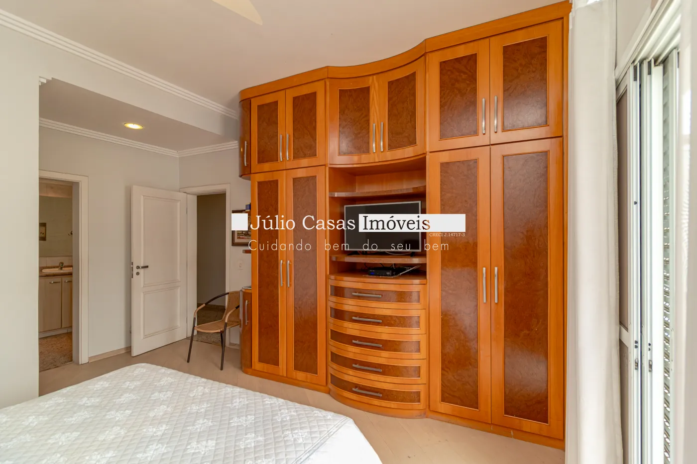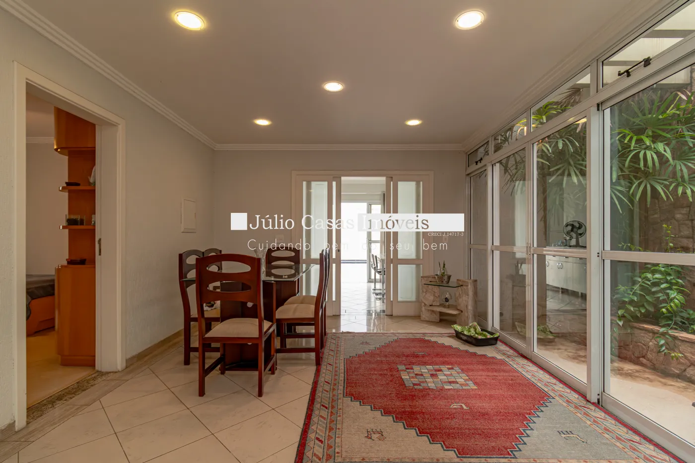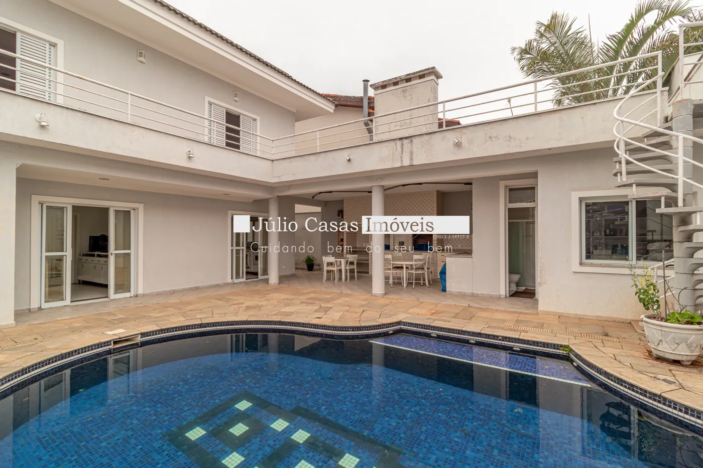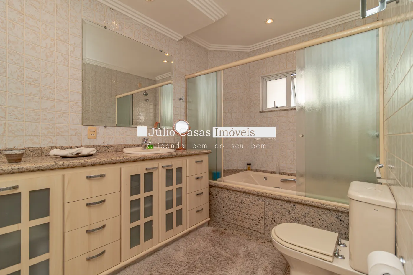 Cozinha com armários planejados despensa e lavanderia. Ampla área gourmet com churrasqueira, forno para pizza, balcão de apoio em `U` em pedra são gabriel, integrado a área com piscina circundado por um exuberante jardim e sauna à vapor. Além de uma sala de repouso podendo ser utilizada como sala de ginástica. E dependência de empregada com banheiro independente. No andar superior são quatro dormitórios sendo três suítes com banheiras de hidro massagem, todos com armários modulados e em três deles com sacadas. A suíte master conta ainda com um magnífico closet em `L` e ar condicionado. A casa conta com sistema de aquecimento solar para a piscina.