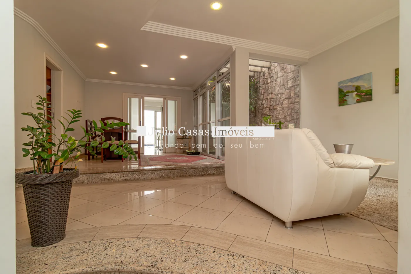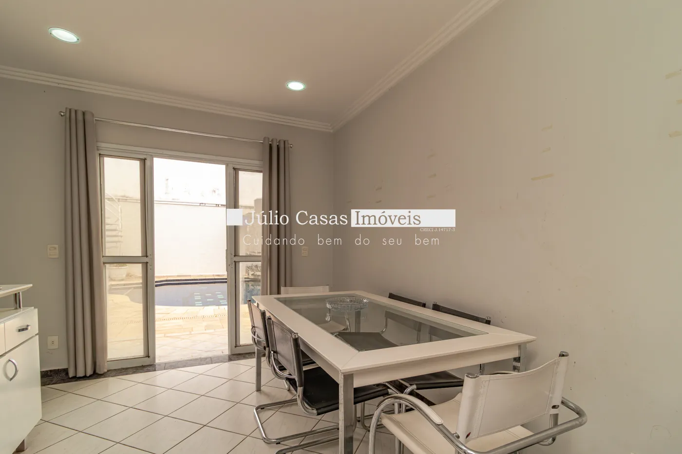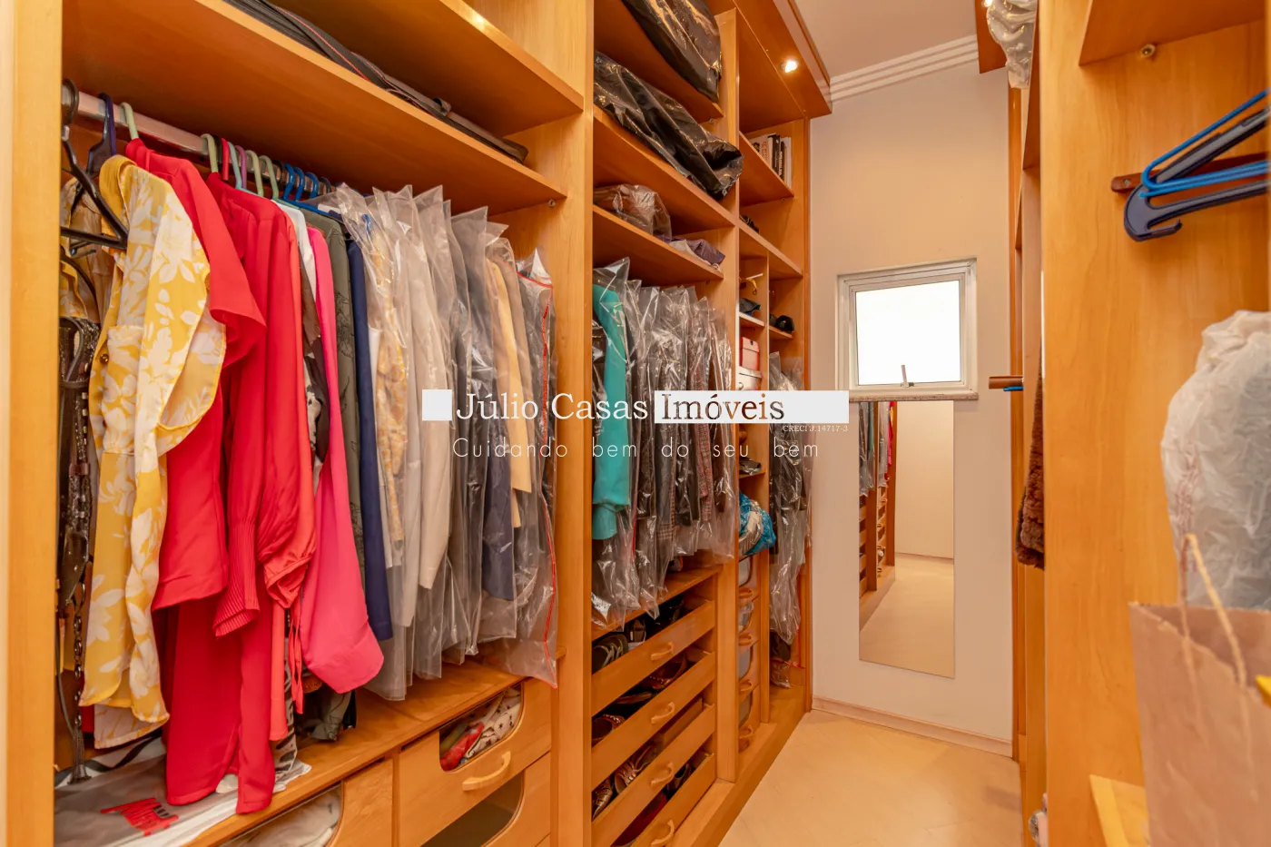 No primeiro pavimento, sala de estar com piso de madeira, parede revestida em papel de parede, teto em gesso e luminárias em LED embutidas, janelas em vidro temperado, porta de entrada em madeira com vidros jateados e um prático lavabo. Sala de TV com piso em porcelanato retificado e janelas em vidro temperado, ar condicionado e um banheiro, sala de jantar com piso em madeira e porta balcão com acesso ao quintal.