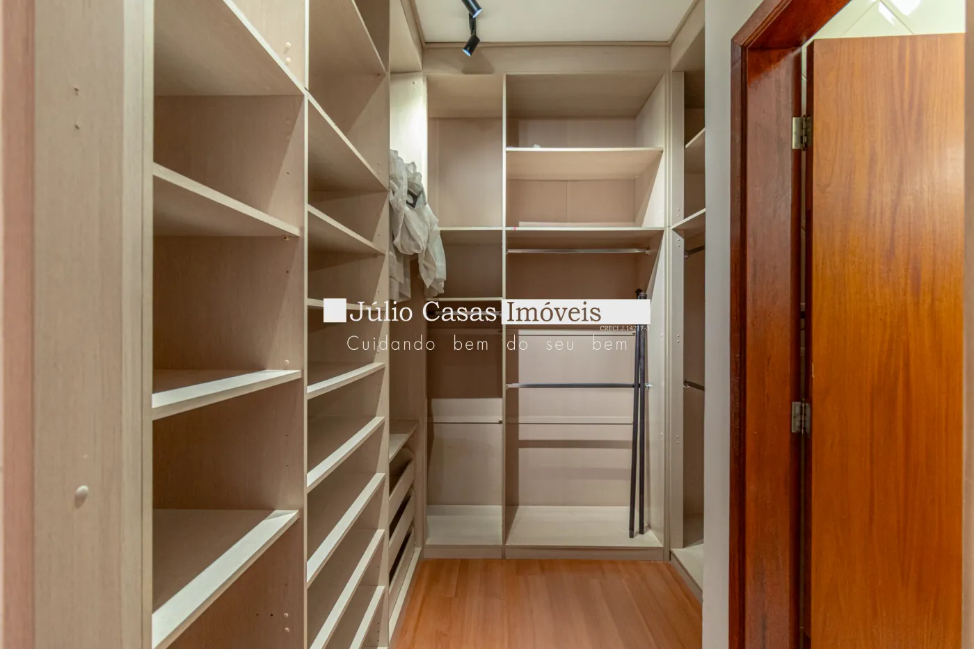 No andar superior, quatro dormitórios todos com suíte, uma com closet e sacada, todos com armários modulados e piso de madeira.