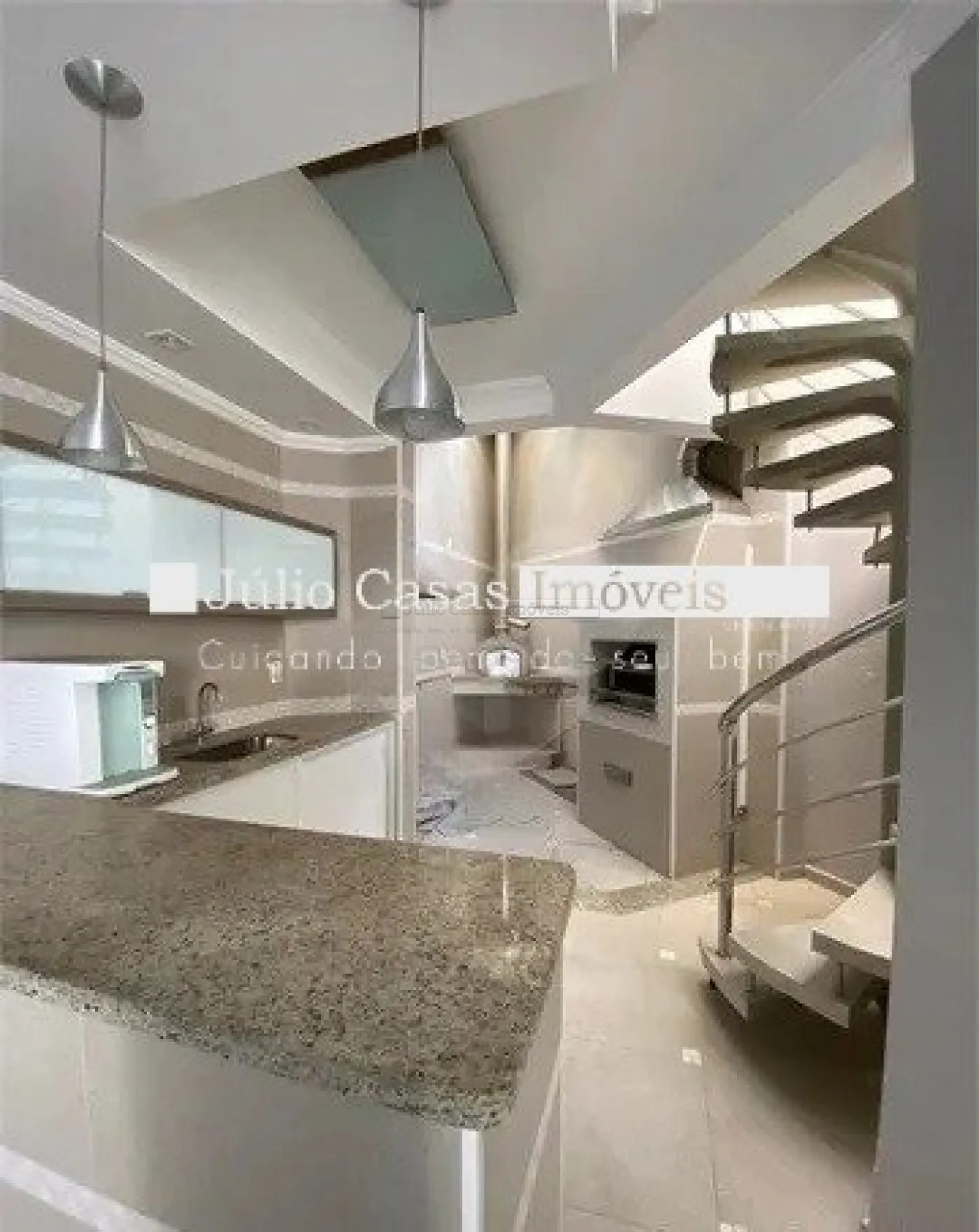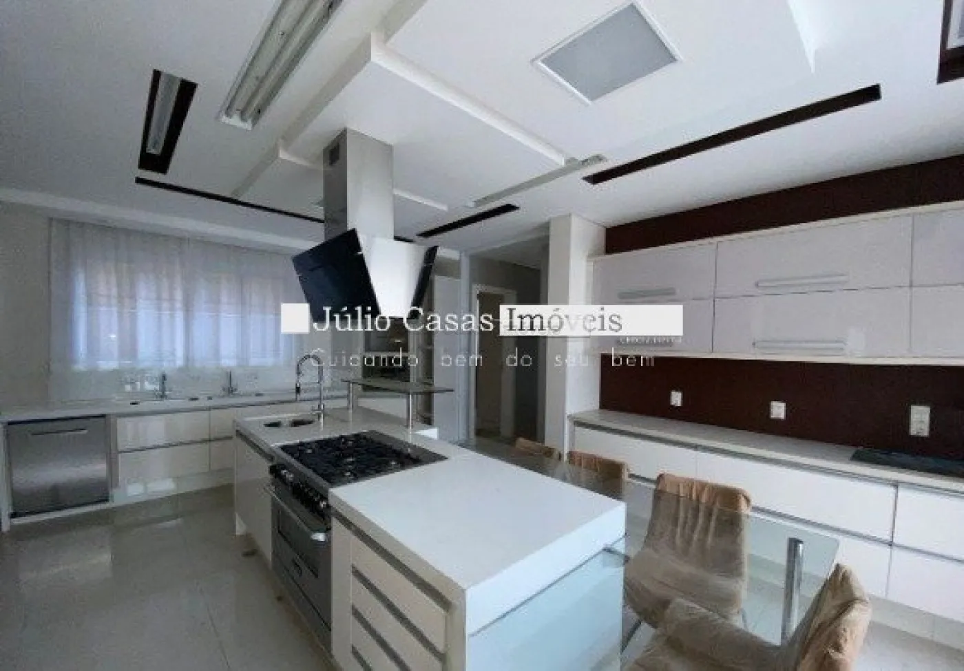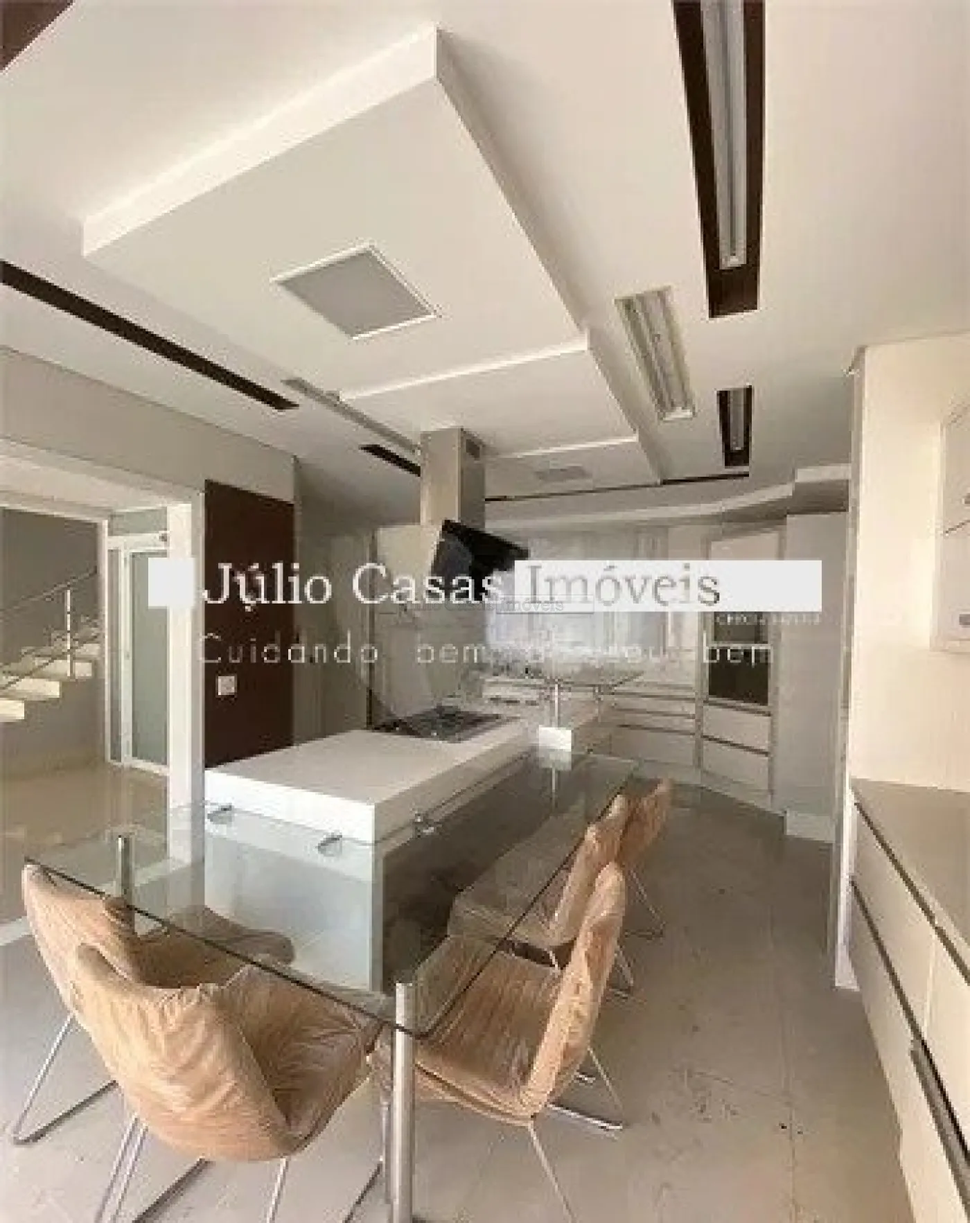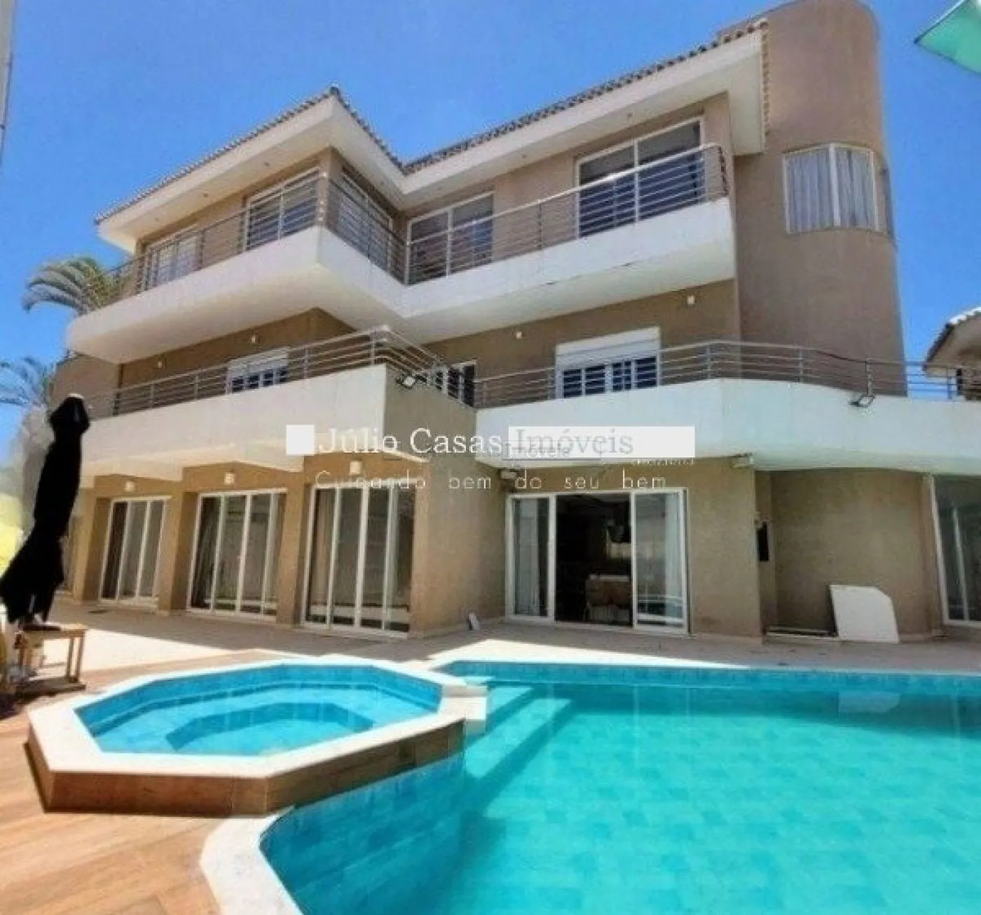 Lavabo, sala de cinema, sala de jantar, cozinha completa com modulado, ilha central com fogão embutido, coifa, despensa, área gourmet completa com churrasqueira e forno à lenha, piscina com hidromassagem, sauna, área de serviço e dependências para funcionários.