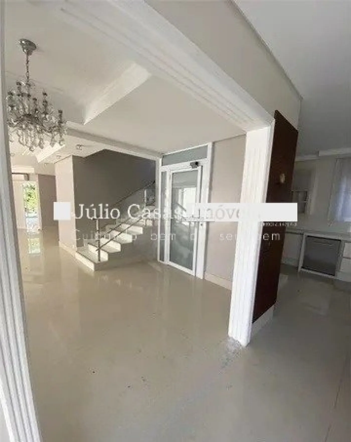 Piso térreo: sala em dois ambientes, sala de TV, com piso todo revestido em porcelanato, detalhes em gesso no teto, luminárias de LED e ar condicionado tipo K7 nos três pisos que tem confortável acesso por elevador.