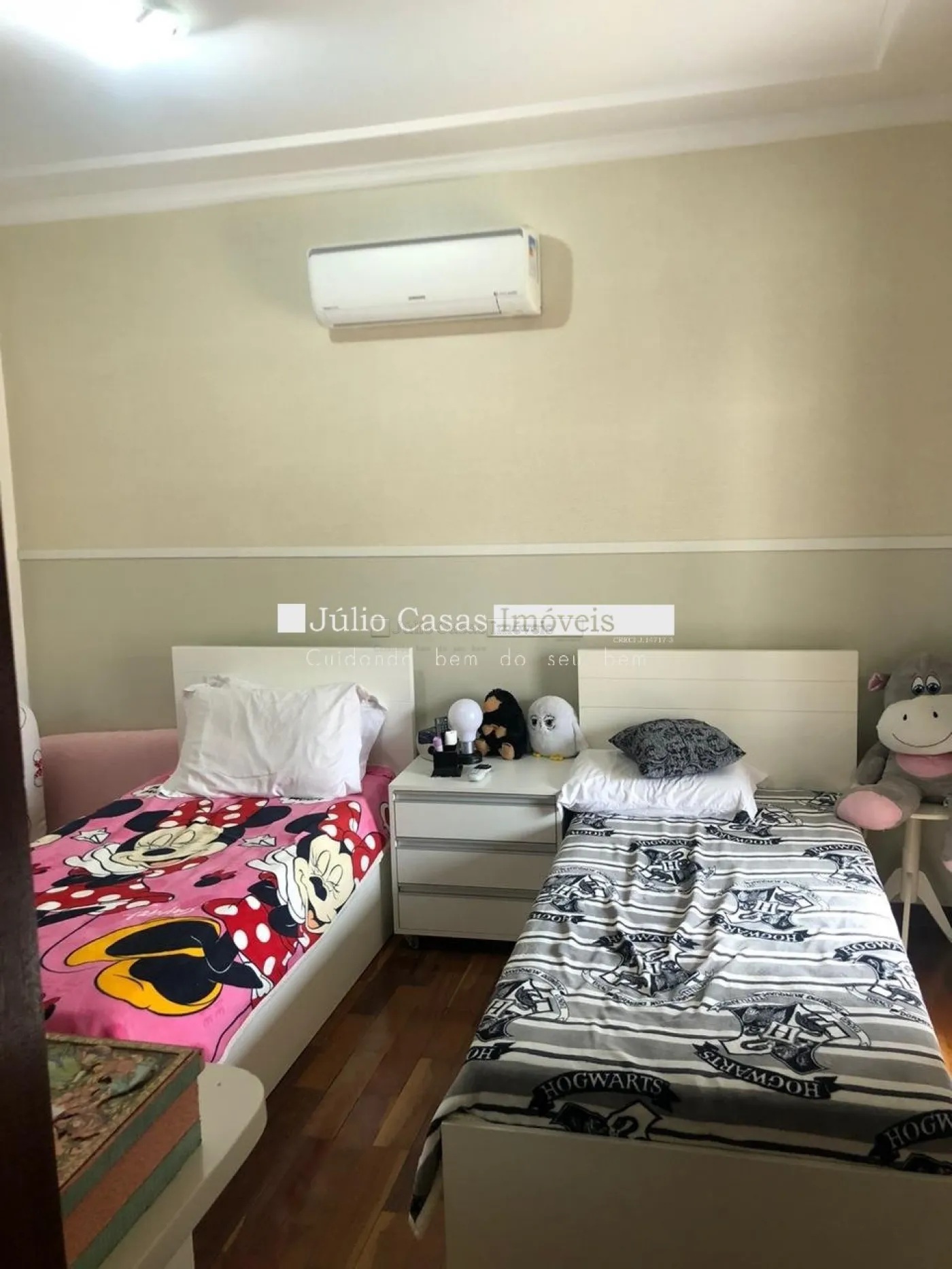 Casa à venda, 5 quartos com 3 suítes no Condomínio Granja Olga, Sorocaba SP Casa construída em dois lotes, em dois pavimentos localizada no Granja Olga. No primeiro pavimento, sala de estar com piso de madeira, parede revestida em papel de parede, teto em gesso e luminárias em LED embutidas, janelas em vidro temperado, porta de entrada em madeira com vidros jateados e um prático lavabo. Sala de TV com piso em porcelanato retificado e janelas em vidro temperado, ar condicionado e um banheiro, sala de jantar com piso em madeira e porta balcão com acesso ao quintal. Cozinha com armários planejados despensa e lavanderia. Ampla área gourmet com churrasqueira, forno para pizza, balcão de apoio em `U` em pedra são gabriel, integrado a área com piscina circundado por um exuberante jardim e sauna à vapor. Além de uma sala de repouso podendo ser utilizada como sala de ginástica. E dependência de empregada com banheiro independente. No andar superior são quatro dormitórios sendo três suítes com banheiras de hidro massagem, todos com armários modulados e em três deles com sacadas. A suíte master conta ainda com um magnífico closet em `L` e ar condicionado. A casa conta com sistema de aquecimento solar para a piscina. Em ótima localização, com fácil acesso à rodovia Raposo Tavares e Castelo Branco, e proximidade com os mais variados tipos de comércio como supermercados, padarias, farmácias e hortifrutis em geral. Estamos à disposição para te atender. Gostaria de saber mais informações ou agendar uma visita?