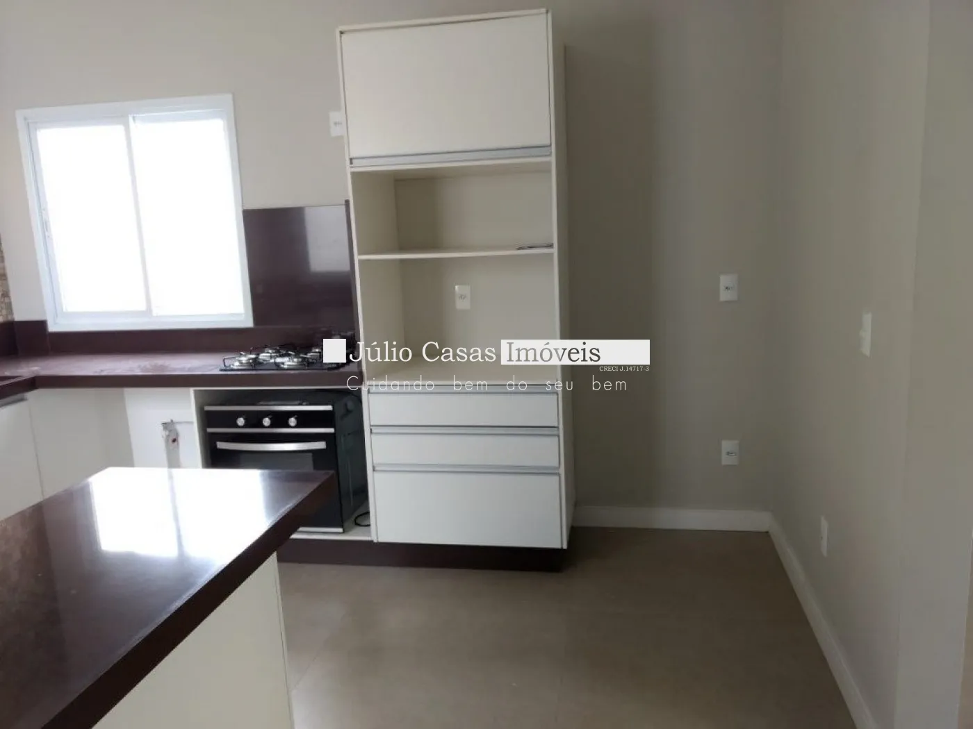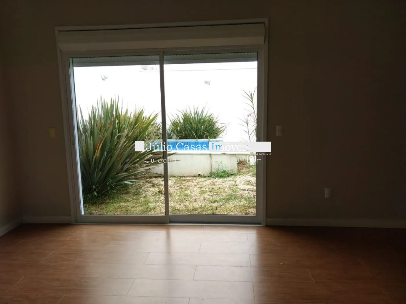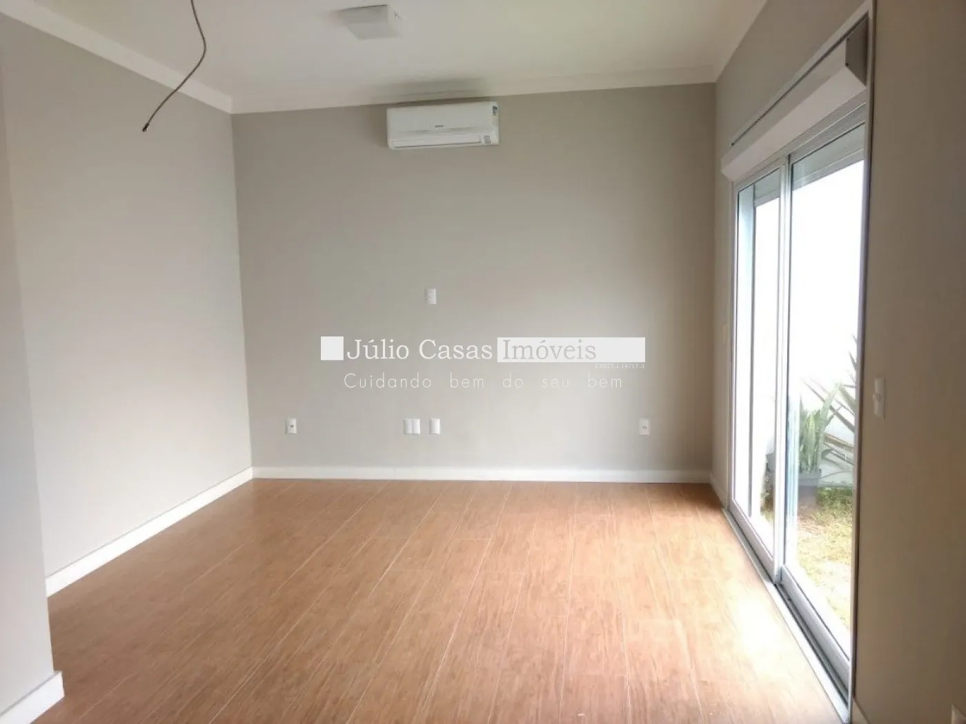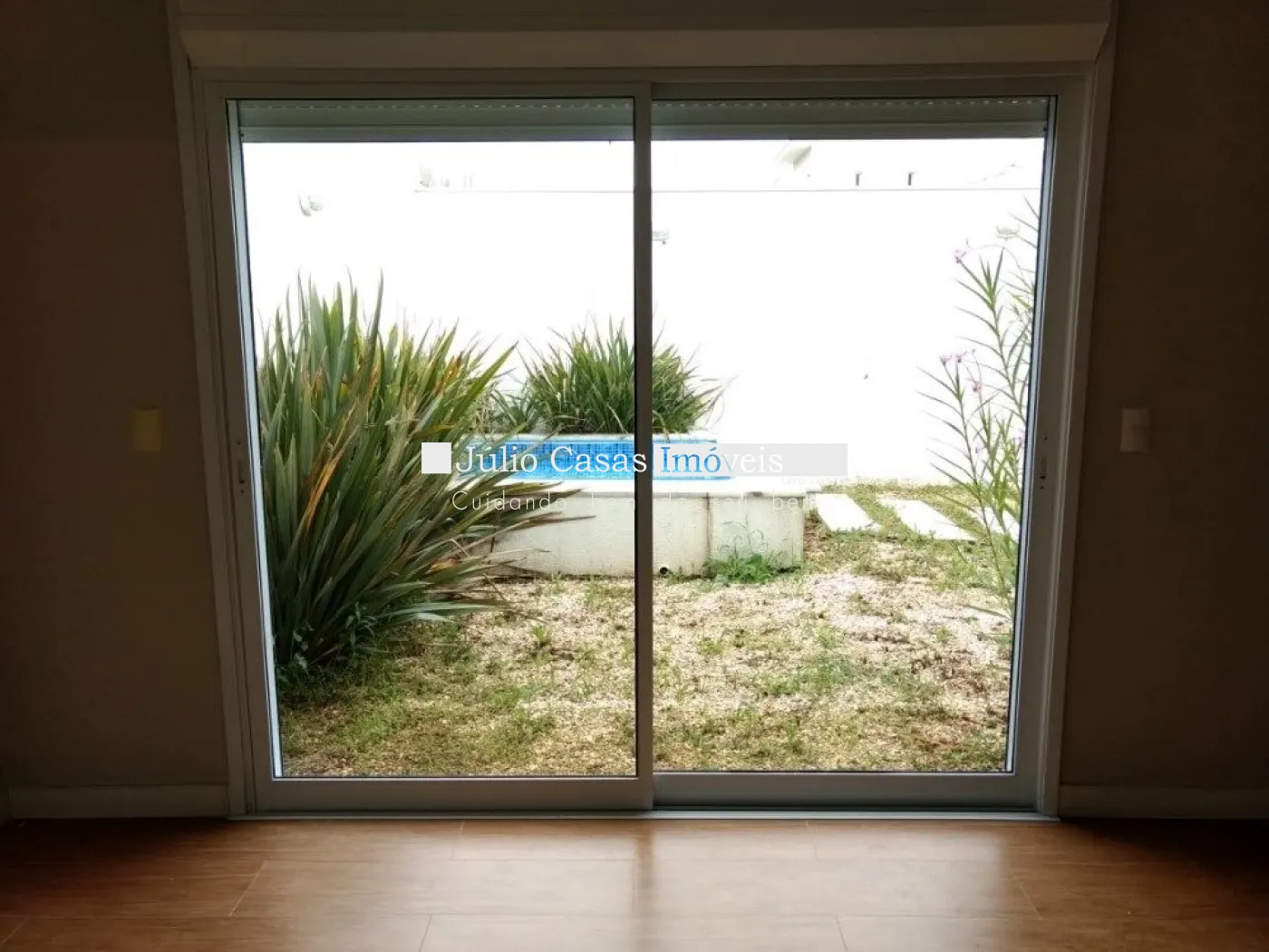 Casa térrea com três suítes, todas com ar condicionado, uma com armário e outra com closet , banheiro com pia e chuveiro duplos, sala ampla com jardim de inverno, cozinha modulada com balcão em granito e dupla pia, cooktop, despensa, área de serviço com armários, área secagem, espaço gourmet fechado com armários, mesa e painel, banheiro com gabinete, espelho , box e chuveiro, piscina, quintal e quatro vagas. Acabamento de primeira qualidade