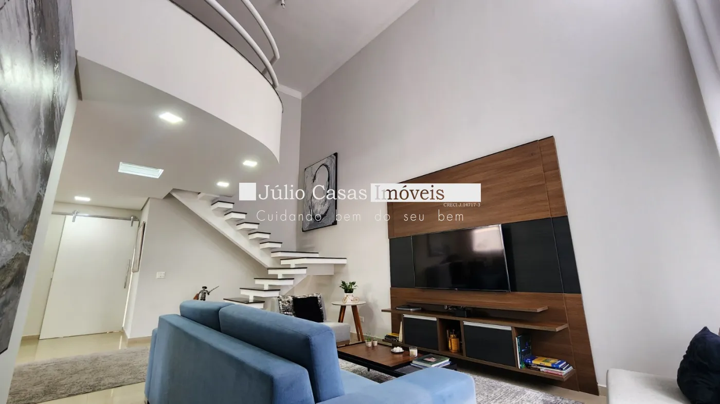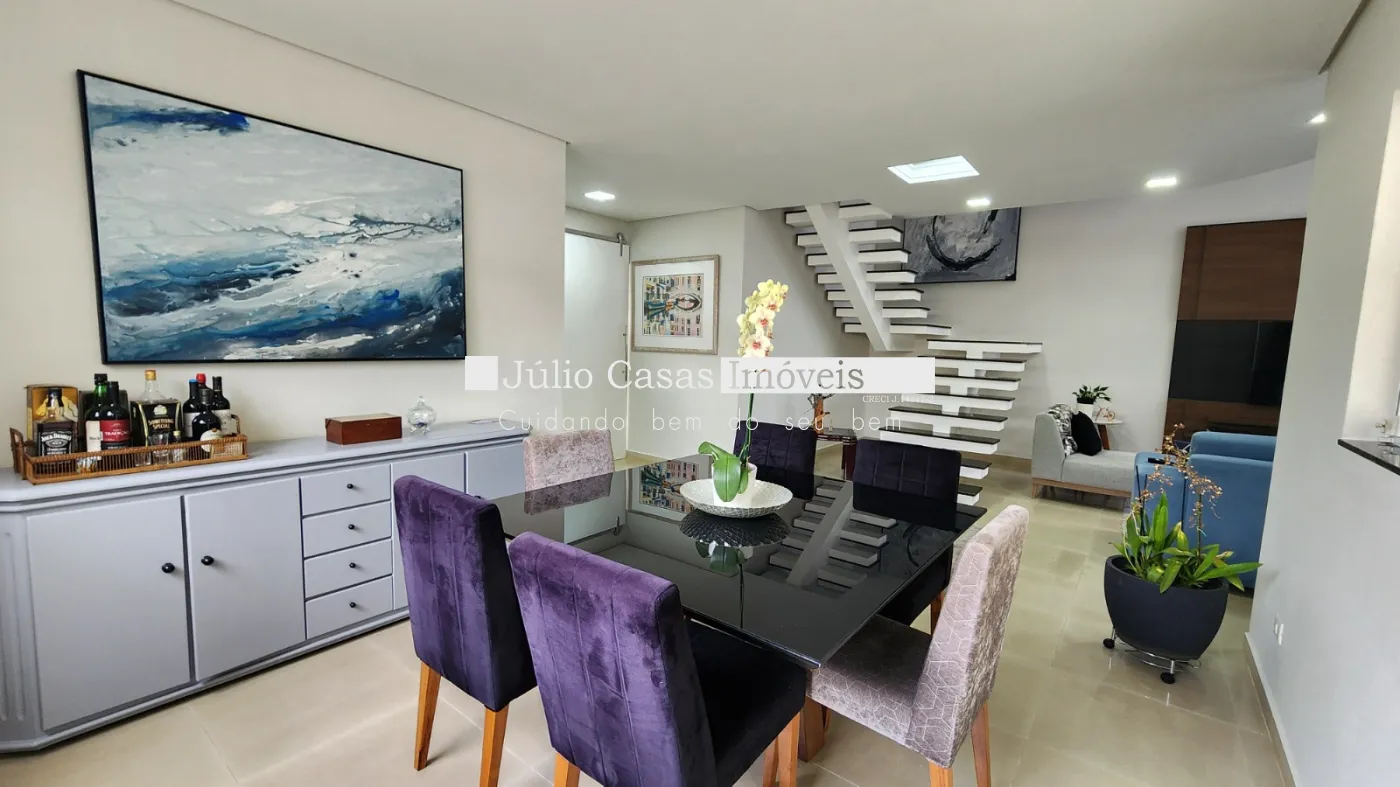 - Ampla sala de estar integrada à sala de jantar, com pé-direito duplo e iluminação natural abundante
