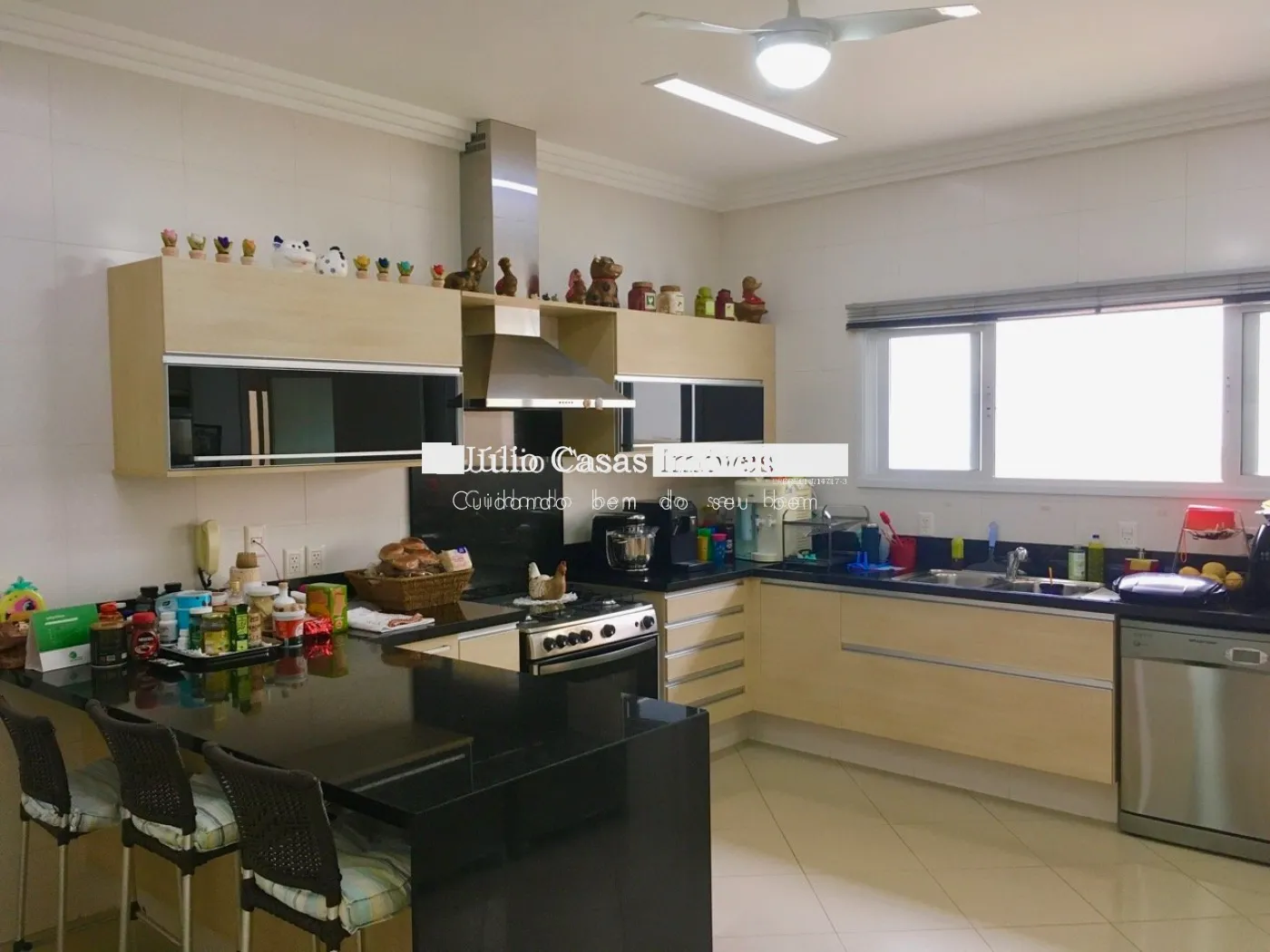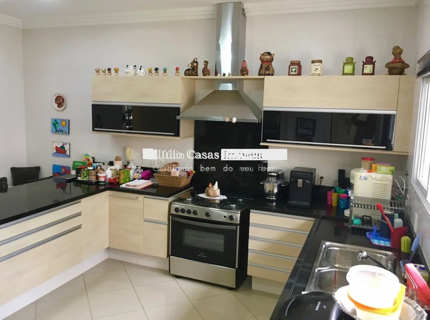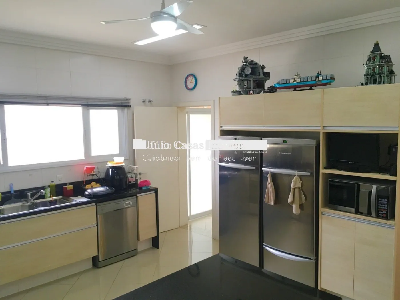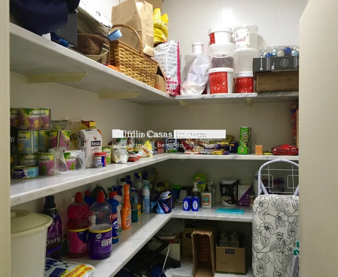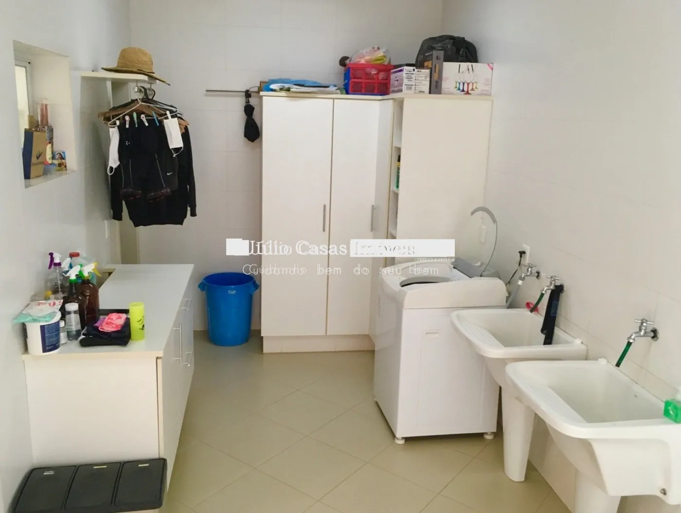 Cozinha com mesa bancada, despensa, área de serviço com quarto e banheiro.