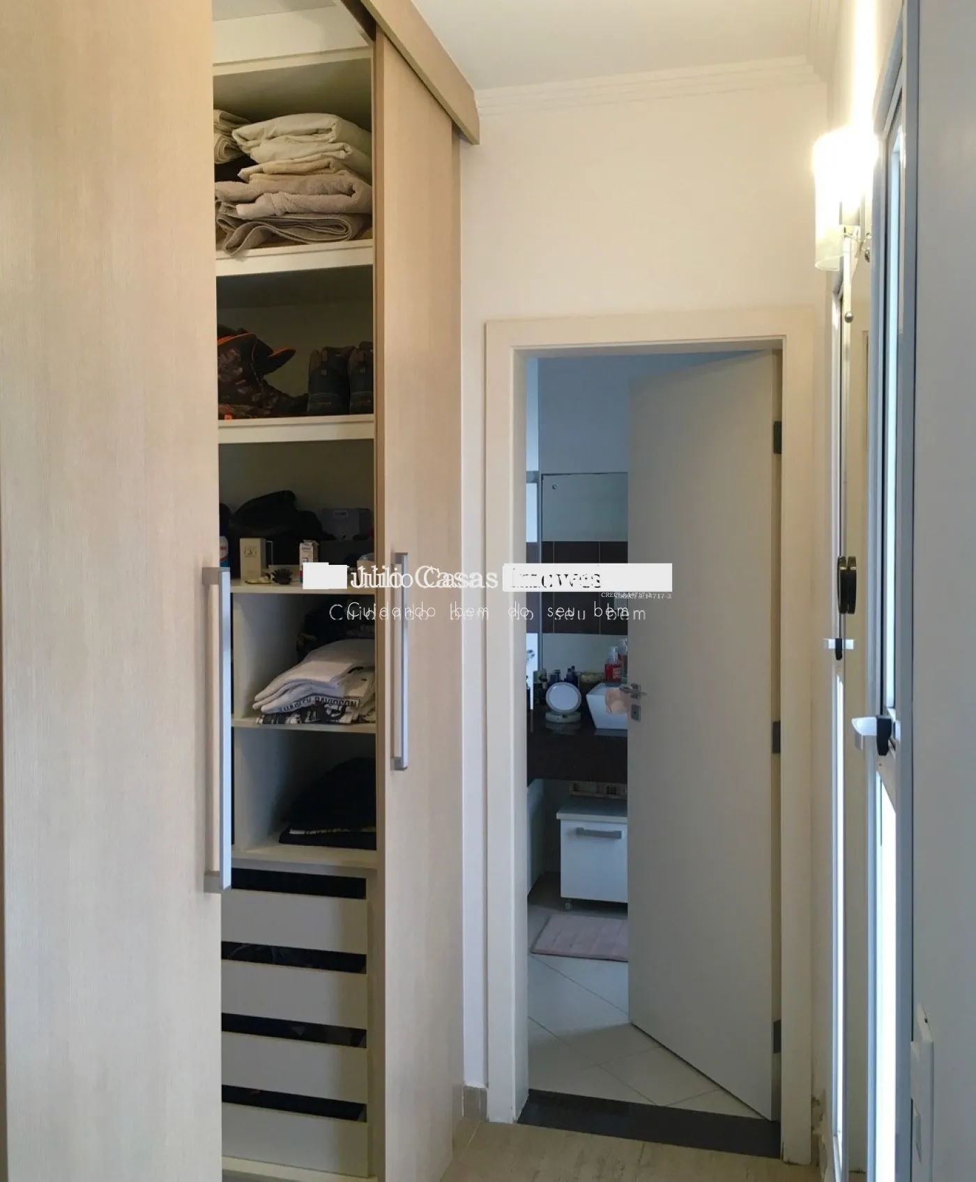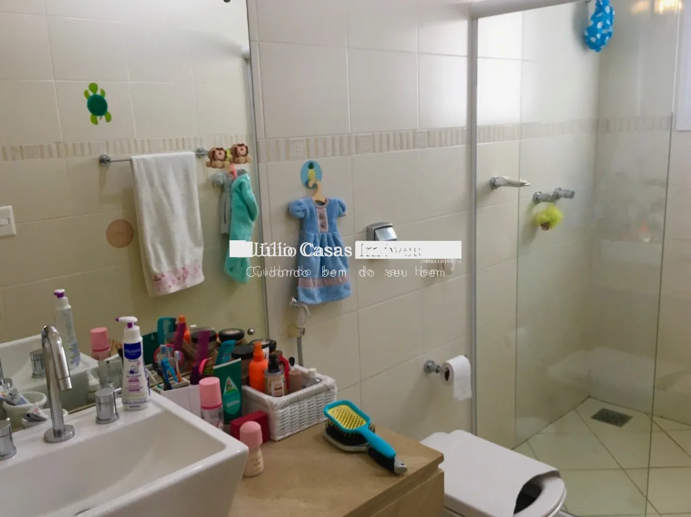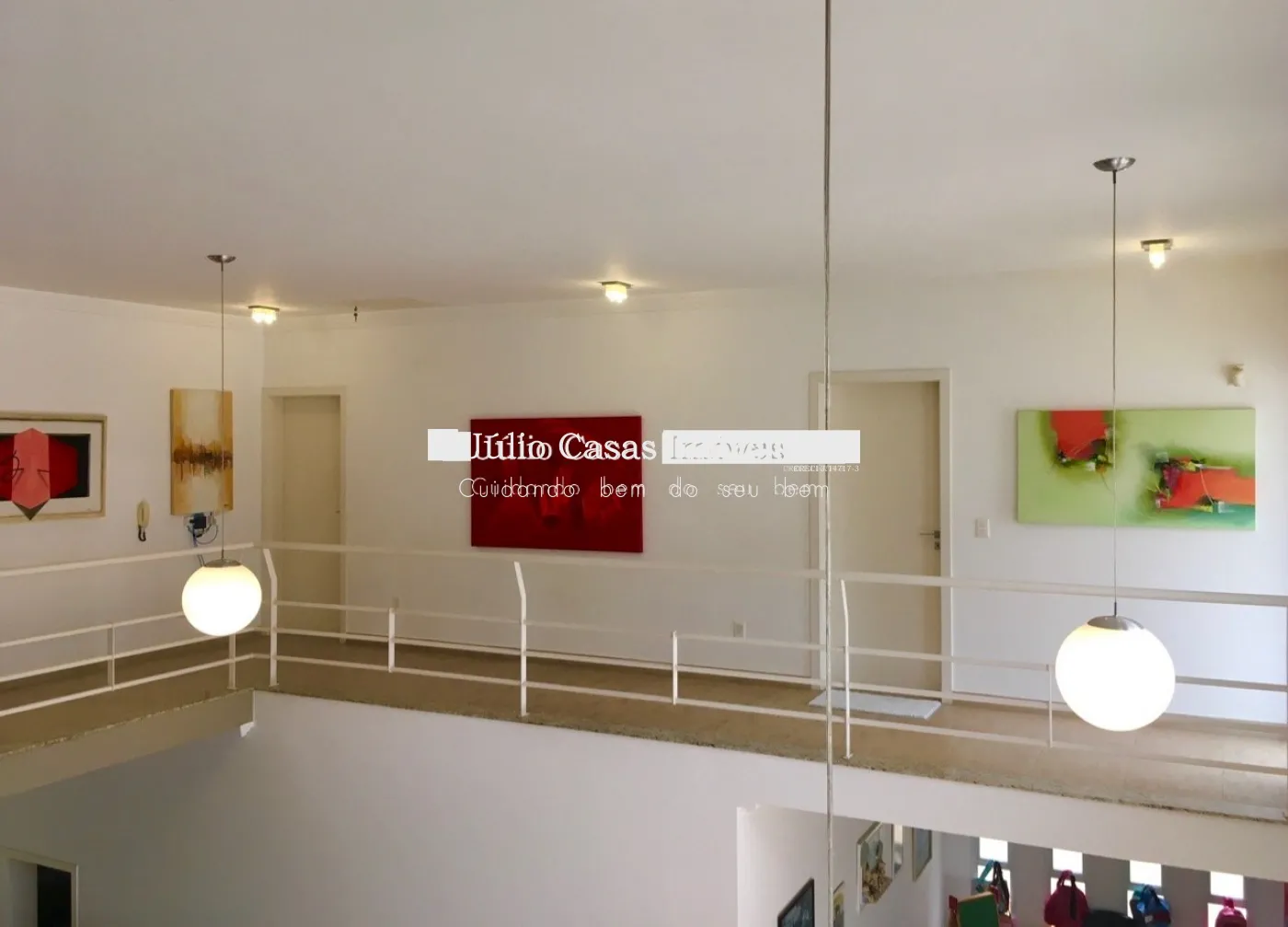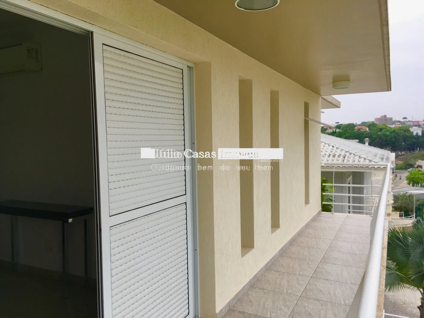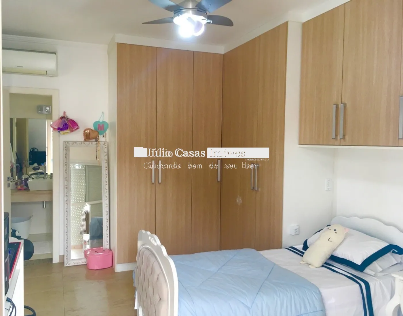 Piso superior com três suítes, todas com ar condicionado e duas delas com varanda. Suíte master com closet e hidromassagem.
