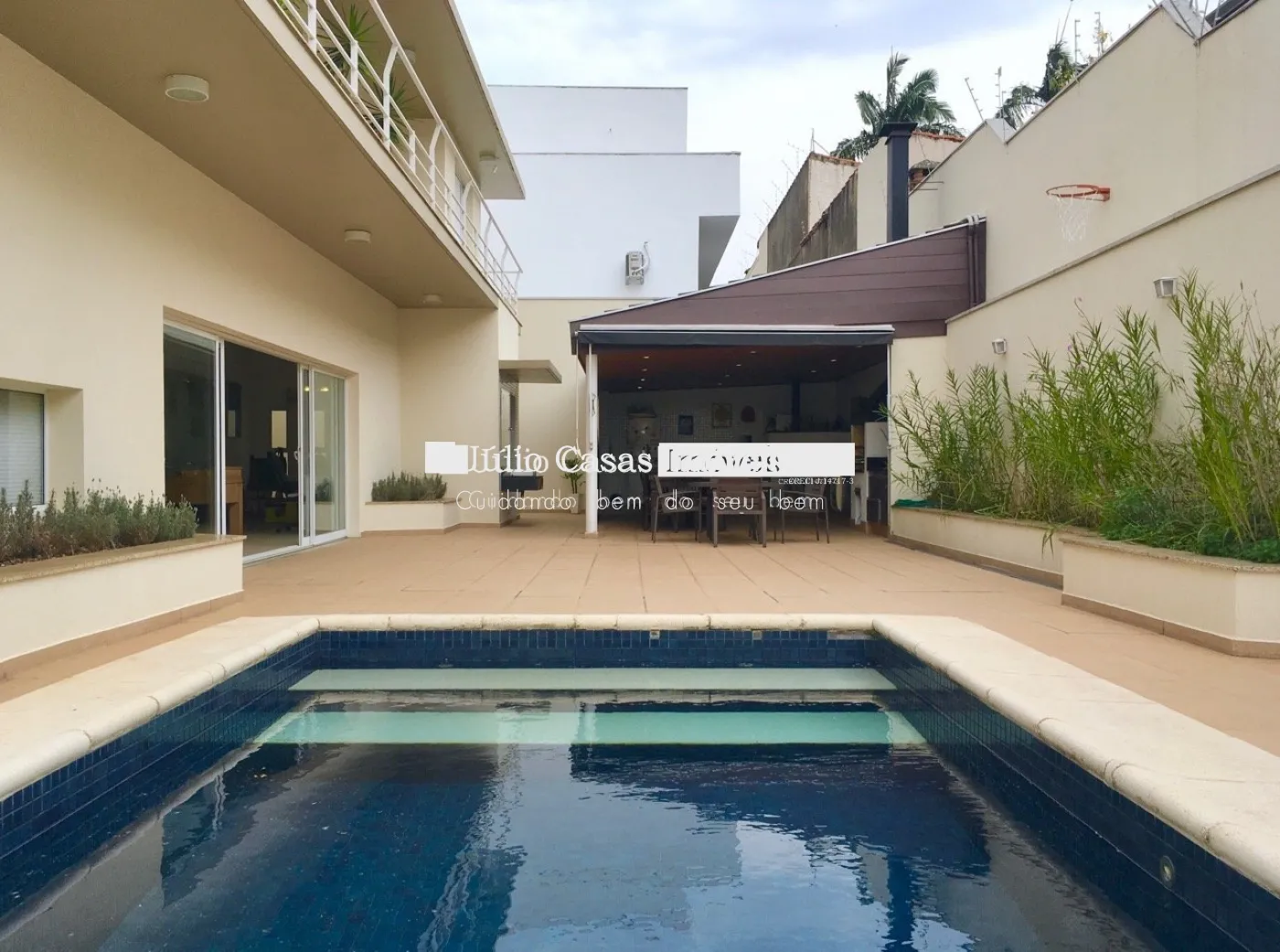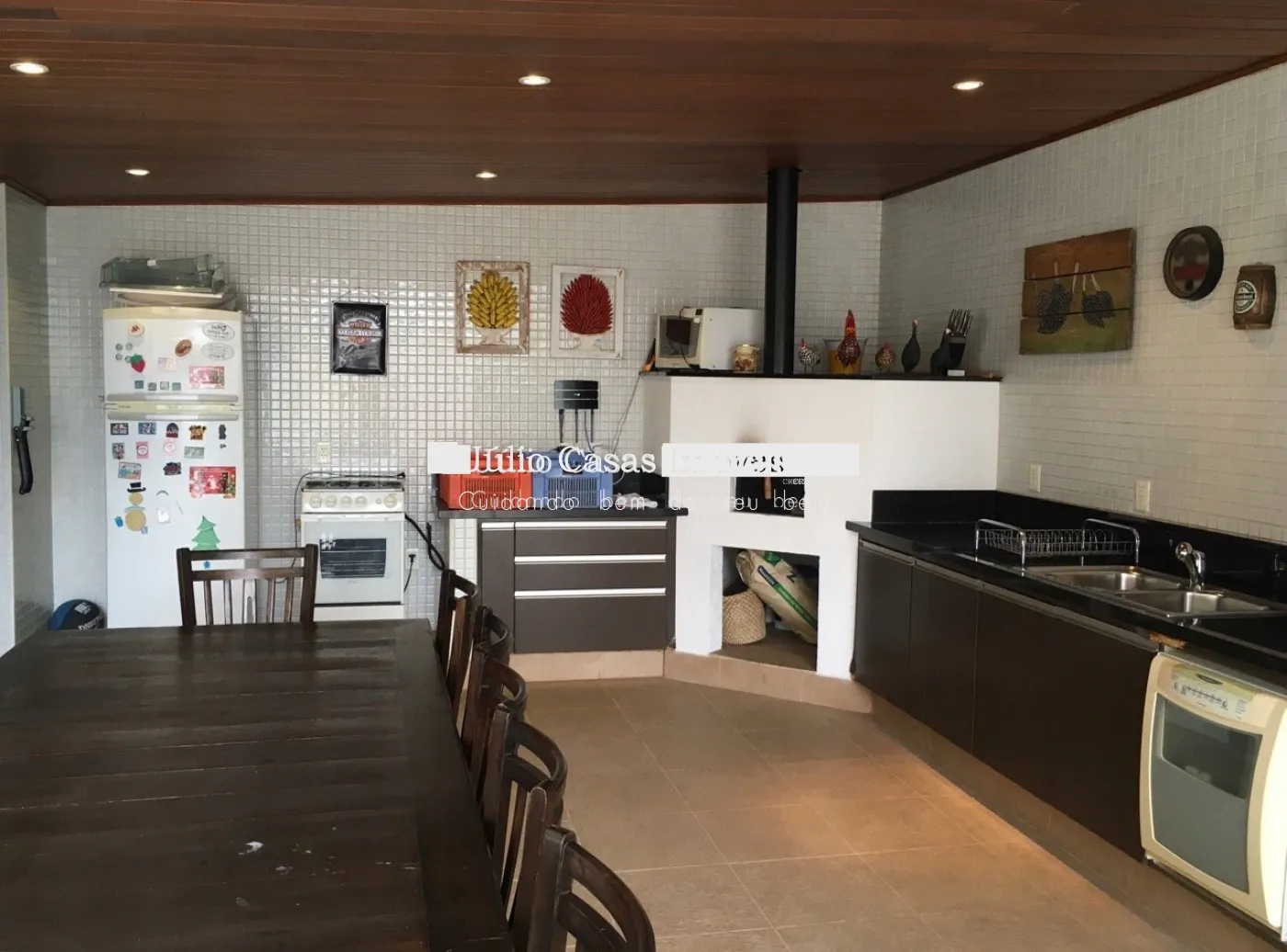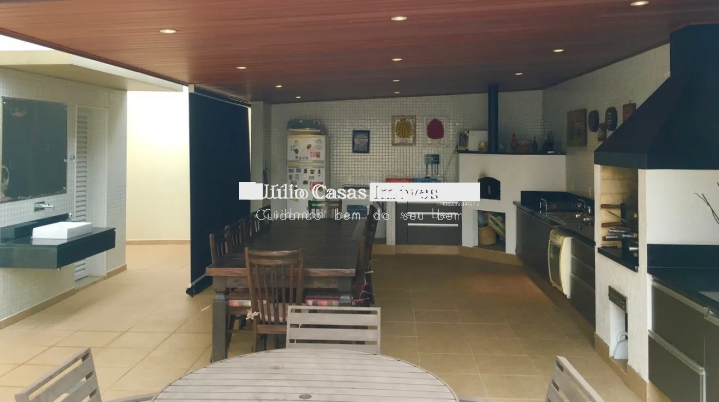 Na área externa, amplo espaço gourmet com churrasqueira e forno de pizza. Piscina e banheiro de apoio com chuveiro.