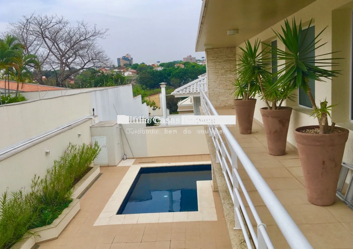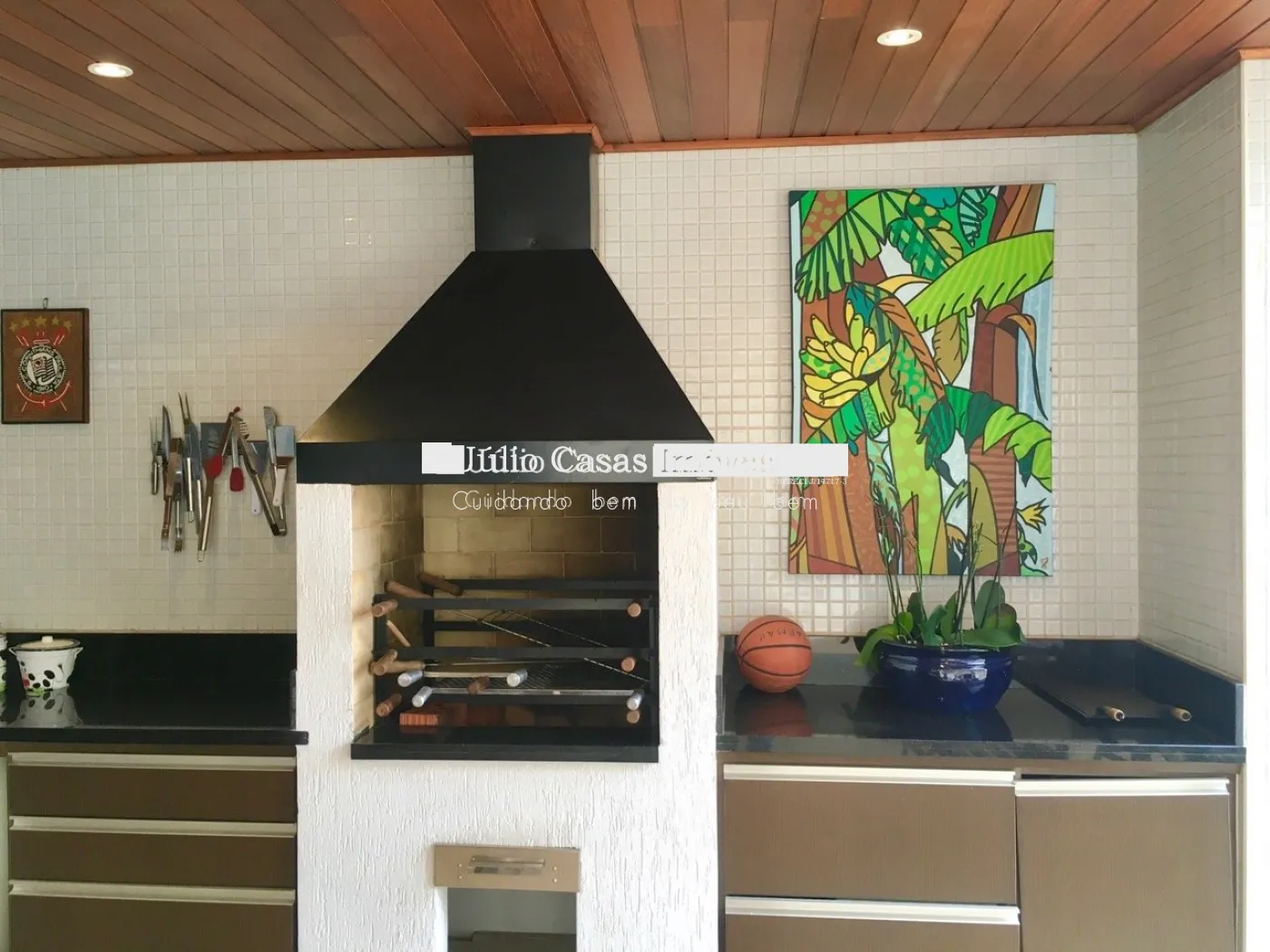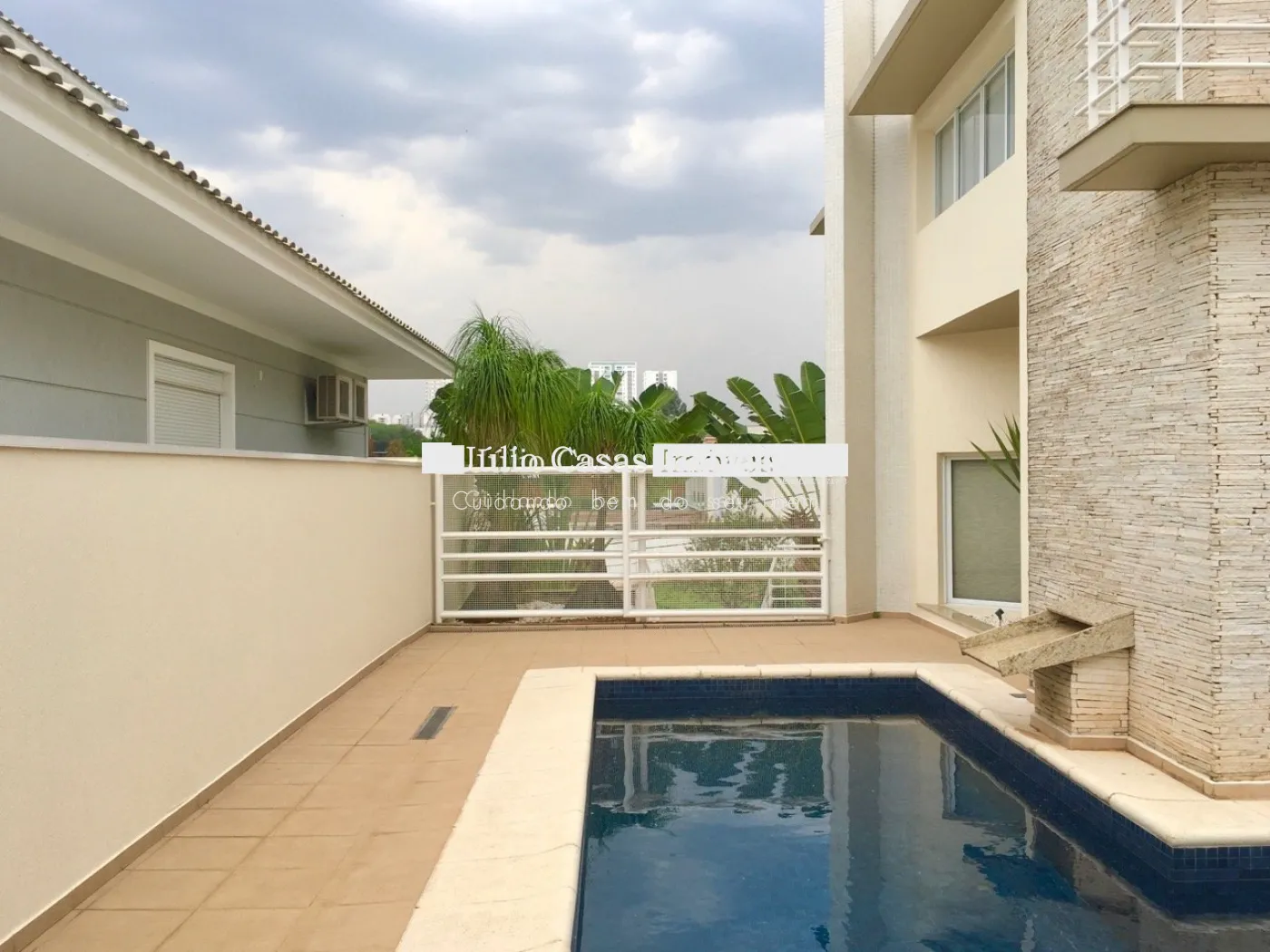 Na área externa, amplo espaço gourmet com churrasqueira e forno de pizza. Piscina e banheiro de apoio com chuveiro.