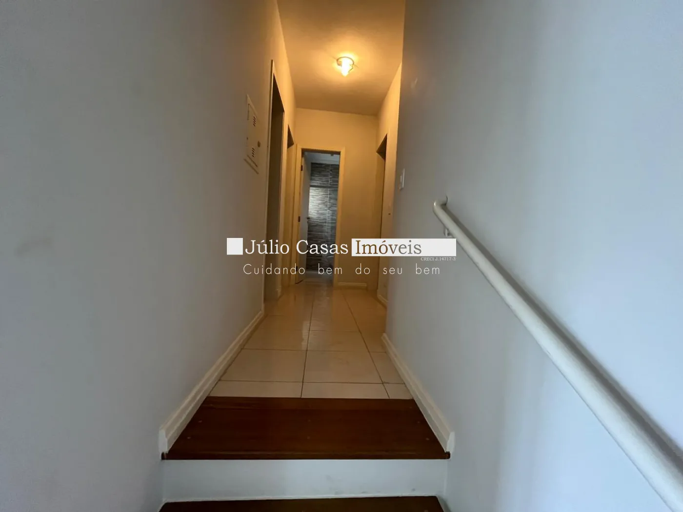 O imóvel tem acabamentos de alto padrão, incluindo piso em porcelanato, escada com estrutura metálica e degraus em madeira, e banheiros com box de vidro temperado. As janelas são em alumínio branco com pintura eletrolítica, garantindo durabilidade e sofisticação.