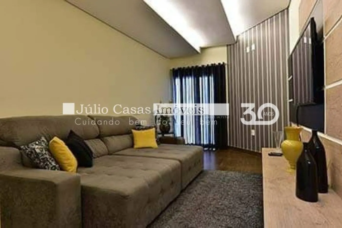 ótimo sobrado com 3 suites sendo 1 no térreo, sala 2 ambientes, lavabo, biblioteca e mais 1 dormitório grande onde seria o sótão, 2 varandas, copa cozinha grande com armários, área de serviço, banheiro externo, edícula com varanda, garagem para 2 carros cobertos. Casa com piso em madeira nos dormitórios e piso cerâmico no restante da casa, porta de entrada em madeira entalhada, teto forrado com ripas de madeira, ótima iluminação natural, casa cercada por jardim