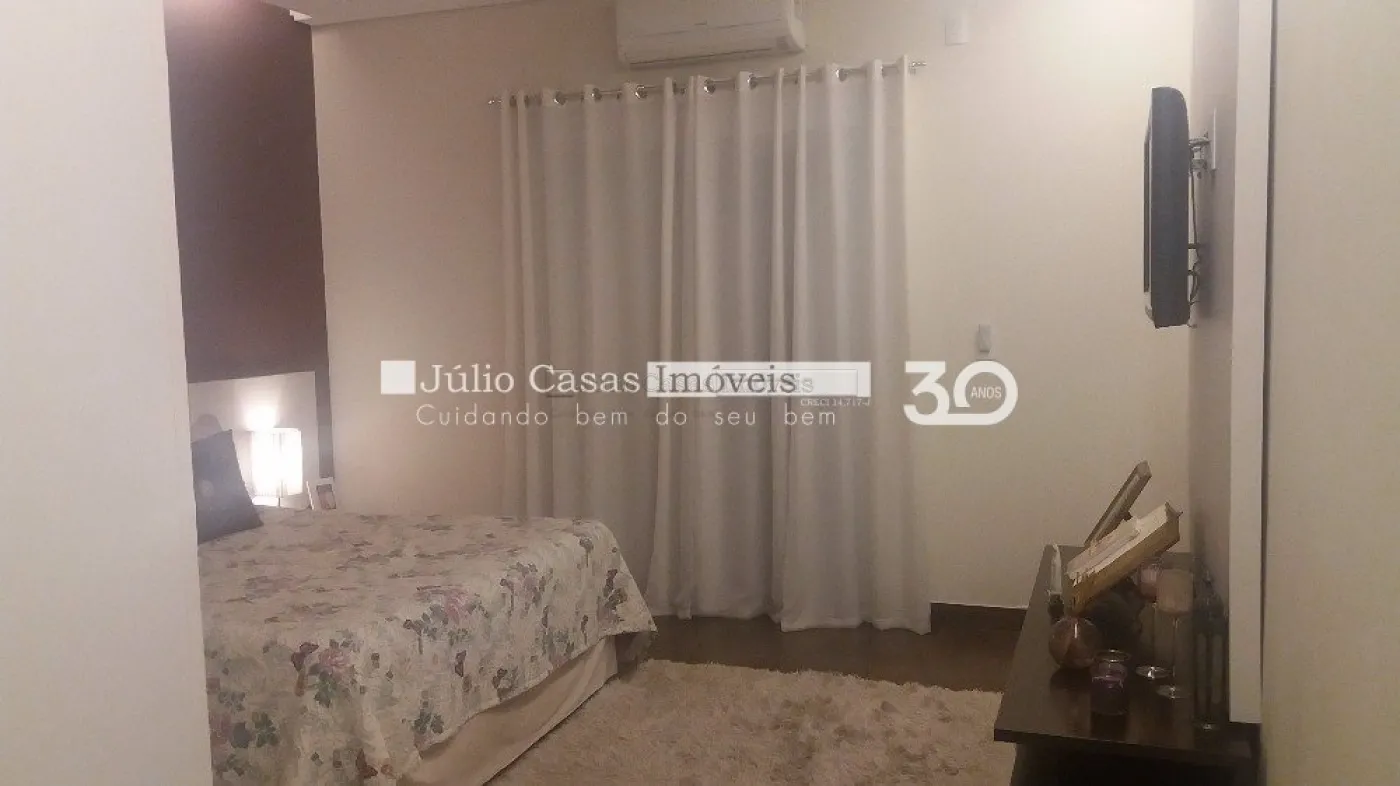 Casa com hall de entrada com elevador da garagem até os dormitórios. Sala 2 ambientes com luminárias embutidas com pé direito alto, sala com varanda, lavabo, sala de tv, todas com pisos em porcelanatos. Cozinha toda modulada com coifa de inox e bancada de granito, despensa com prateleira em mármore e lavanderia. Cozinha integrada com a área gourmet, a sala com linda vista para a piscina. Churrasqueira e forno de inox. Lavanderia com área de luz privativa para secagem de roupa, 3 suítes todas com closet e uma sendo máster, todos os dormitórios com varanda, aparelhos de ar condicionados e pisos em porcelanatos. Garagem para 3 veículos cobertos e 3 descobertos.