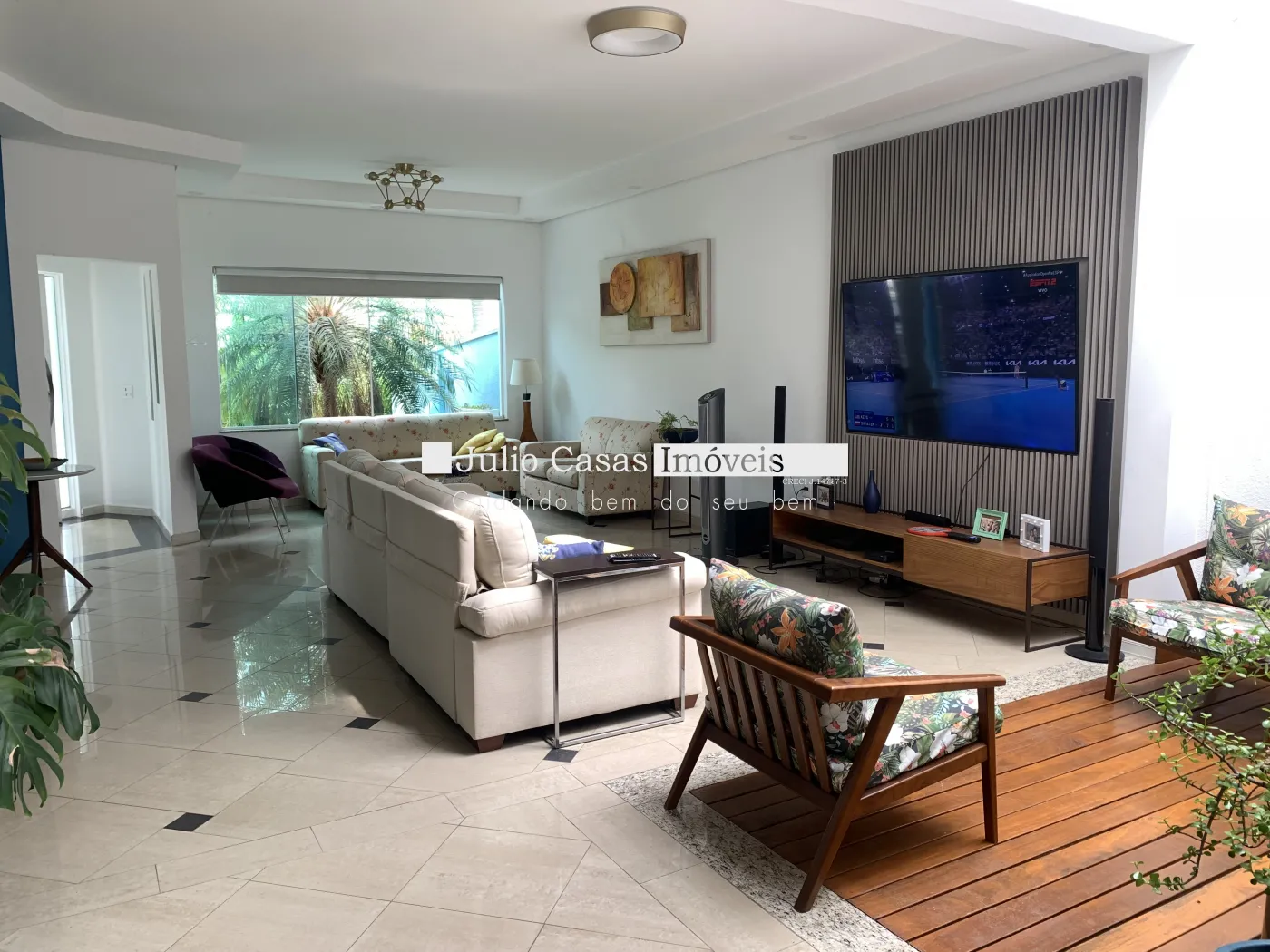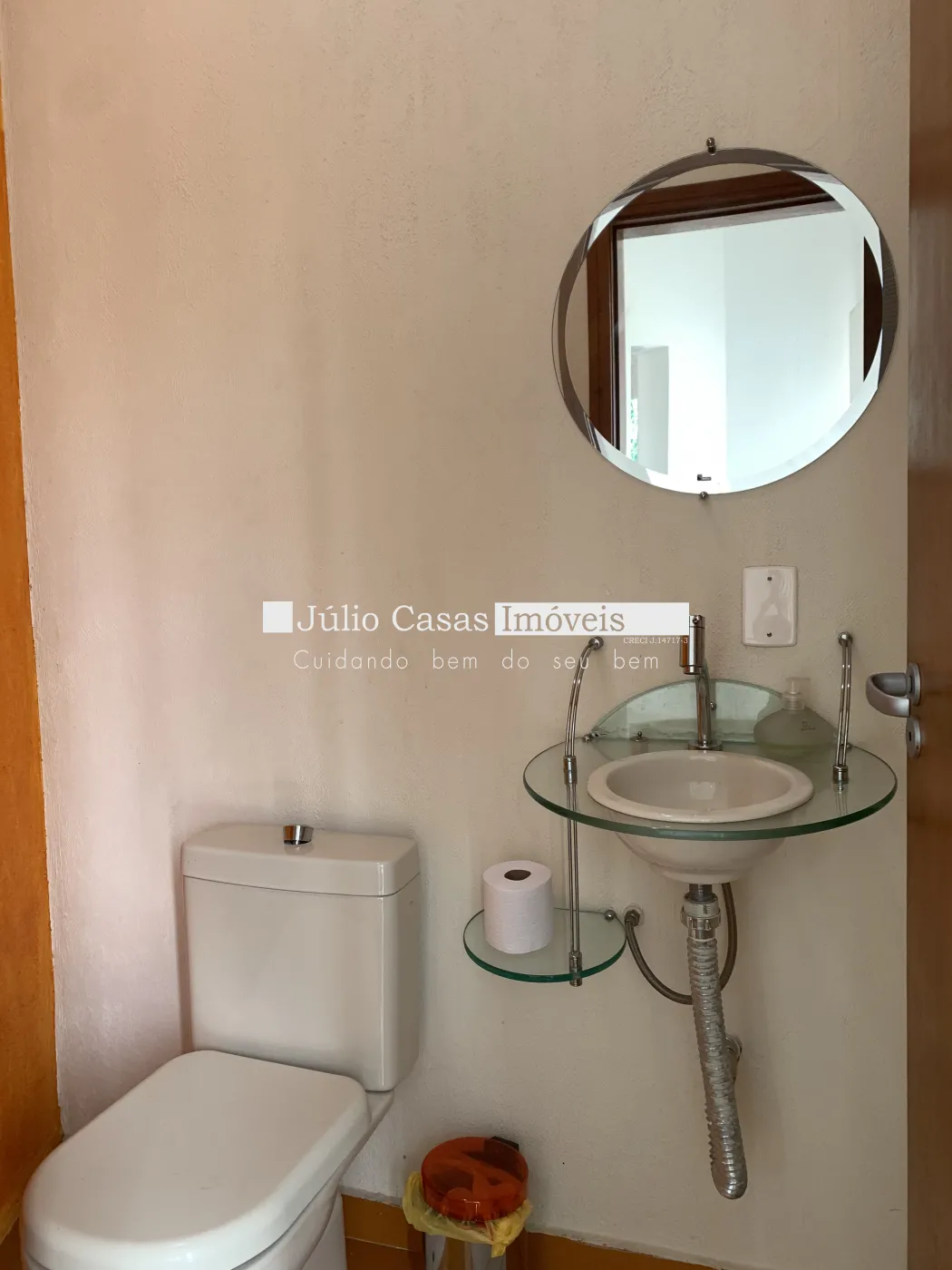 Ao entrar, à direita, você encontra um elegante lavabo. À frente, a ampla sala de estar se integra harmoniosamente à sala de TV, criando um espaço ideal para momentos de convivência. Um charmoso jardim de inverno traz leveza e sofisticação ao ambiente, proporcionando um toque de natureza que completa a decoração.