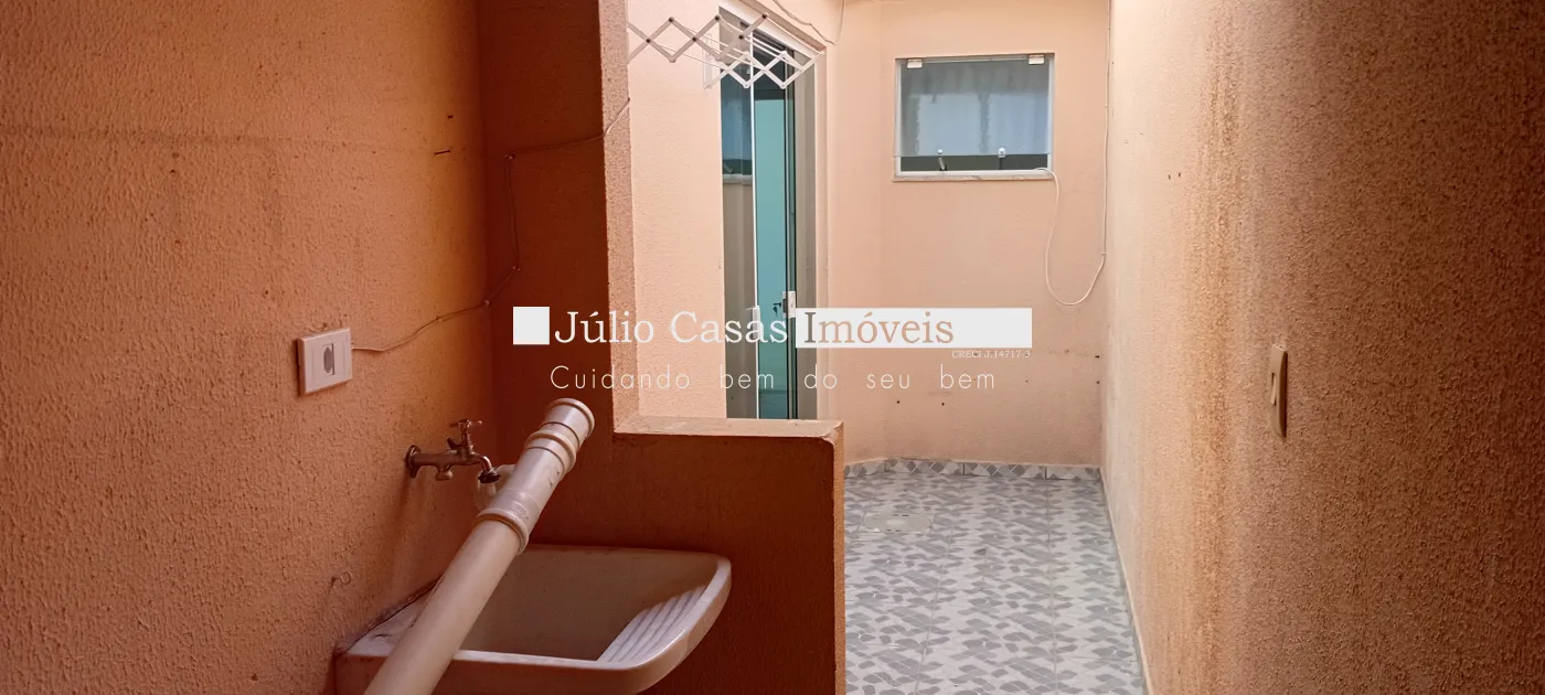 A lavanderia é coberta e bem ventilada, e o destaque fica para a charmosa área de luz com cobertura ajustável, que permite o controle da entrada de iluminação natural e circulação de ar. Na frente do imóvel, um amplo quintal gramado complementa o espaço, ideal para jardinagem, pets ou simplesmente relaxar ao ar livre.