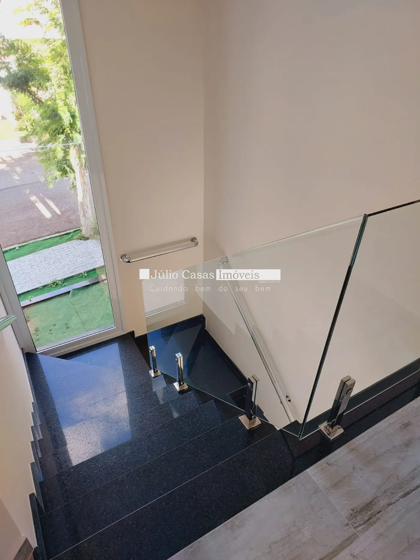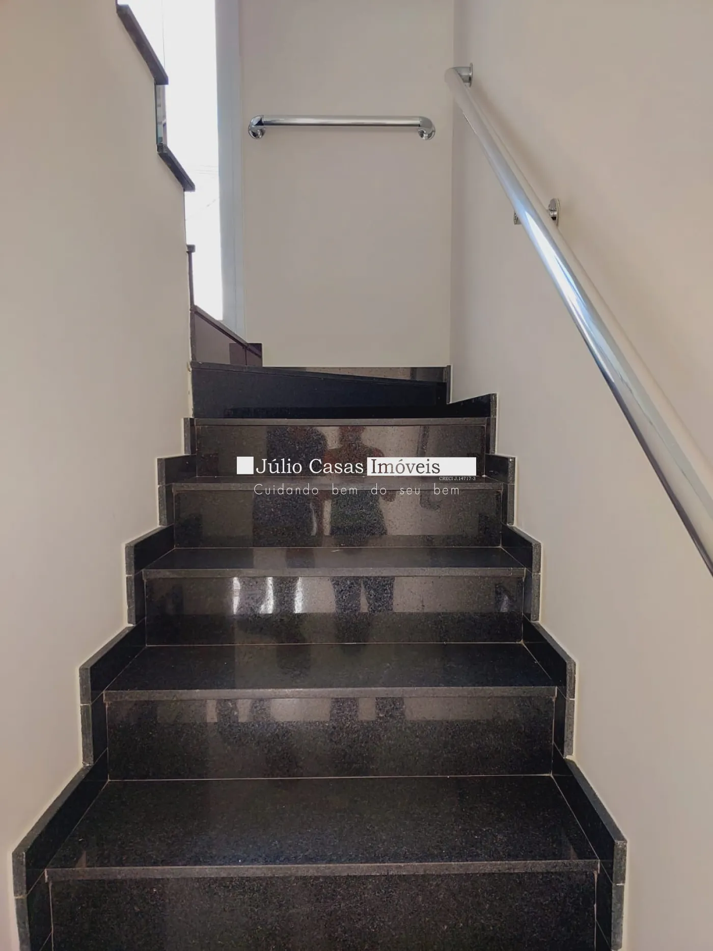 escada em granito com corrimão em alumínio, área gourmet com wc, piscina, corredor lateral para entrada de serviço, churrasqueira com pia .