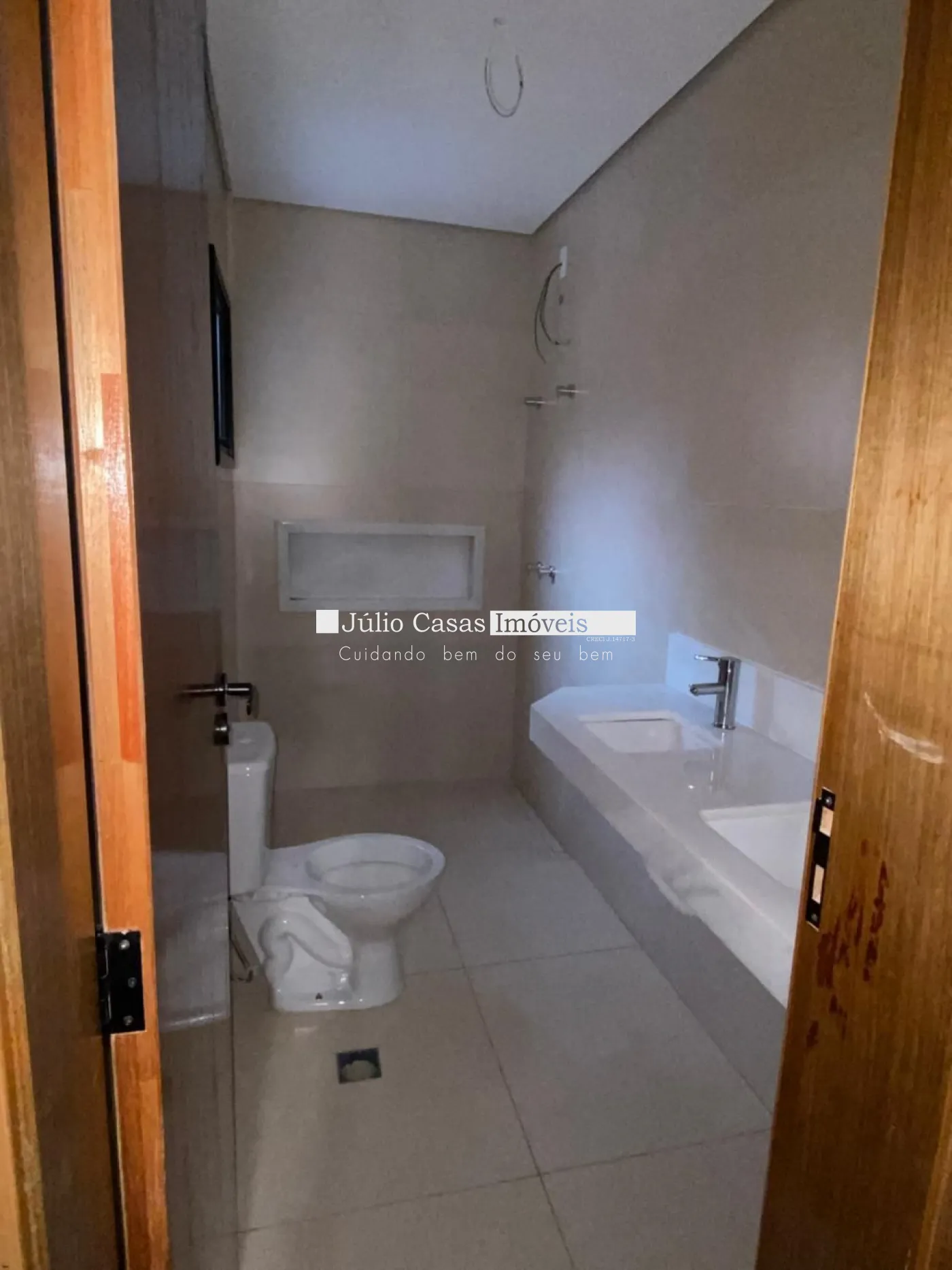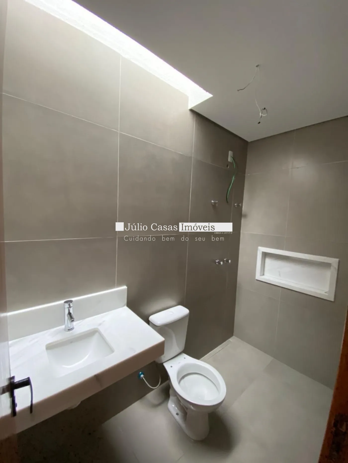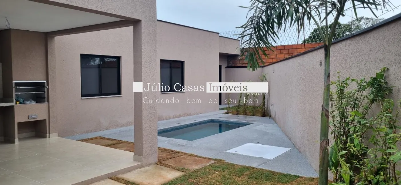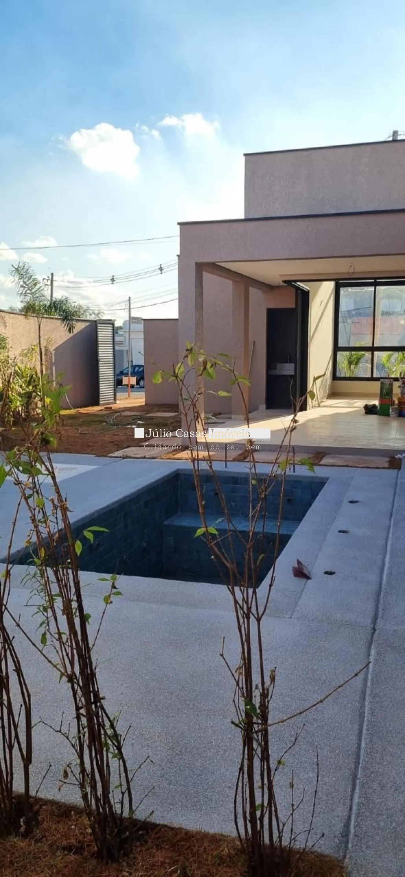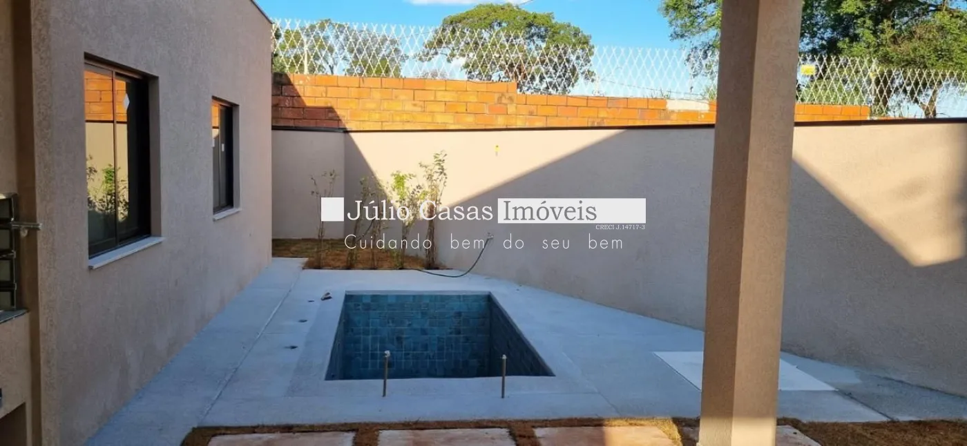 3 suítes amplas sendo 1 com closet, casa toda com piso e revestimento em porcelanato, esquadrias pretas com persianas integradas, bancada da cozinha e banheiros em granito, preparação para boiler e ar condicionado nos ambientes.