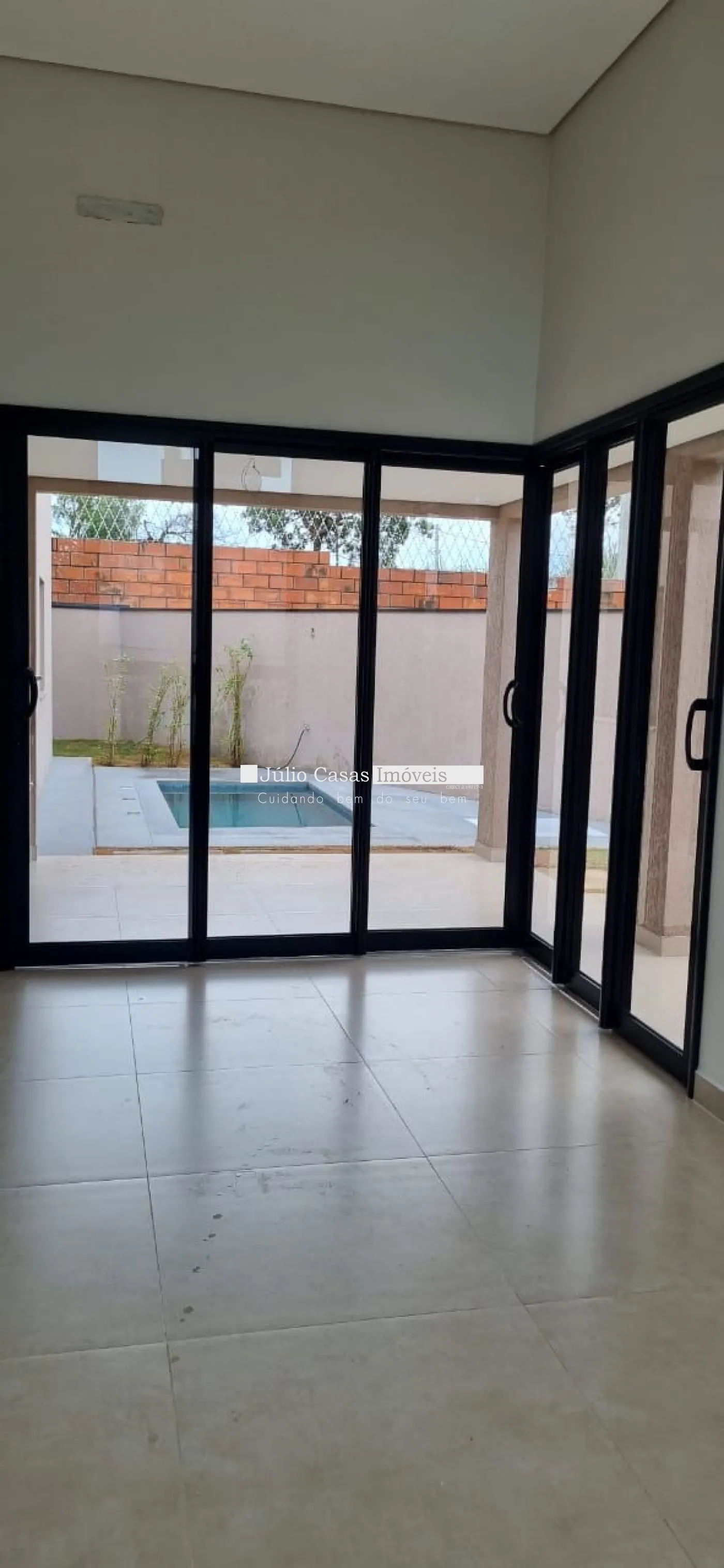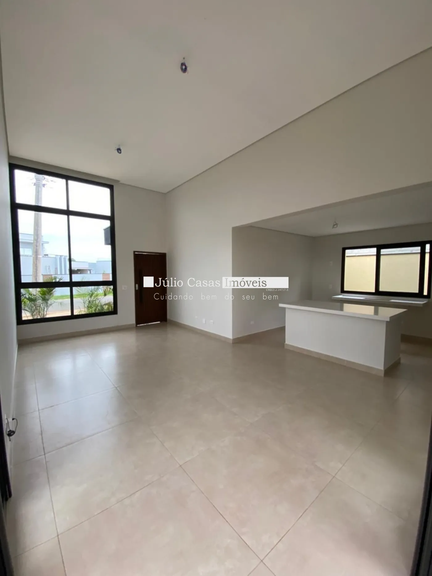 Casa a venda em condomínio com sala pé direito alto, esquina proporcionando maior privacidade.