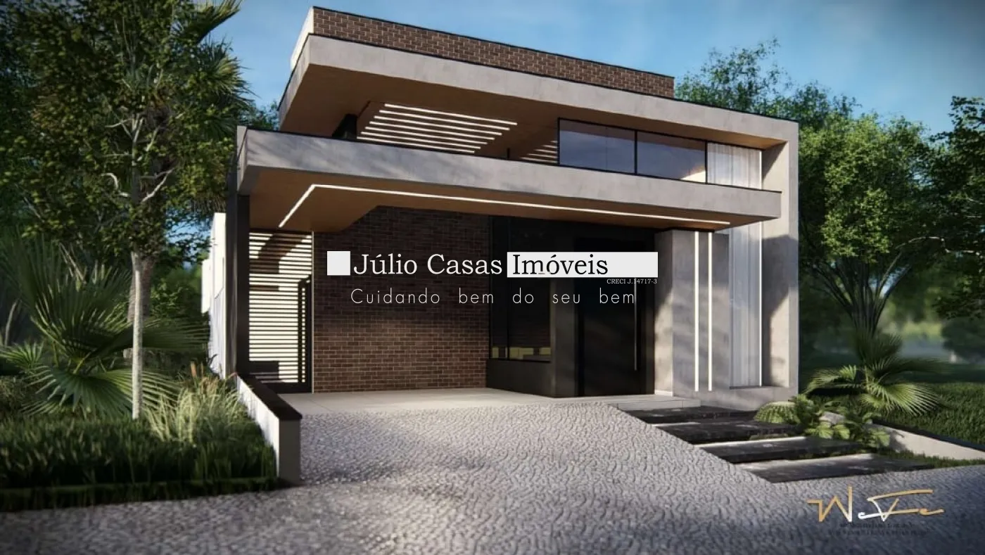 Casa térrea a venda em condomínio, sala de estar com sanca em LED, painel de tv em porcelanato, sala de jantar, cozinha com ilha e despensa, lavabo, área gourmet com churrasqueira, wc para suporte da área gourmet, quintal, lavanderia e garagem para 4 veículos. Estrutura pronta para ar condicionado, pisos e revestimentos em porcelanato, acabamento em gesso nos tetos. 3 suítes amplas sendo a máster com espaço para closet.