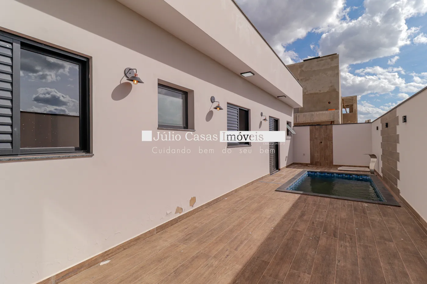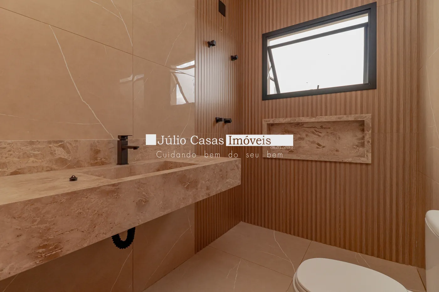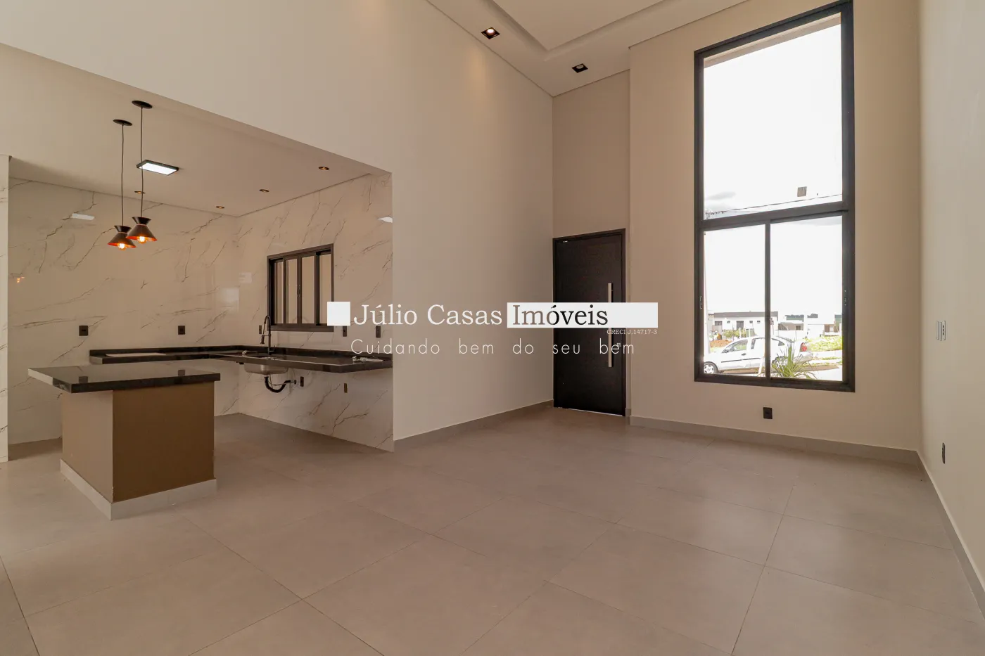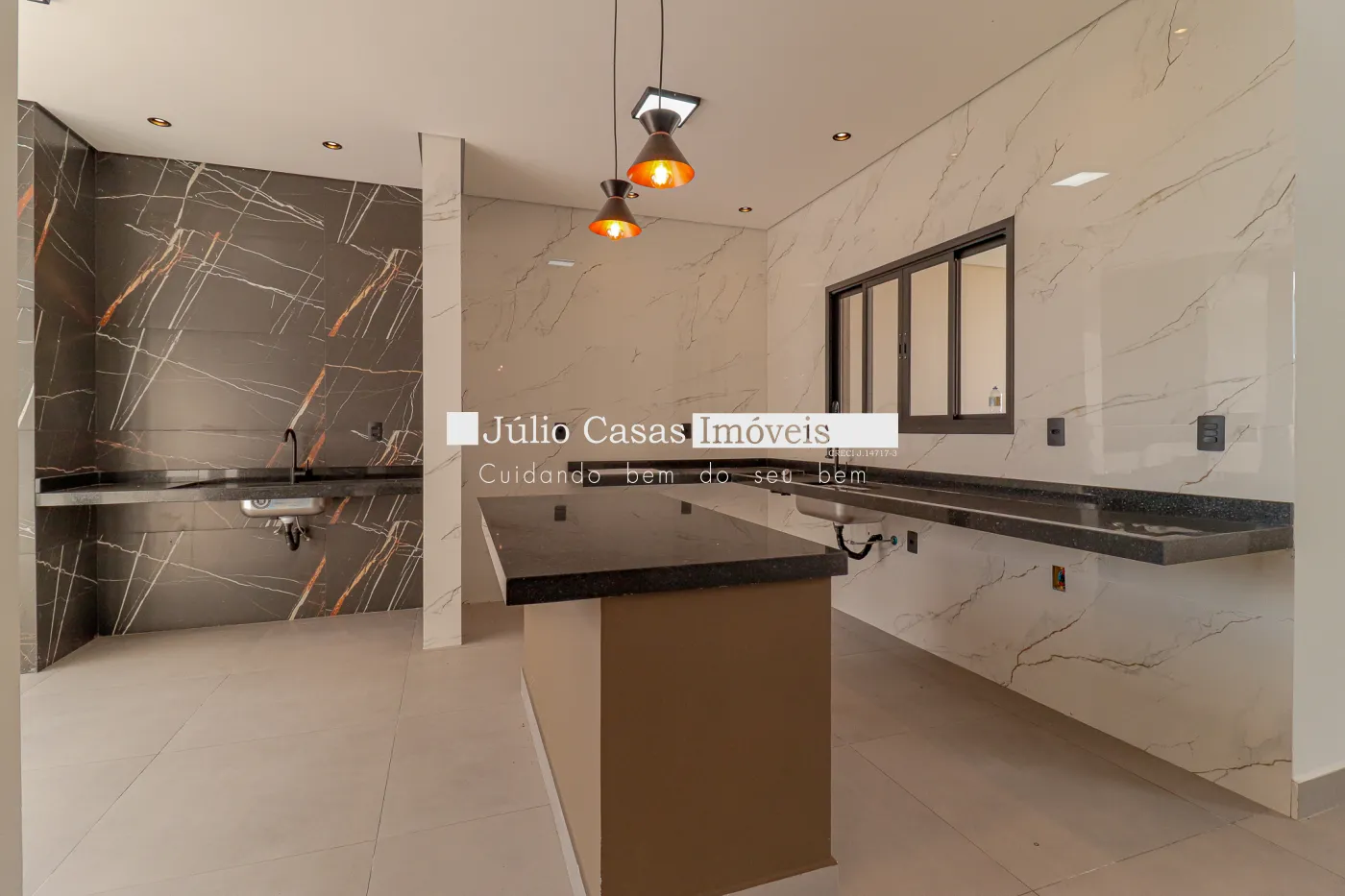 Linda Casa com 3 dormitórios, sendo uma suíte com closet e 1 banheiro social ambos com mármore travertino e cuba exposta, Ampla sala com pé direito alto toda a casa em porcelanato, cozinha com ilha e integrada, espaço gourmet amplo e piscina privativa com cascata, fino acabamento.