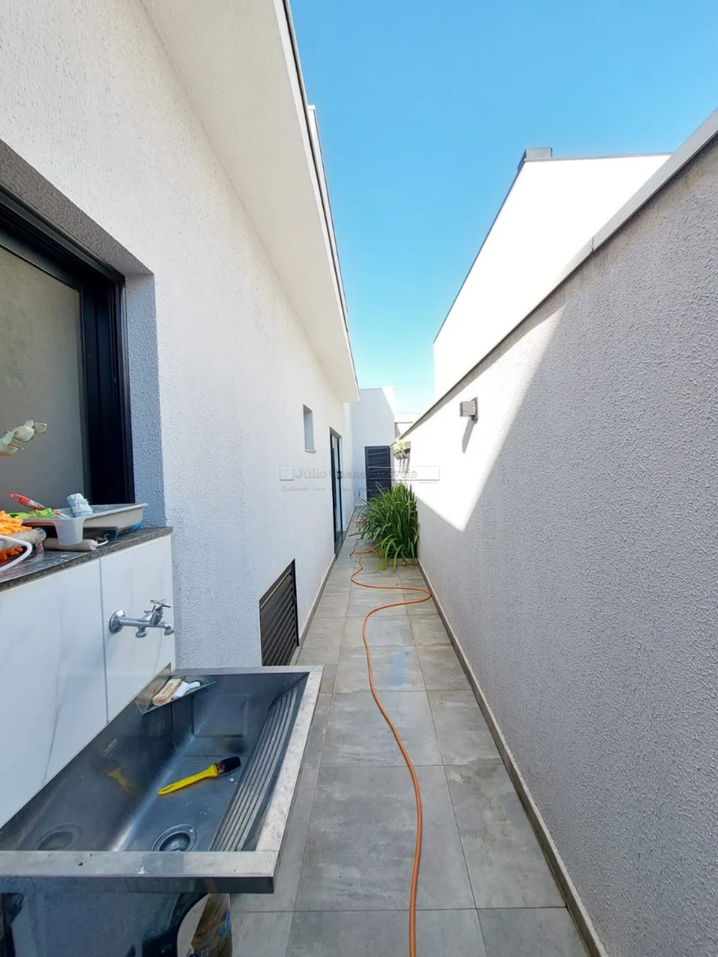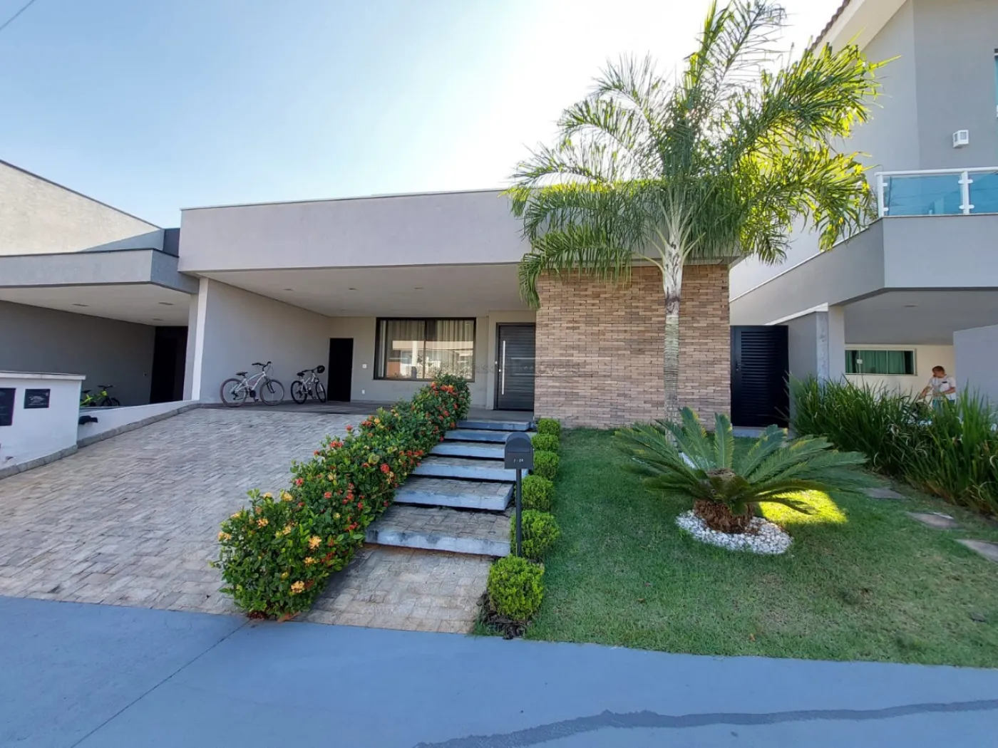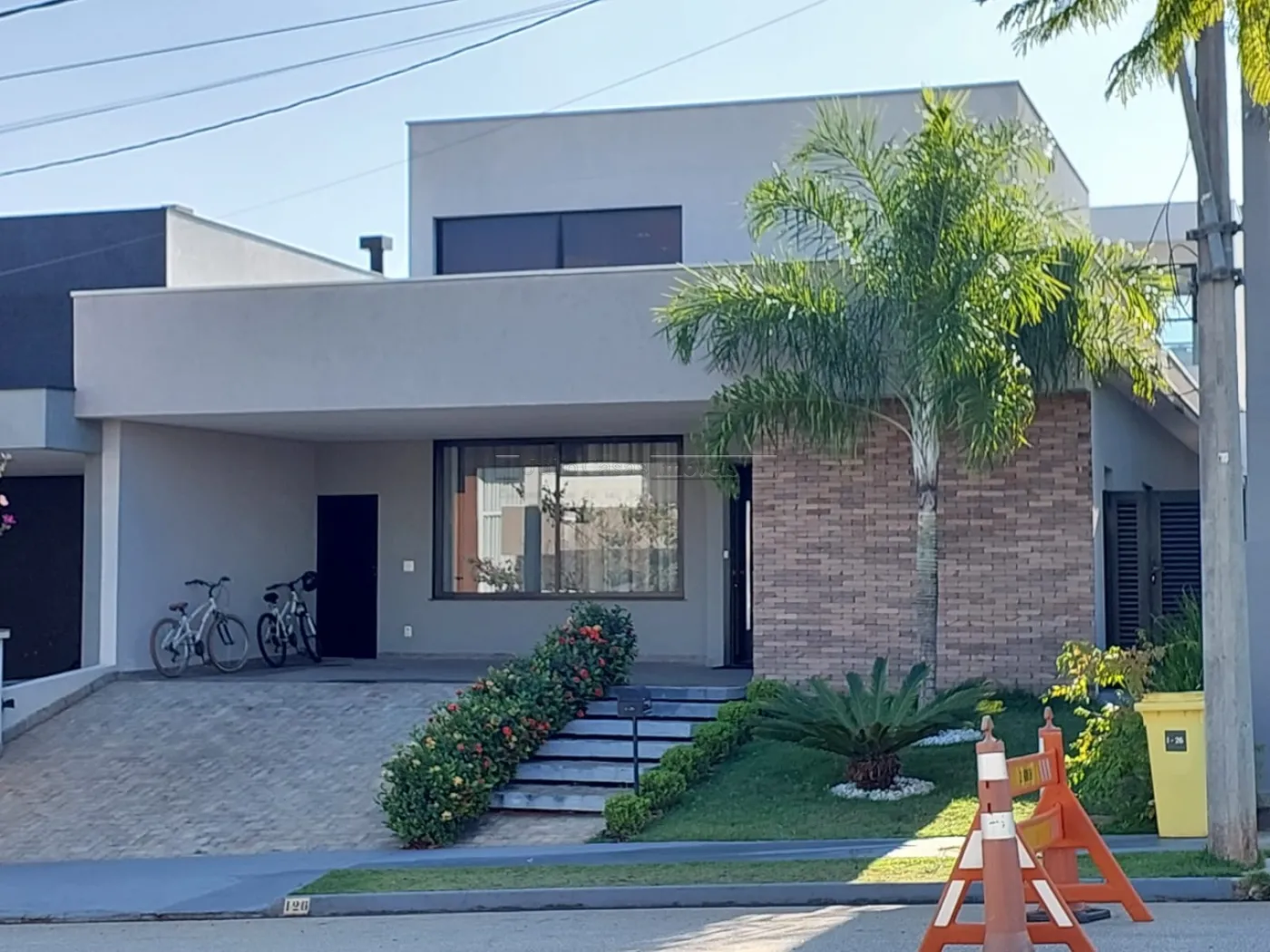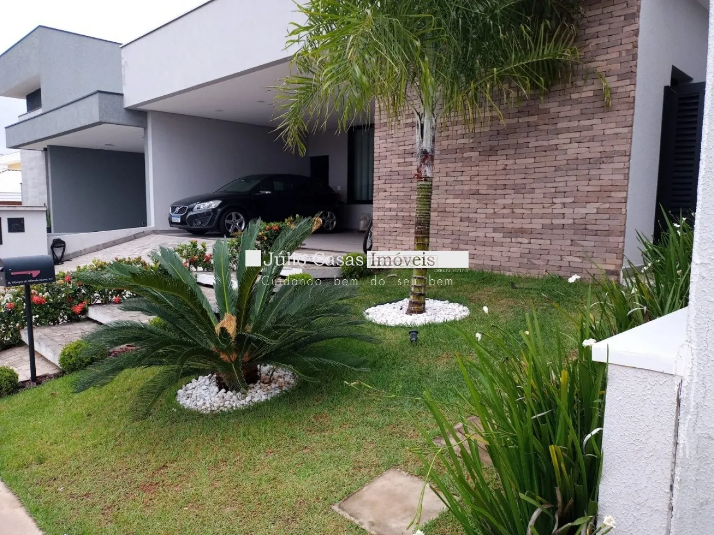 A entrada lateral de serviço é prática e funcional, e a garagem acomoda até quatro veículos, sendo duas vagas cobertas. Uma residência que alia conforto, elegância e eficiência em um dos melhores condomínios da região.