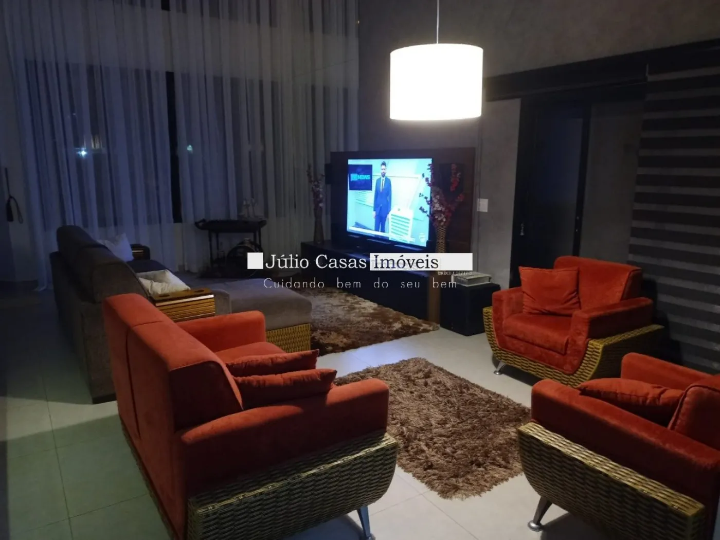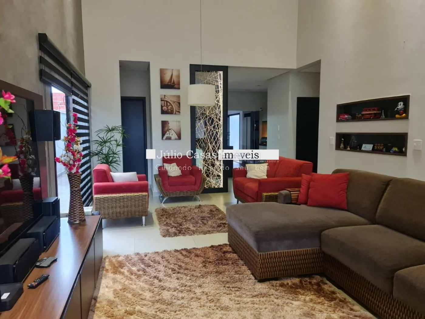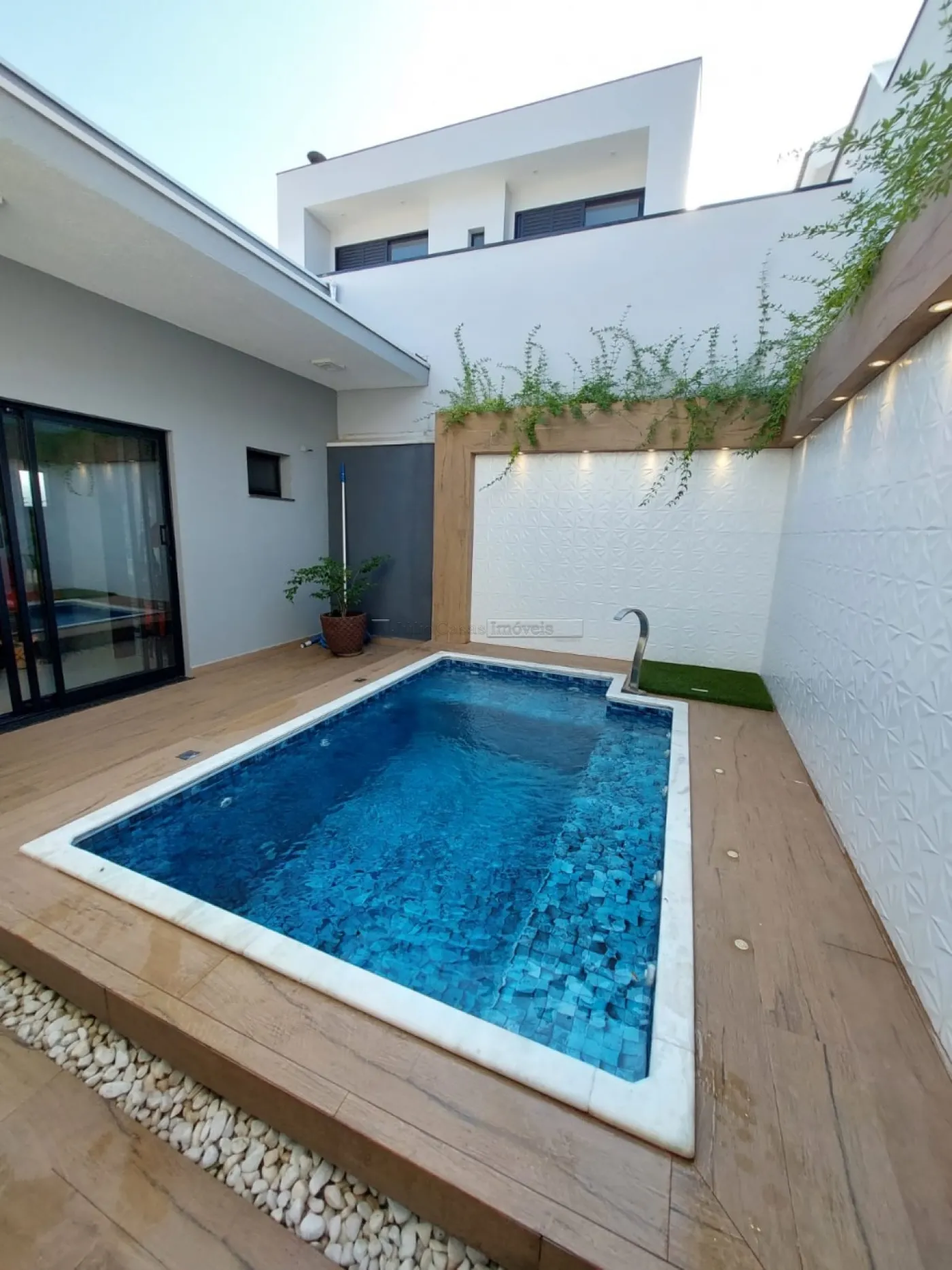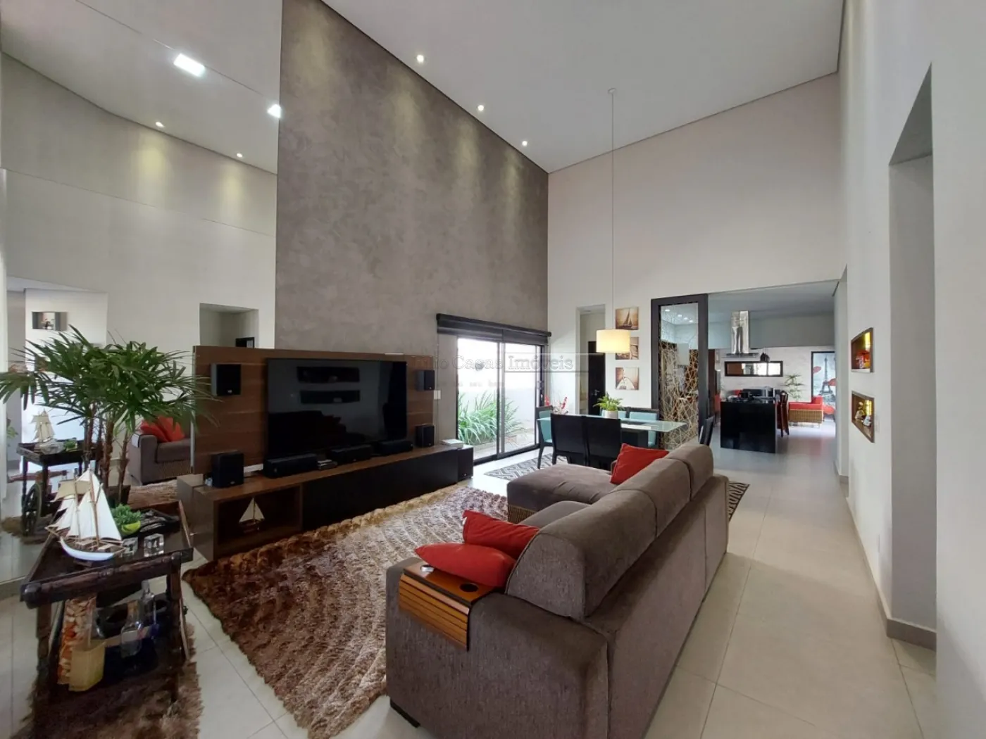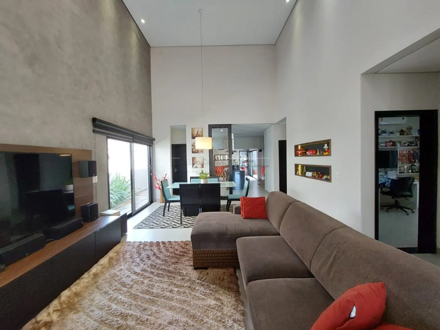 Casa térrea com excelente localização dentro do condomínio. A sala de estar e jantar integra dois ambientes com pé direito duplo, proporcionando uma sensação de amplitude e luminosidade. A cozinha é equipada com móveis planejados, uma ilha em granito e coifa de inox, além de um lavabo sofisticado com pedra de mármore e cuba esculpida. A área de serviço é funcional, com armários e acesso ao quintal, onde se encontra uma piscina aquecida e uma área gourmet completa, incluindo um banheiro.