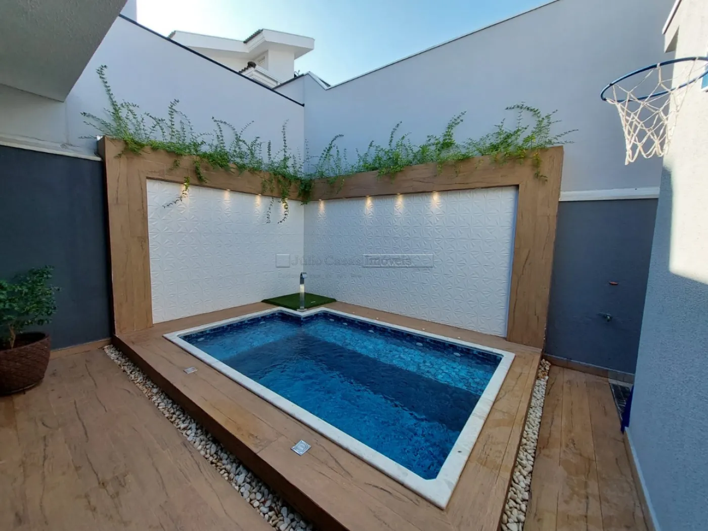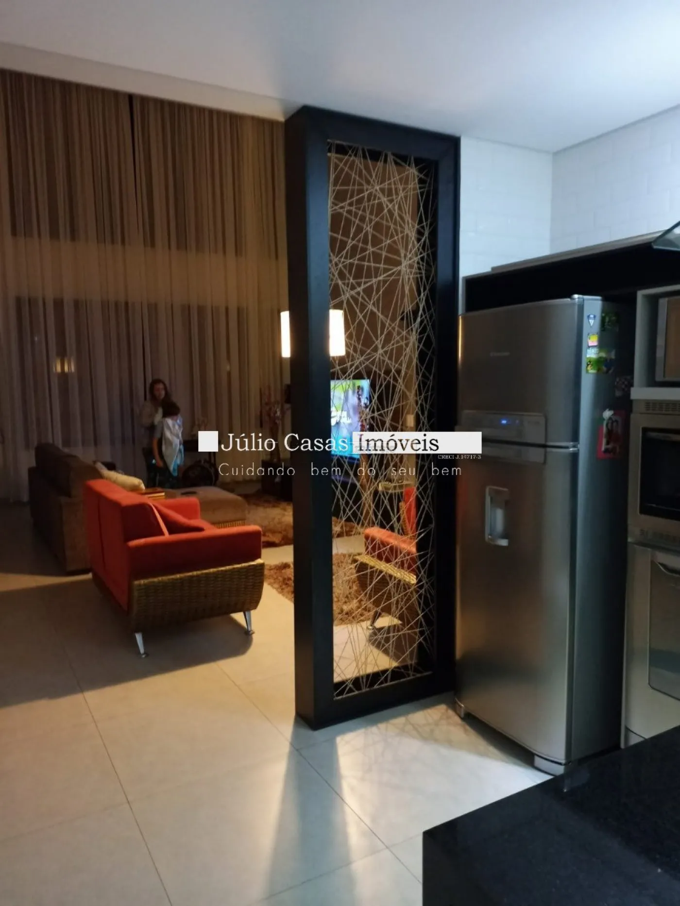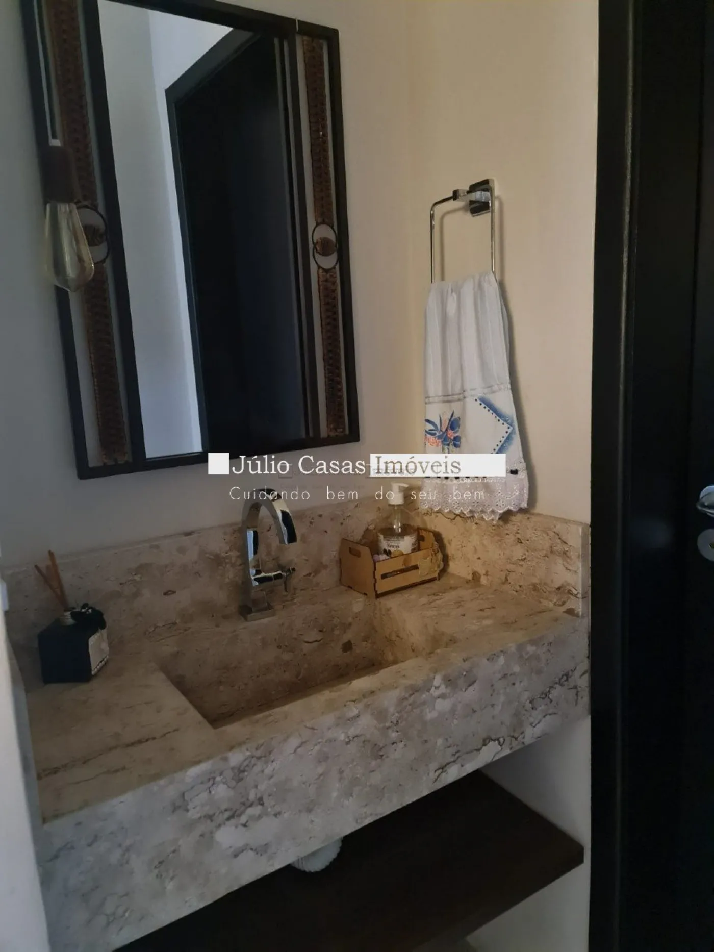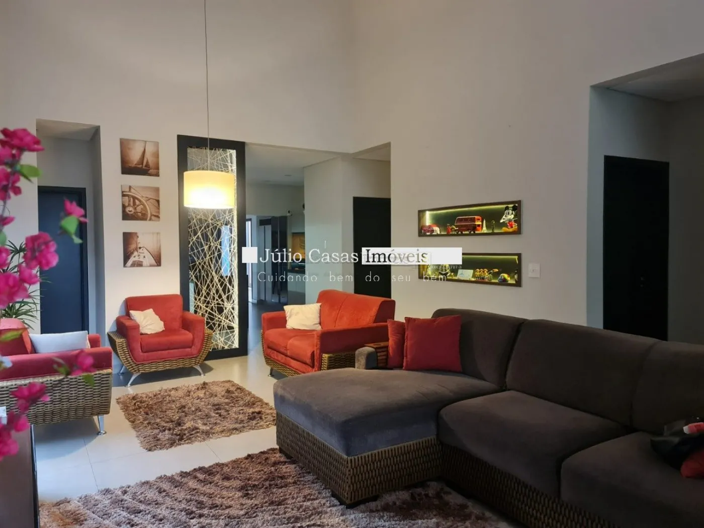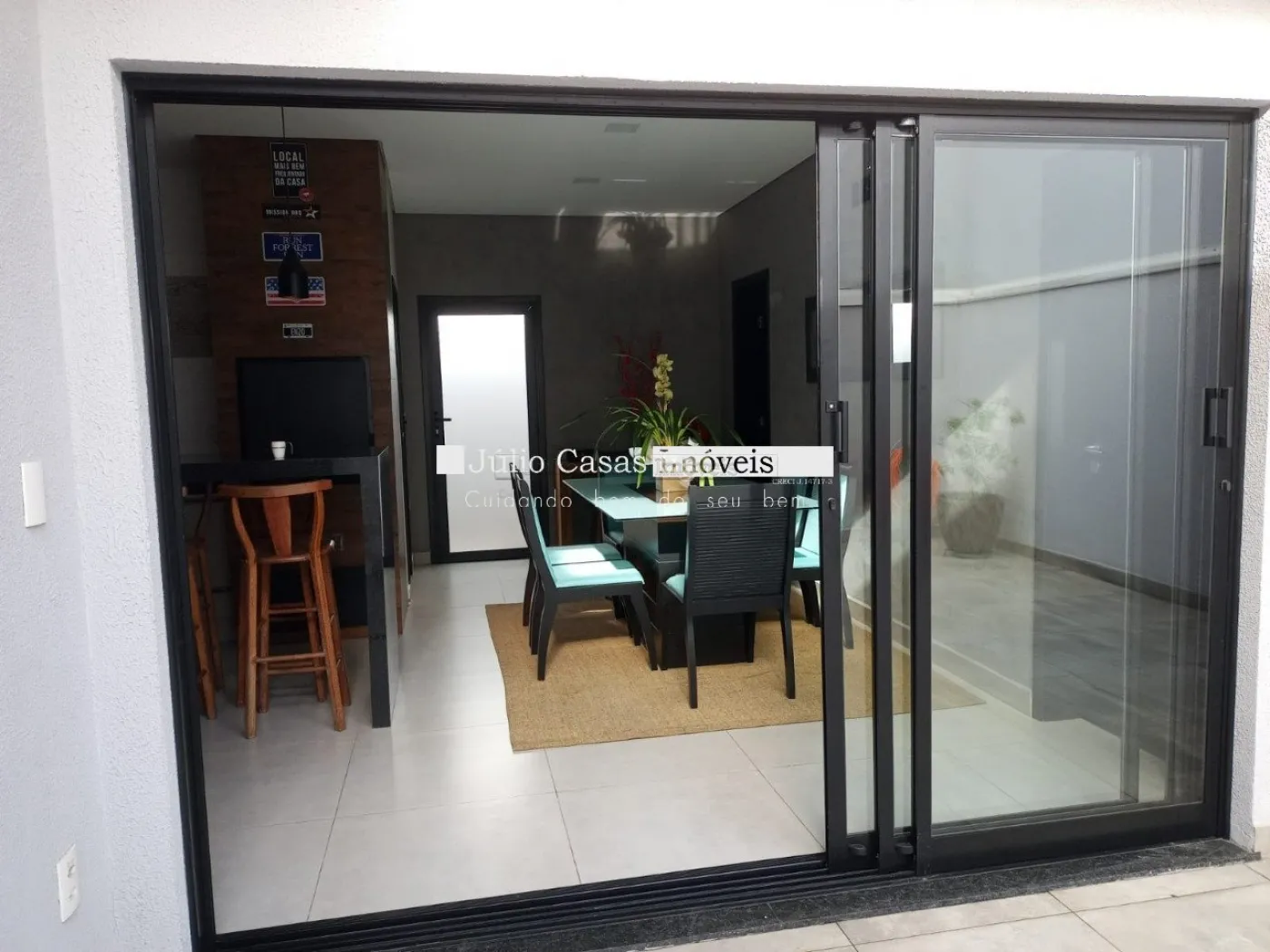 Casa térrea com excelente localização dentro do condomínio. A sala de estar e jantar integra dois ambientes com pé direito duplo, proporcionando uma sensação de amplitude e luminosidade. A cozinha é equipada com móveis planejados, uma ilha em granito e coifa de inox, além de um lavabo sofisticado com pedra de mármore e cuba esculpida. A área de serviço é funcional, com armários e acesso ao quintal, onde se encontra uma piscina aquecida e uma área gourmet completa, incluindo um banheiro.