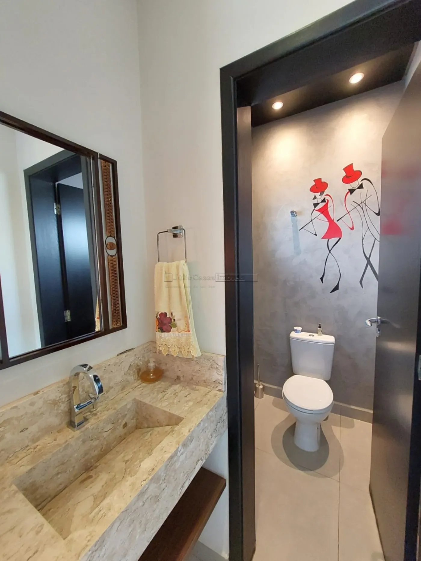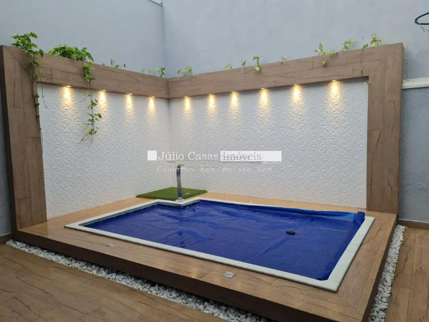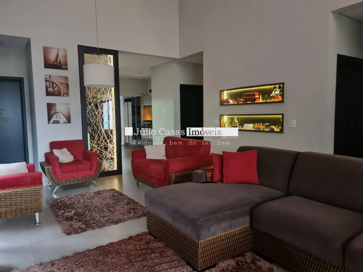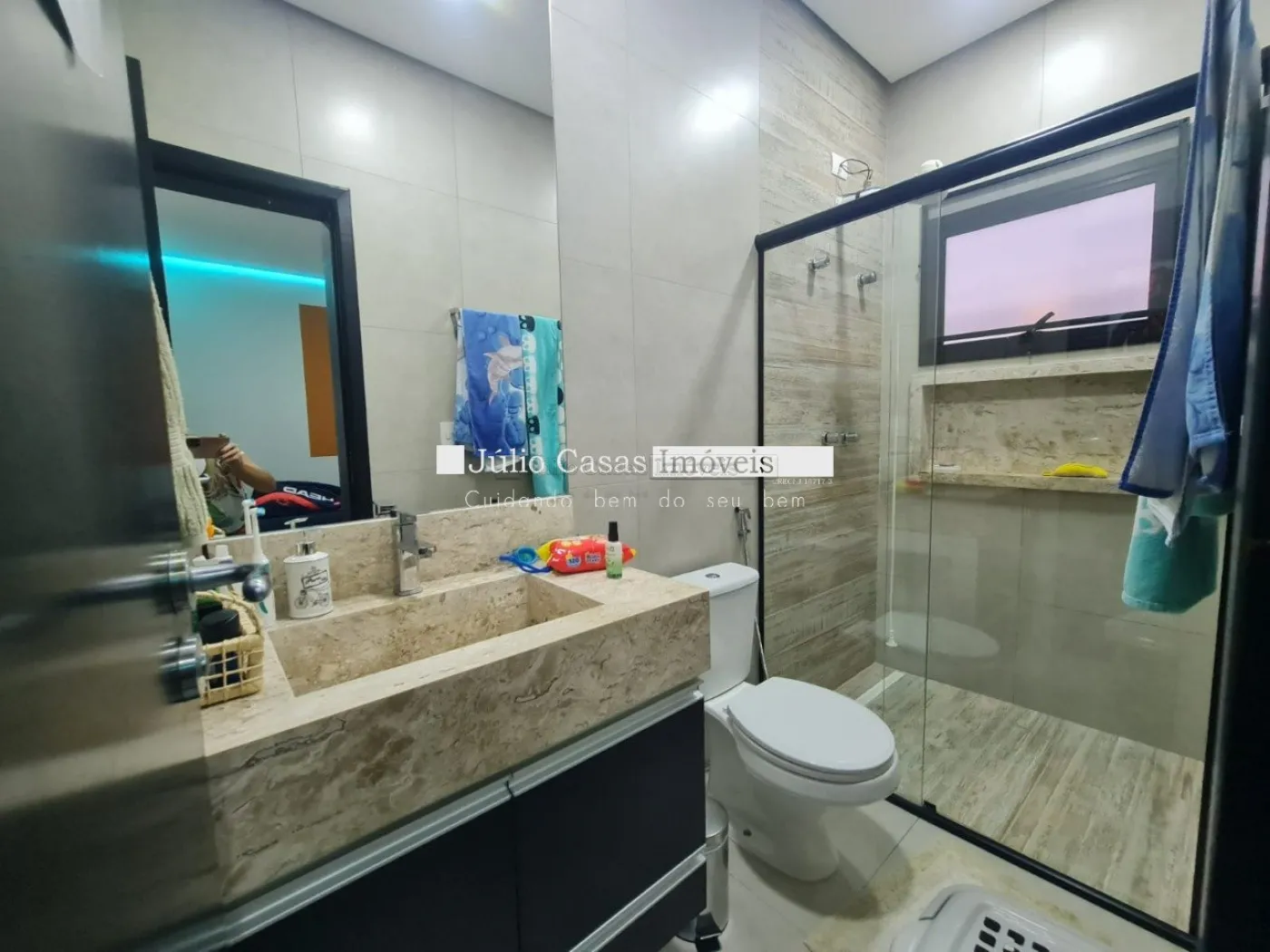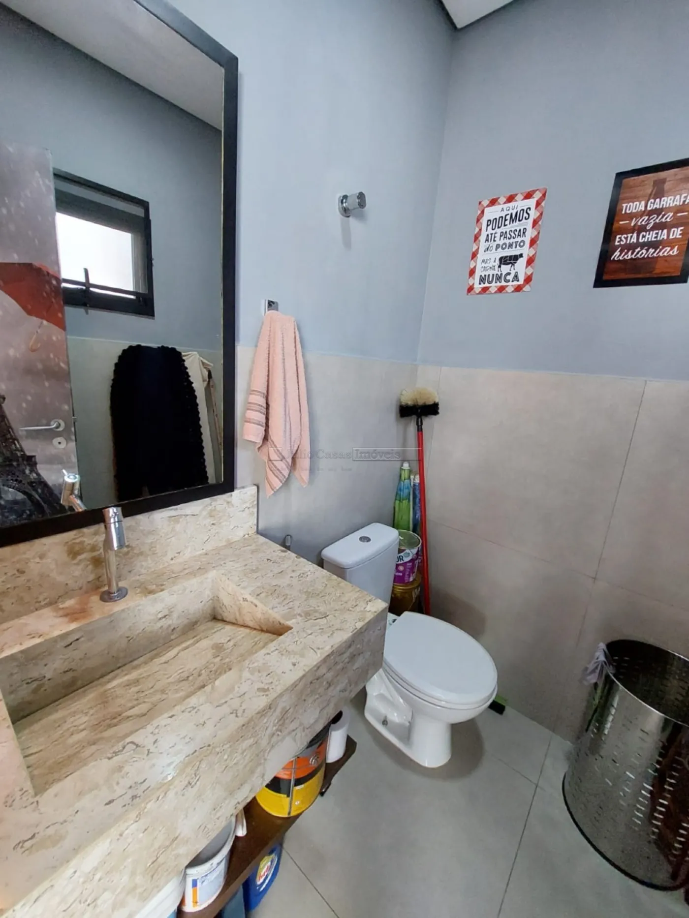 Casa térrea com excelente localização dentro do condomínio. A sala de estar e jantar integra dois ambientes com pé direito duplo, proporcionando uma sensação de amplitude e luminosidade. A cozinha é equipada com móveis planejados, uma ilha em granito e coifa de inox, além de um lavabo sofisticado com pedra de mármore e cuba esculpida. A área de serviço é funcional, com armários e acesso ao quintal, onde se encontra uma piscina aquecida e uma área gourmet completa, incluindo um banheiro.
