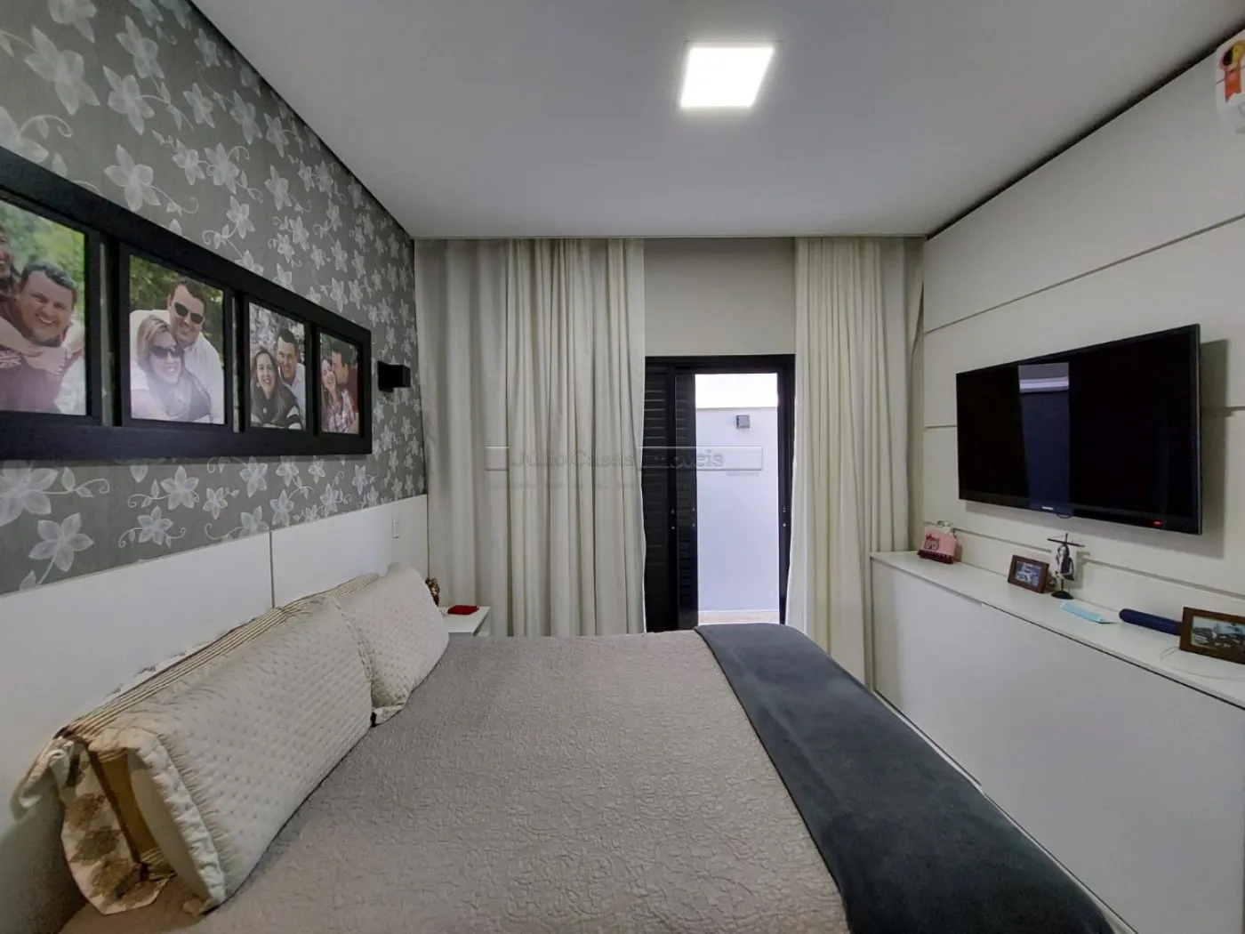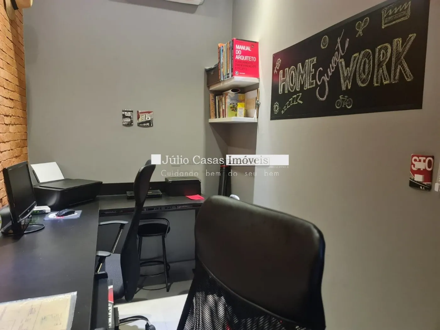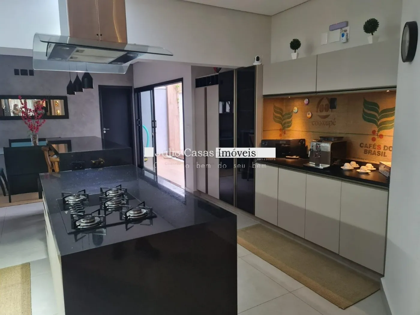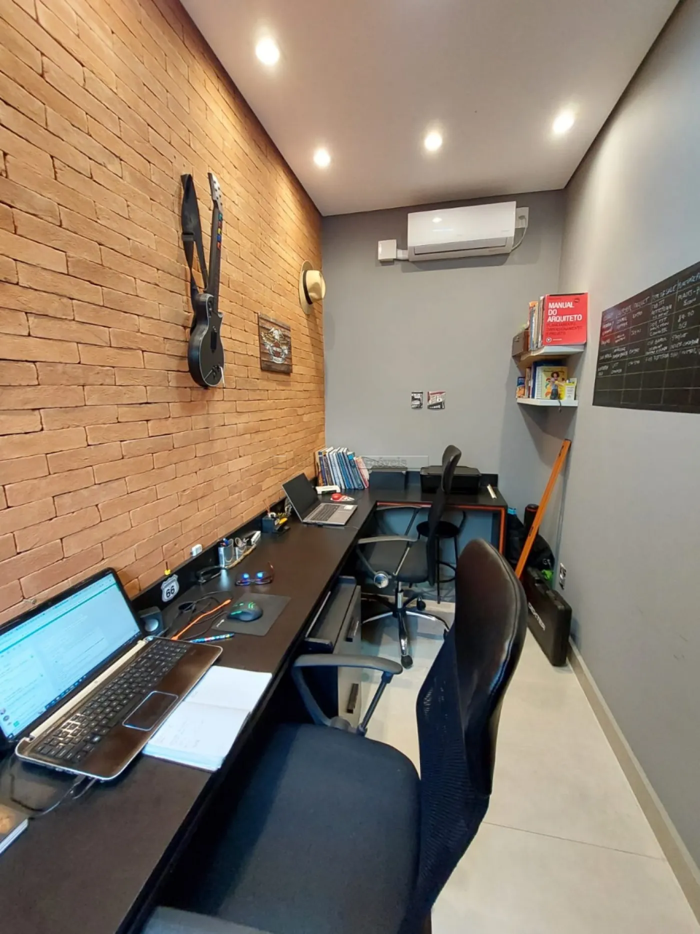O imóvel possui um escritório modulado, perfeito para trabalho ou estudo, e três suítes, todas com móveis planejados, sendo uma delas uma suíte máster com closet. Para maior conforto, todos os dormitórios e o escritório estão equipados com ar condicionado. A casa é revestida com porcelanato de alta qualidade, possui sistema de aquecimento solar para torneiras e duchas, além de energia fotovoltaica, promovendo economia e sustentabilidade.