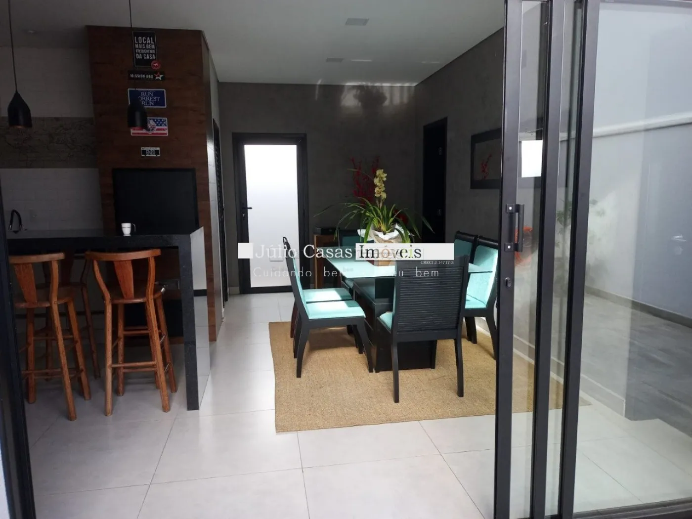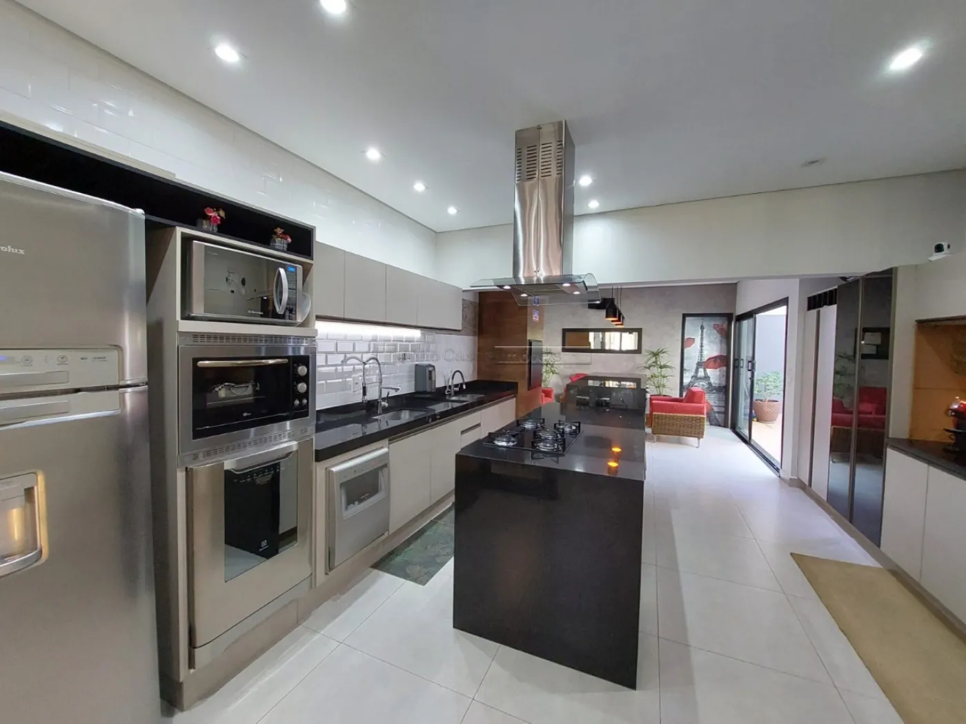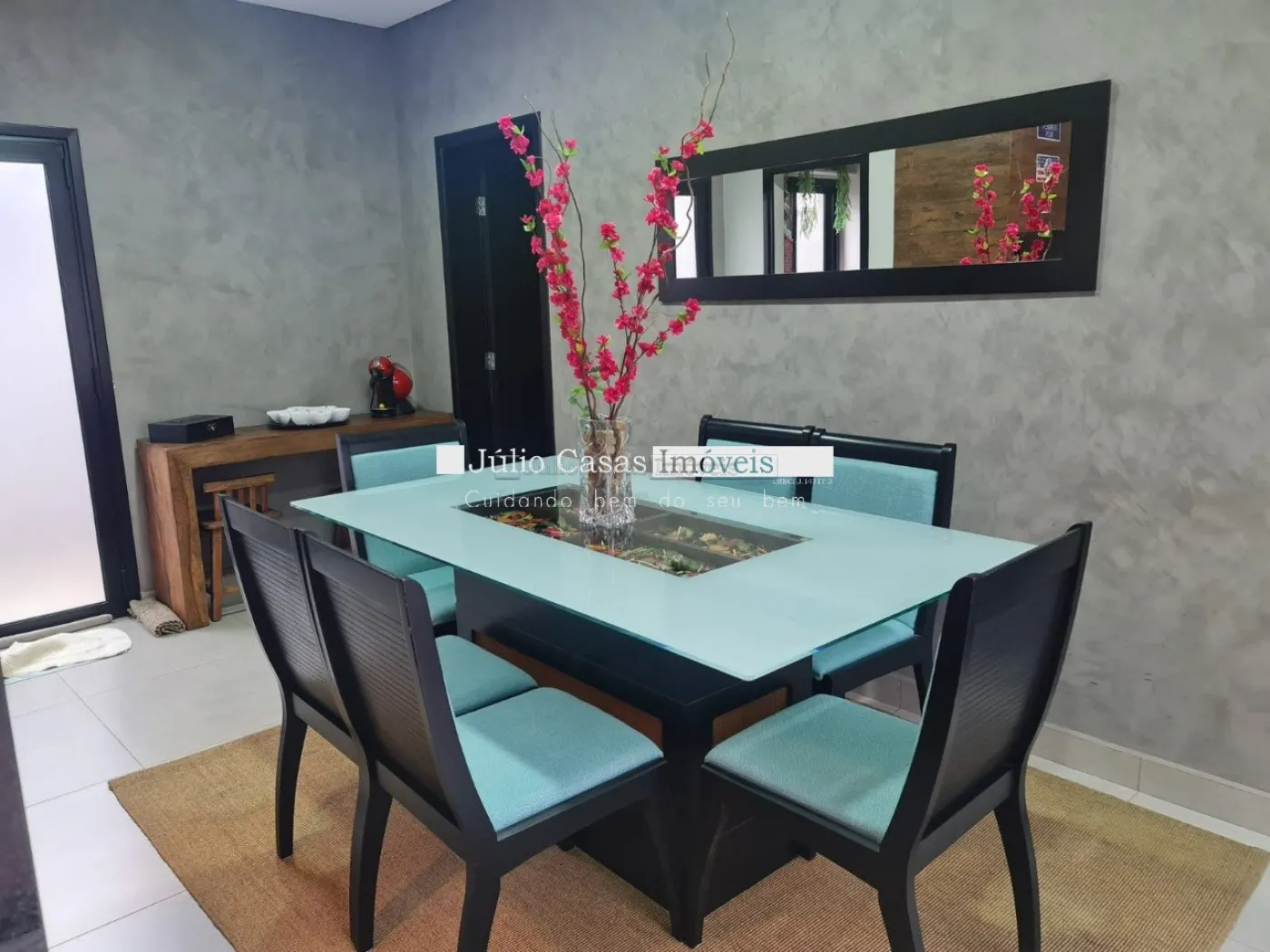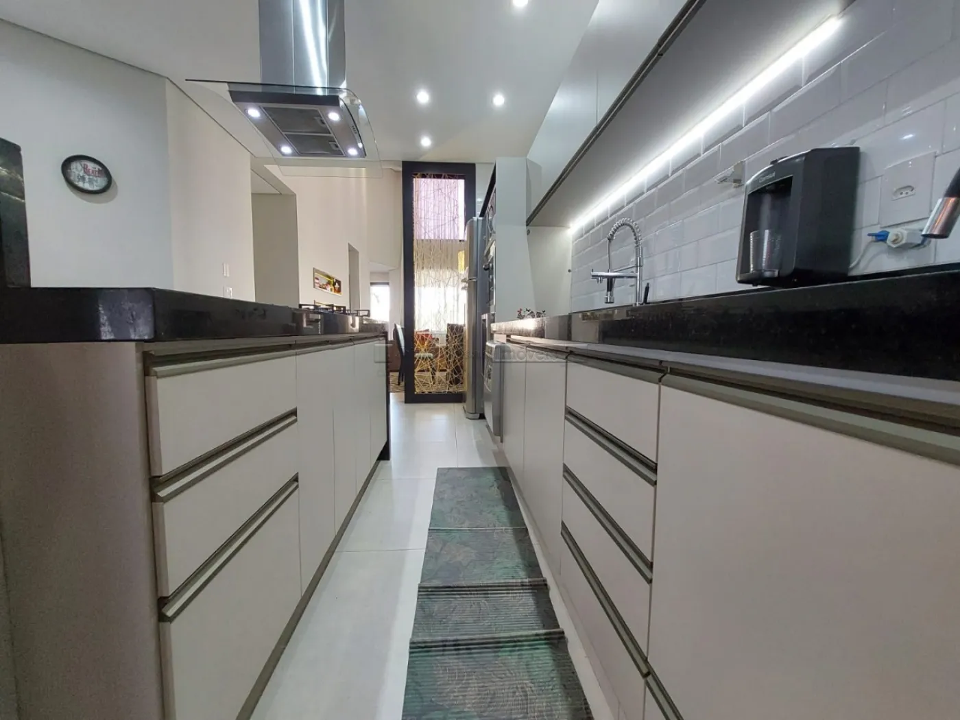 O imóvel possui um escritório modulado, perfeito para trabalho ou estudo, e três suítes, todas com móveis planejados, sendo uma delas uma suíte máster com closet. Para maior conforto, todos os dormitórios e o escritório estão equipados com ar condicionado. A casa é revestida com porcelanato de alta qualidade, possui sistema de aquecimento solar para torneiras e duchas, além de energia fotovoltaica, promovendo economia e sustentabilidade.