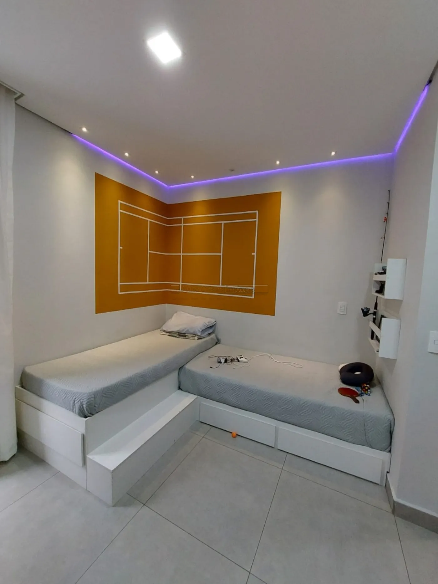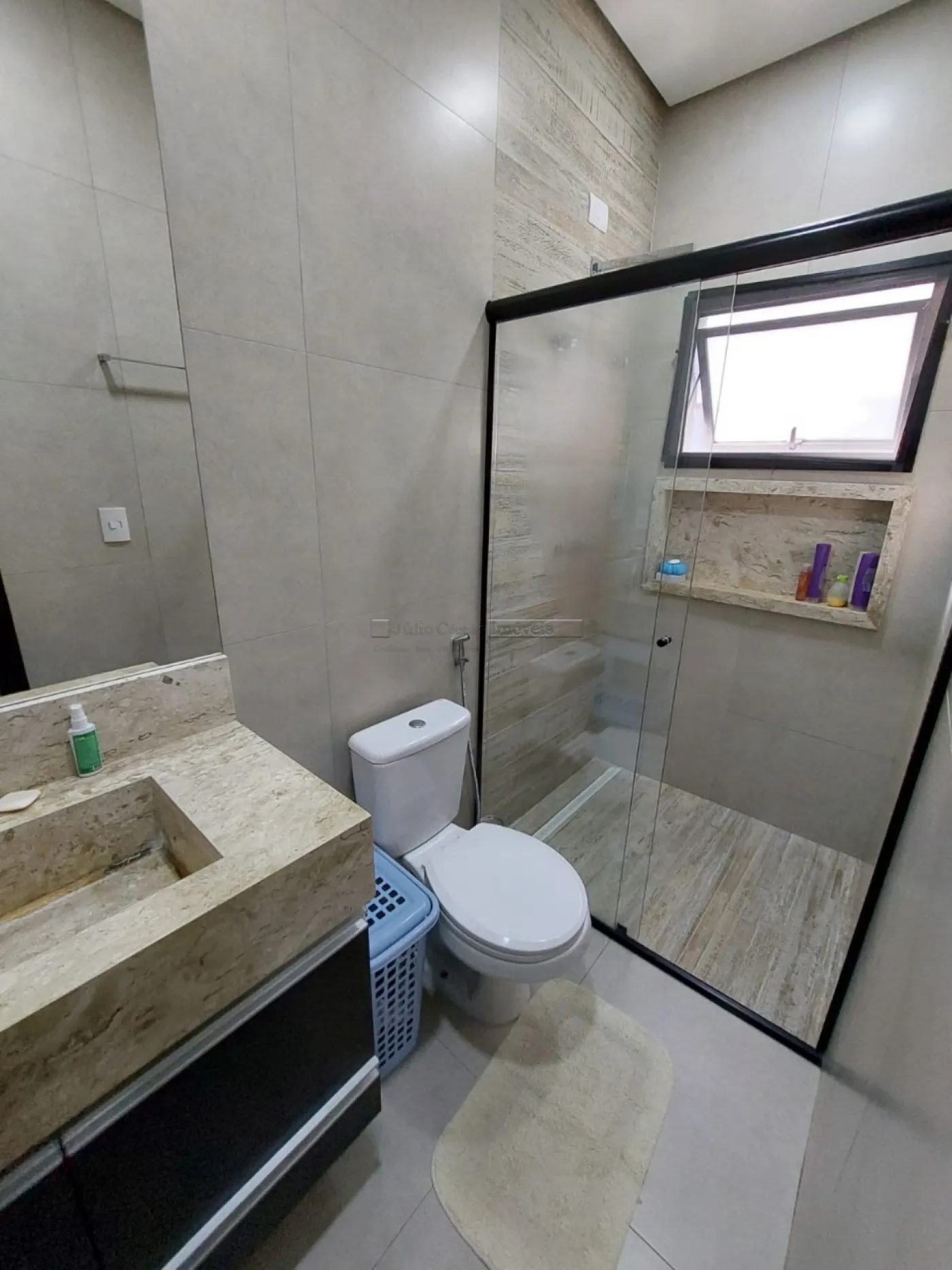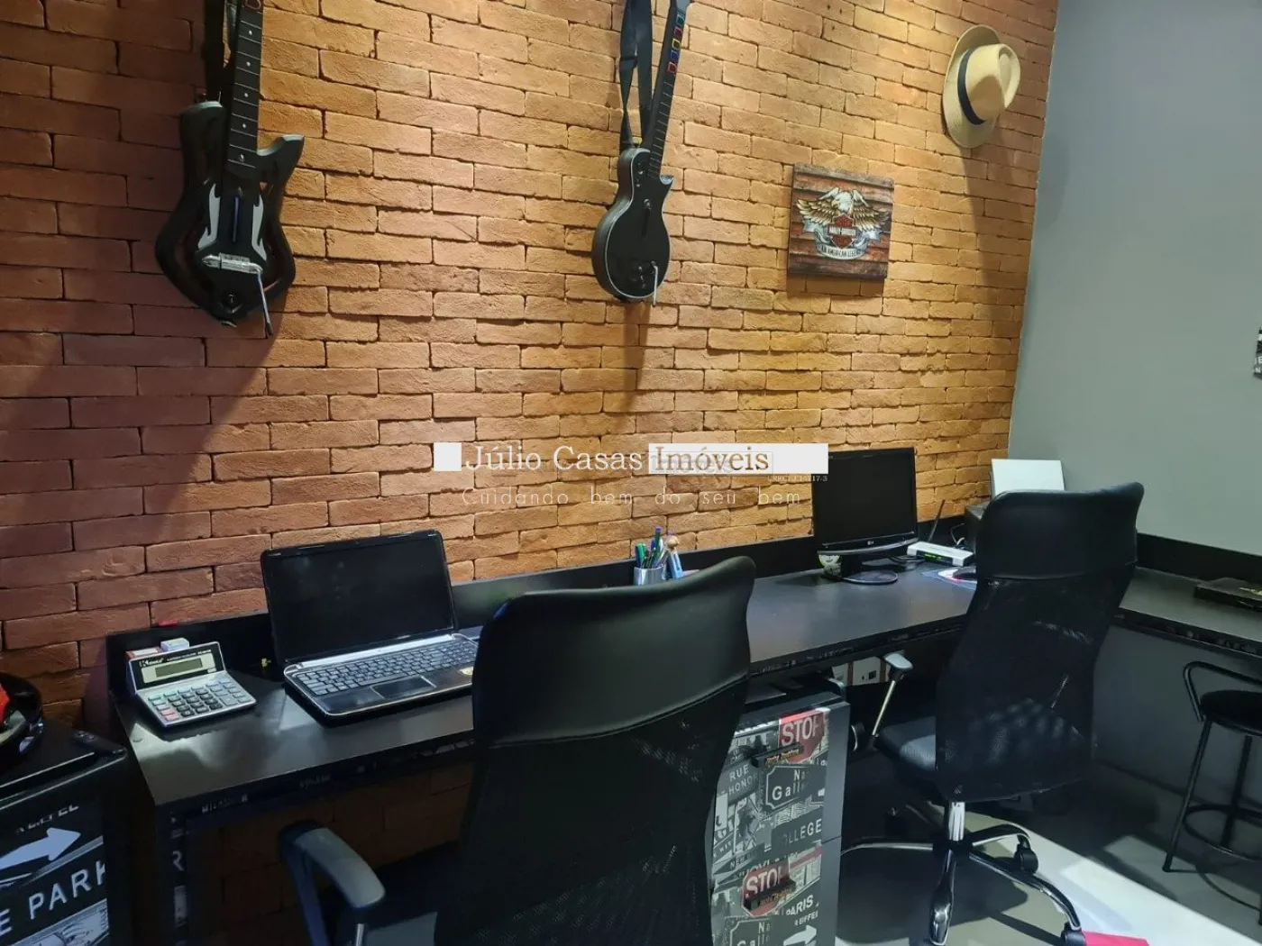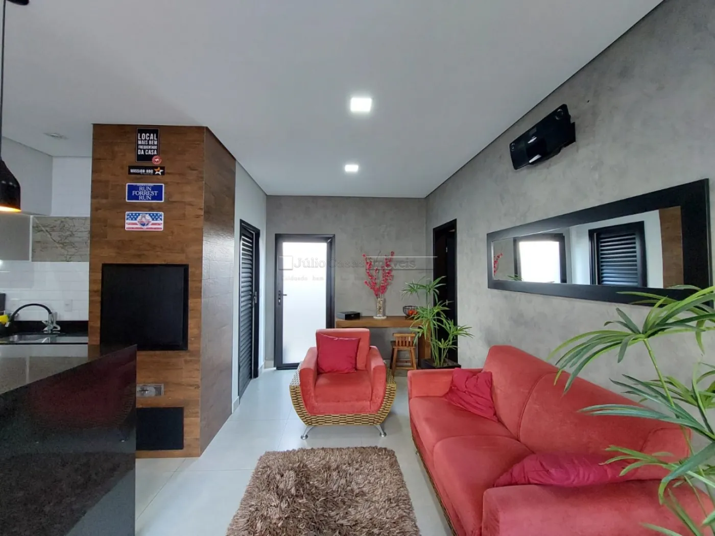 O imóvel possui um escritório modulado, perfeito para trabalho ou estudo, e três suítes, todas com móveis planejados, sendo uma delas uma suíte máster com closet. Para maior conforto, todos os dormitórios e o escritório estão equipados com ar condicionado. A casa é revestida com porcelanato de alta qualidade, possui sistema de aquecimento solar para torneiras e duchas, além de energia fotovoltaica, promovendo economia e sustentabilidade.