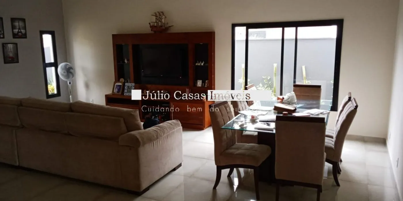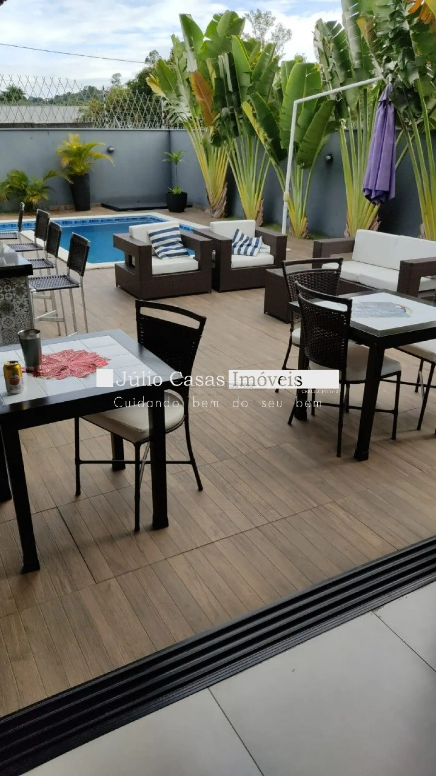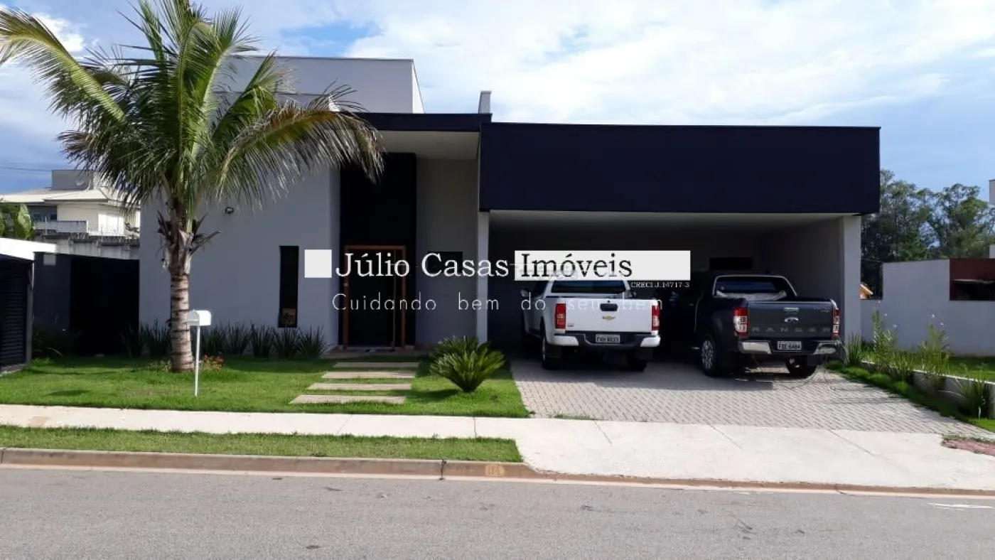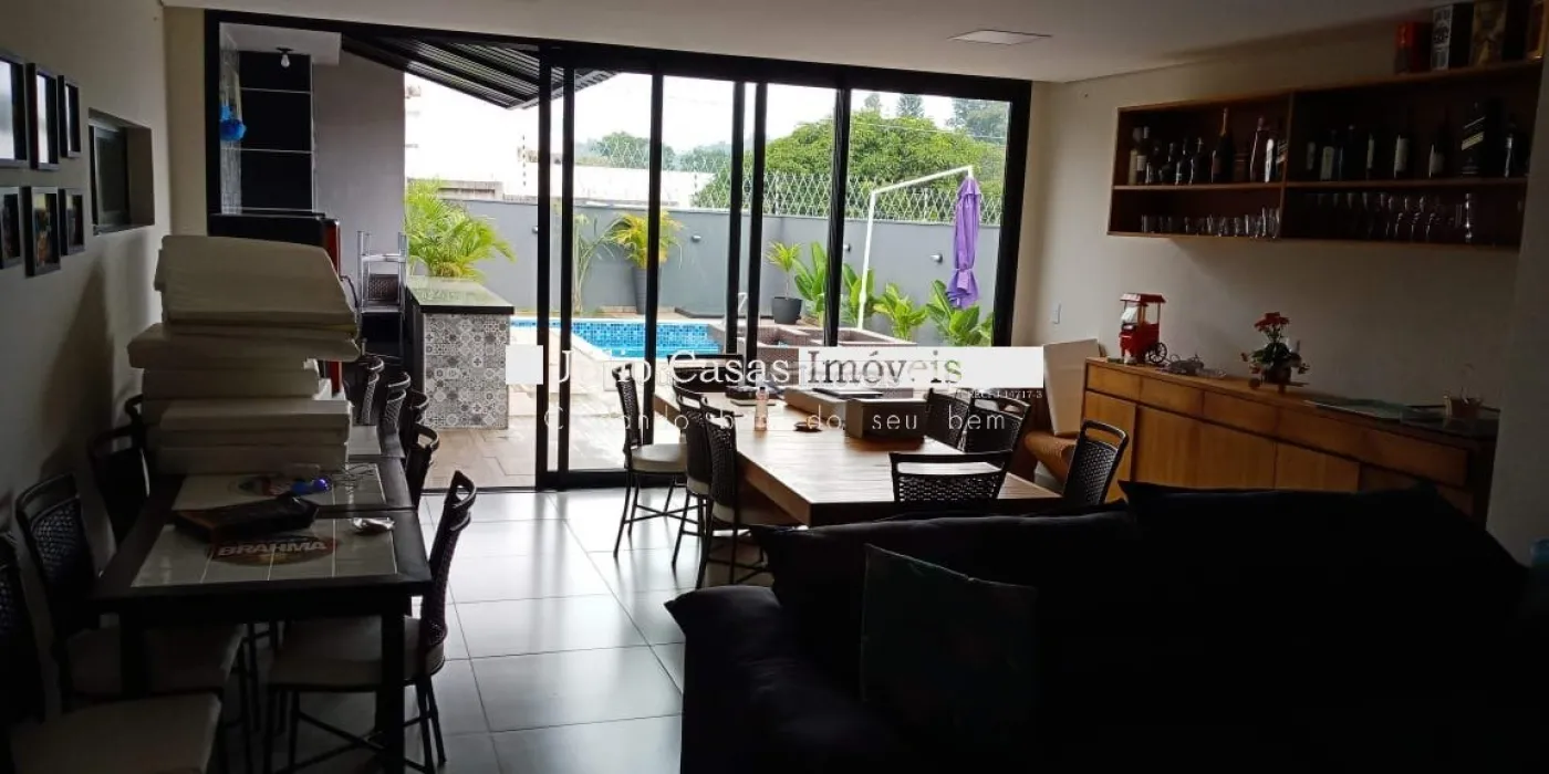 Casa térrea com sala 2 ambientes integrada com a área gourmet. lavabo, cozinha modulada e equipada, despensa, área de serviço, área gourmet com churrasqueira, pia de apoio, wc, piscina com praia, 3 suítes todas com closet.