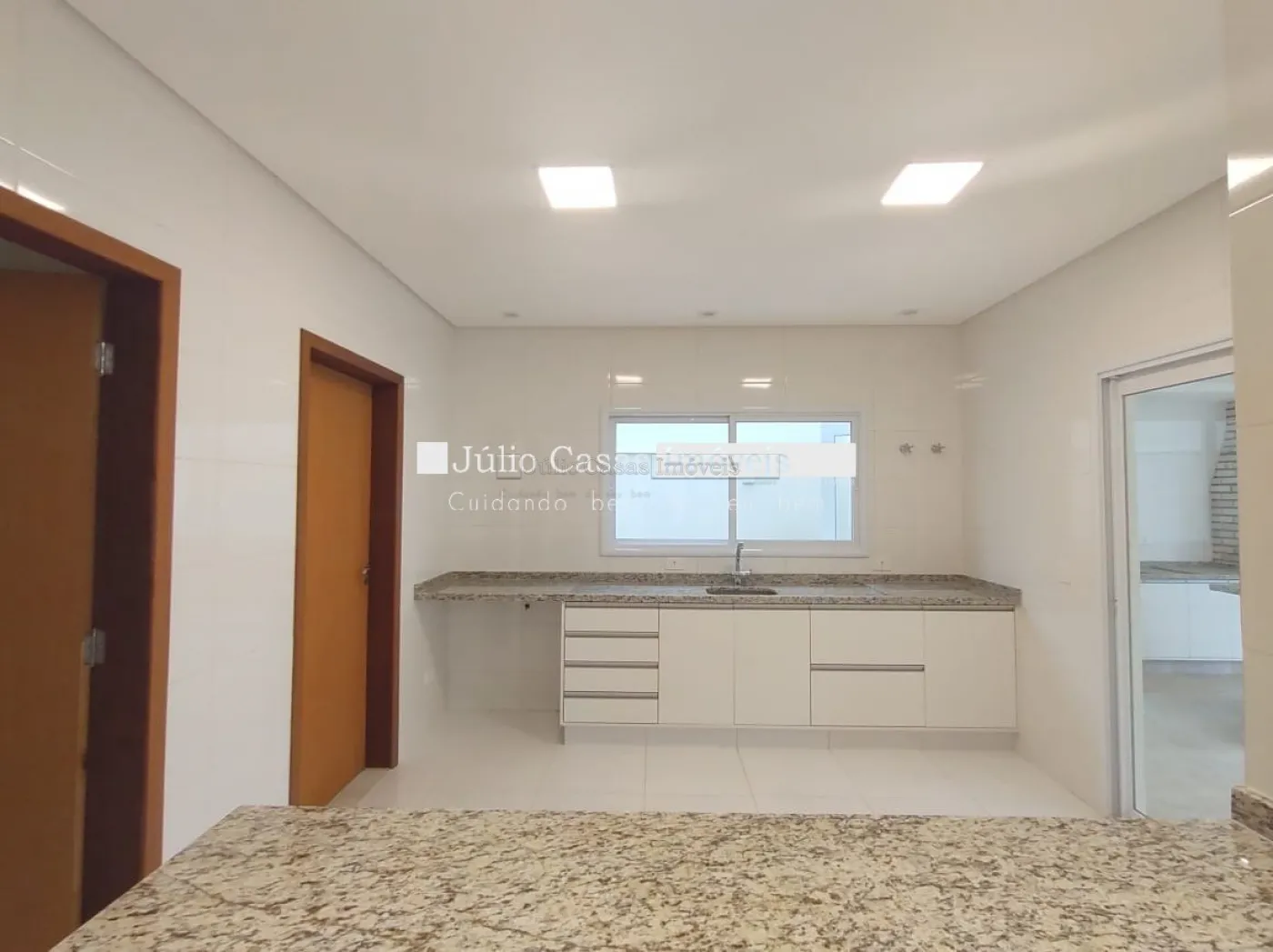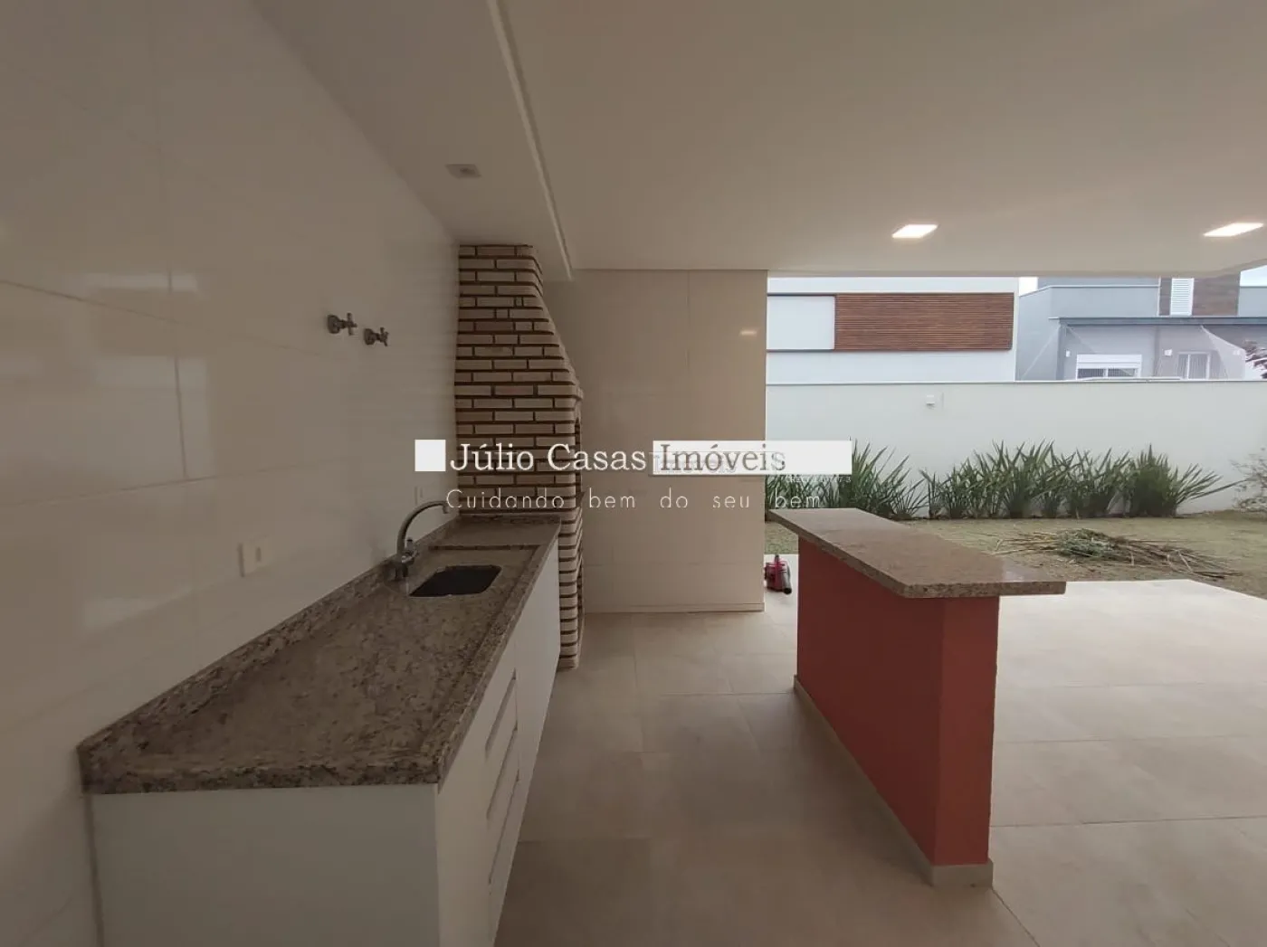 Linda casa com sala 2 ambientes, piso em porcelanato com sancas em gessos e luminárias embutidas, portas em alumínio branco , lavabo com pia mármore e gabinete sala integrada com a cozinha e área gourmet. Cozinha com bancada em granito, pia com gabinete, pisos e revestimentos em porcelanato, despensa, lavanderia ampla com despensa , área gourmet com churrasqueira e pia e wc de apoio. Escritório com possibilidade de usar como dormitório.