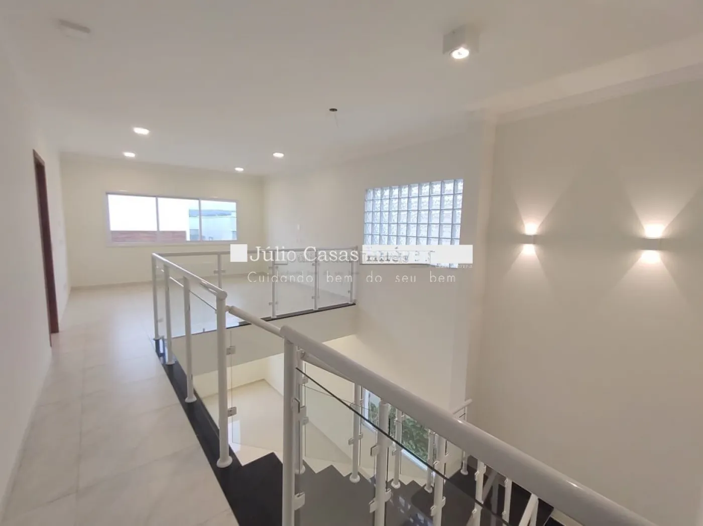 Escada em acabamento em mármore, sala íntima entre os dormitórios 3 suítes 1 sendo máster com hidro e closet 2 com varanda, preparação para ar condicionado, todas as persianas automatizadas e com mosqueteiro .aquecedor solar , garagem para 4 veículos sendo 2 cobertos.