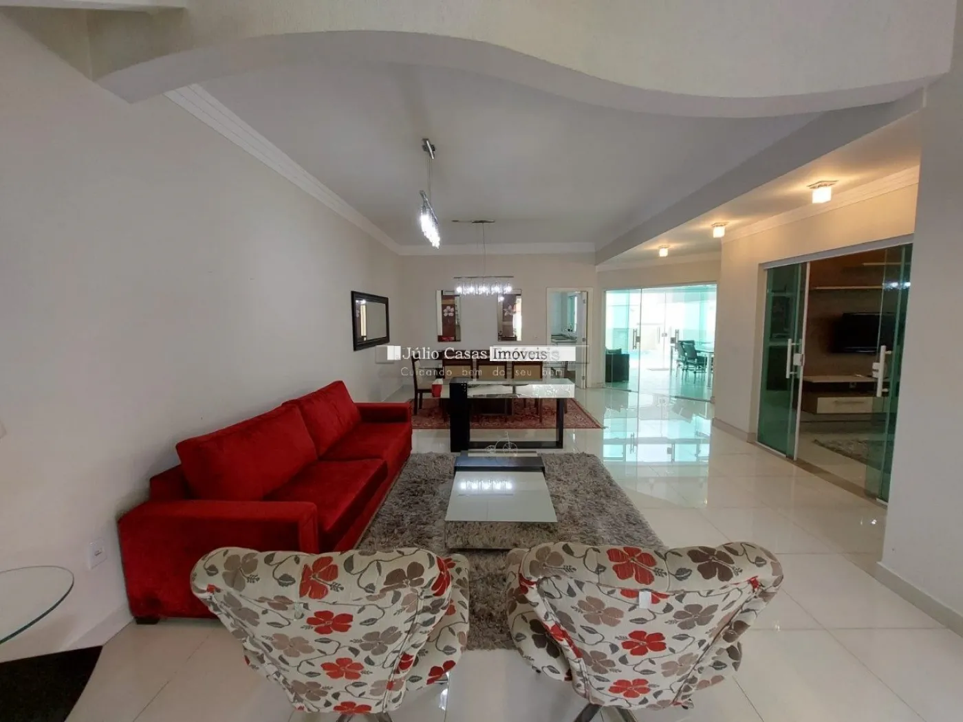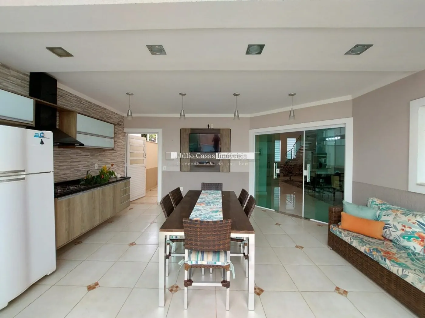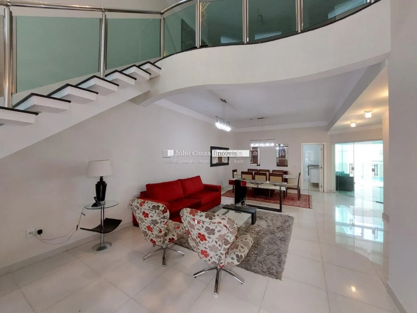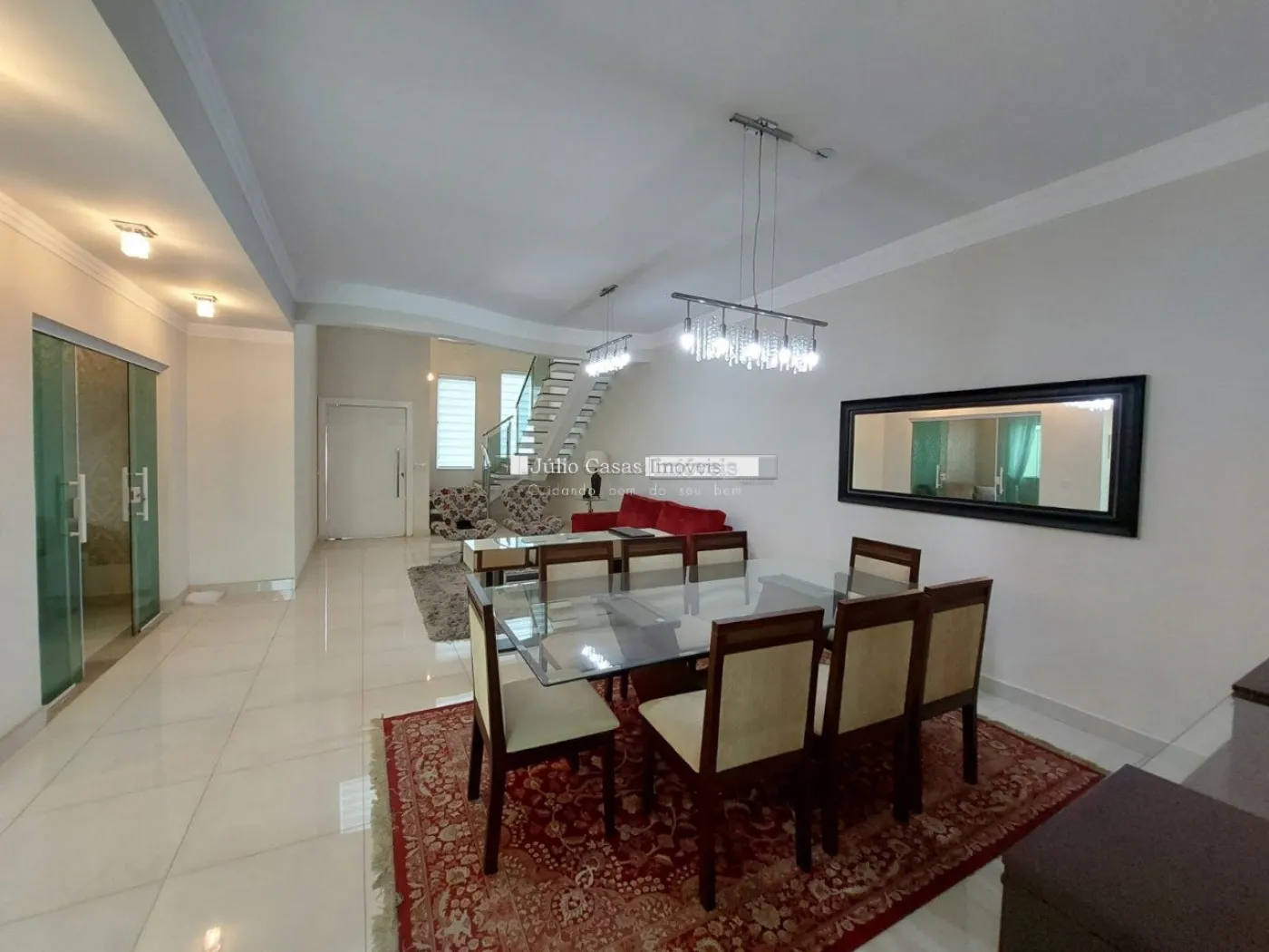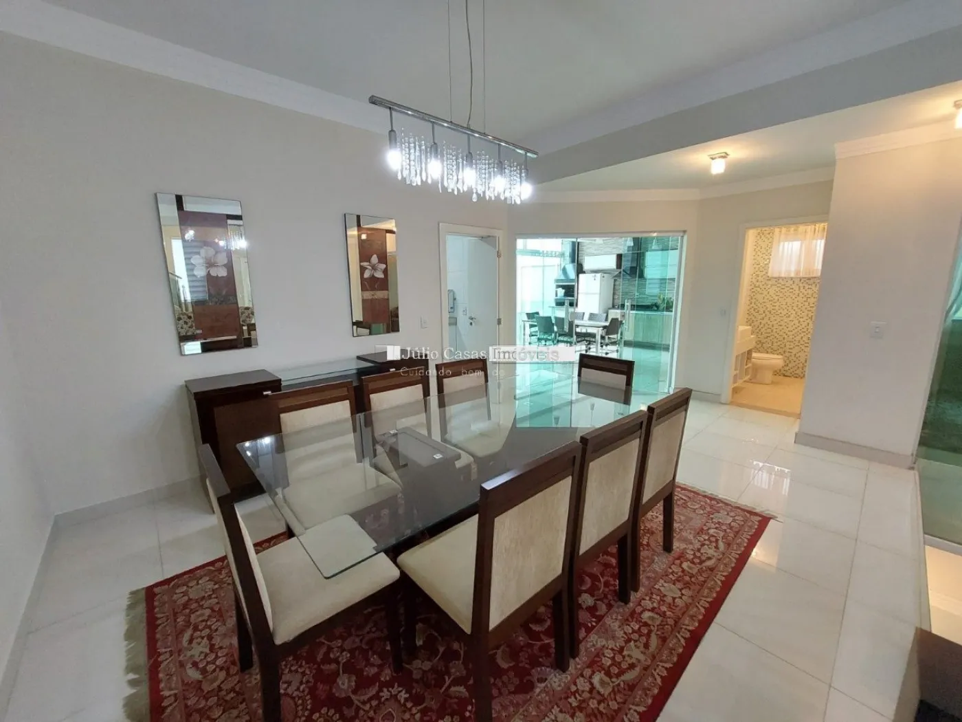 Casa estilo Sobrado mobiliado e modulado, terreno com 250m² e área construída de 268m², sala 2 ambientes em piso porcelanato, teto com acabamento em gessos e luminárias, sala de tv com modulado, cozinha ampla integrada com a área gourmet. Piscina, churrasqueira com coifa pia de apoio , quintal, lavabo.