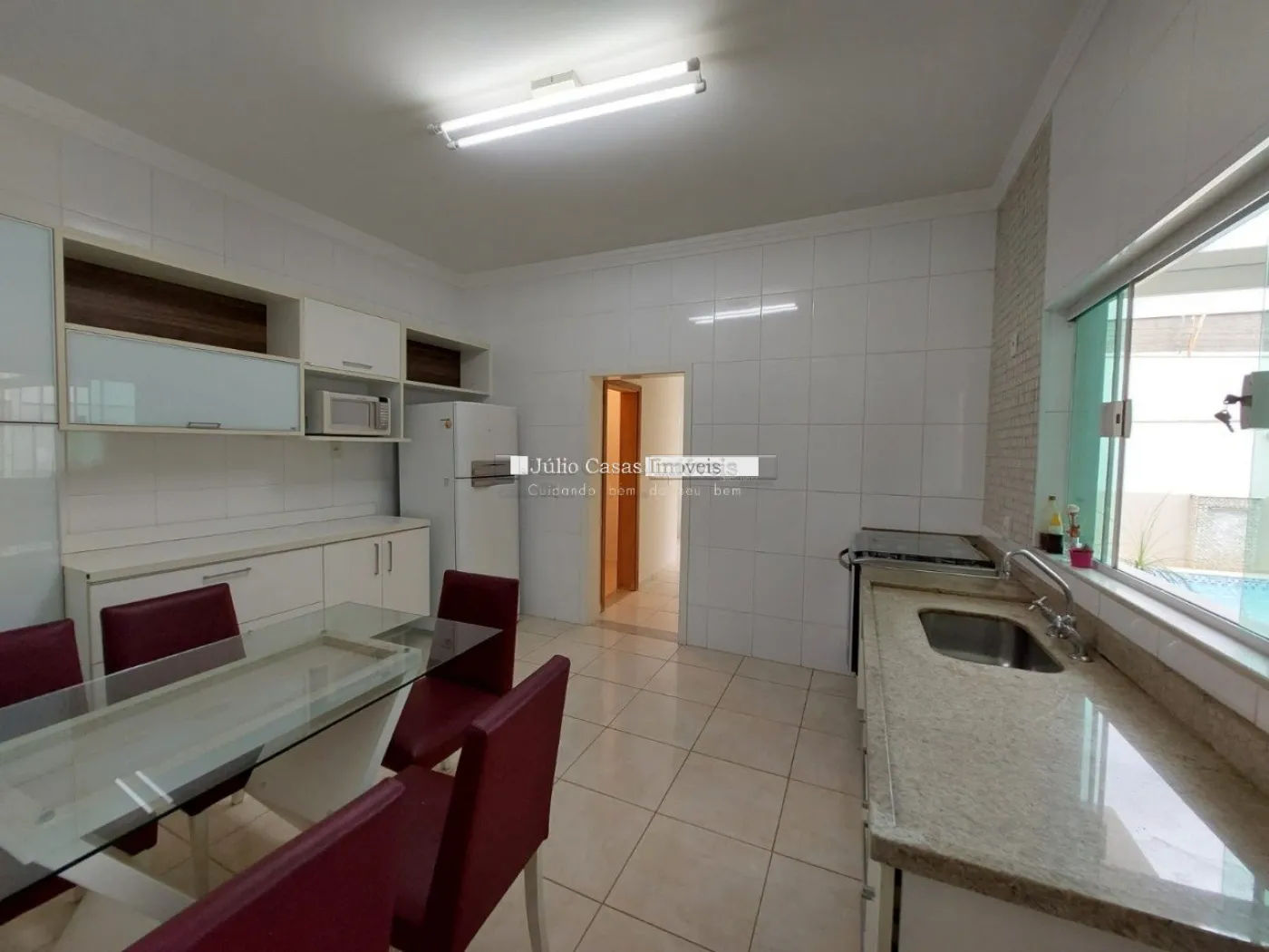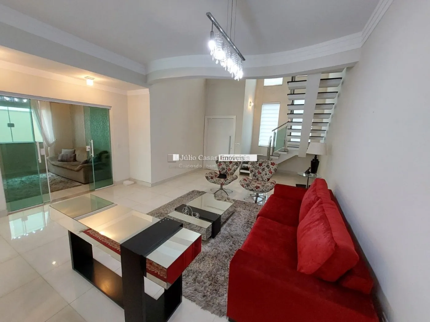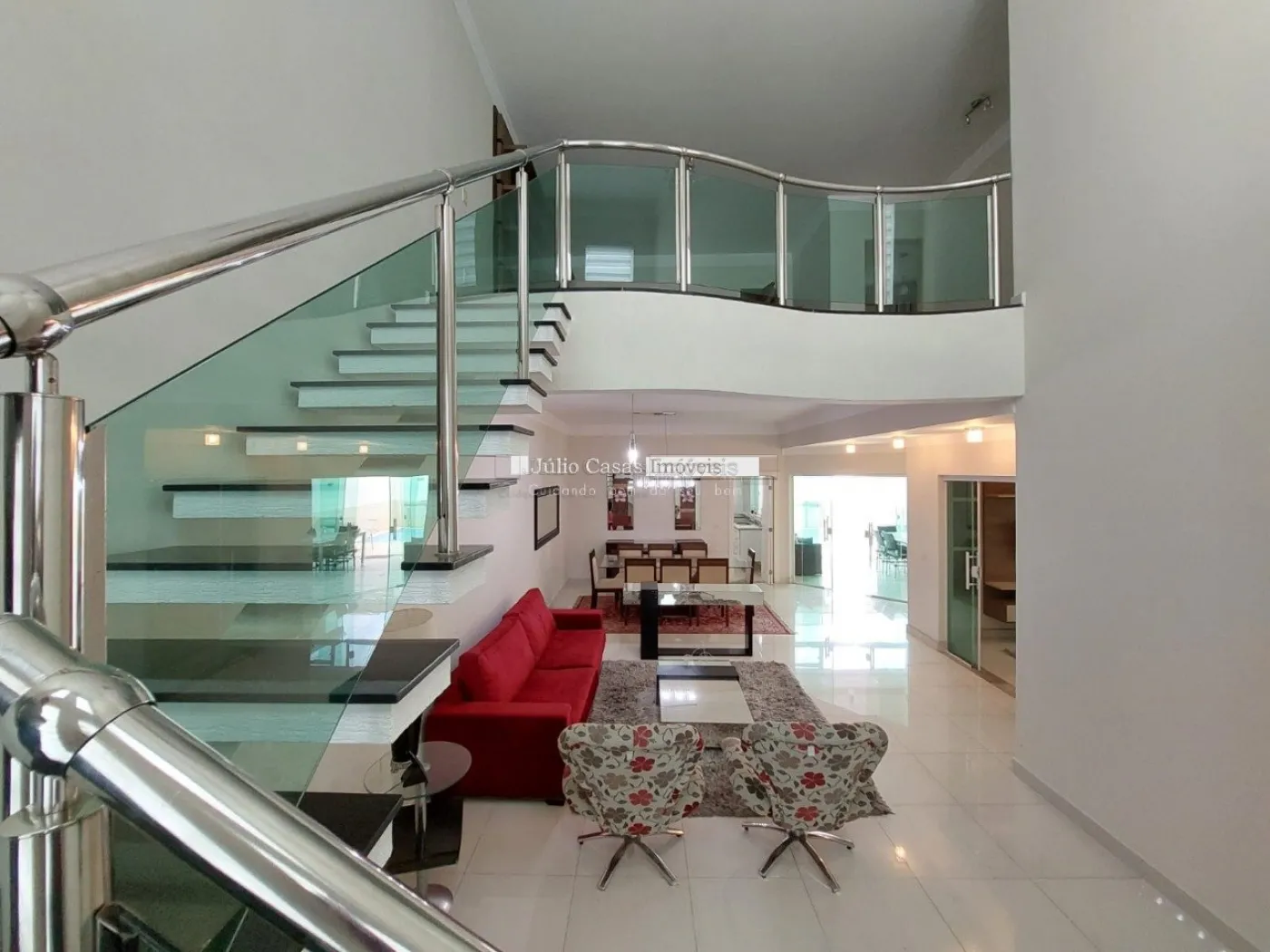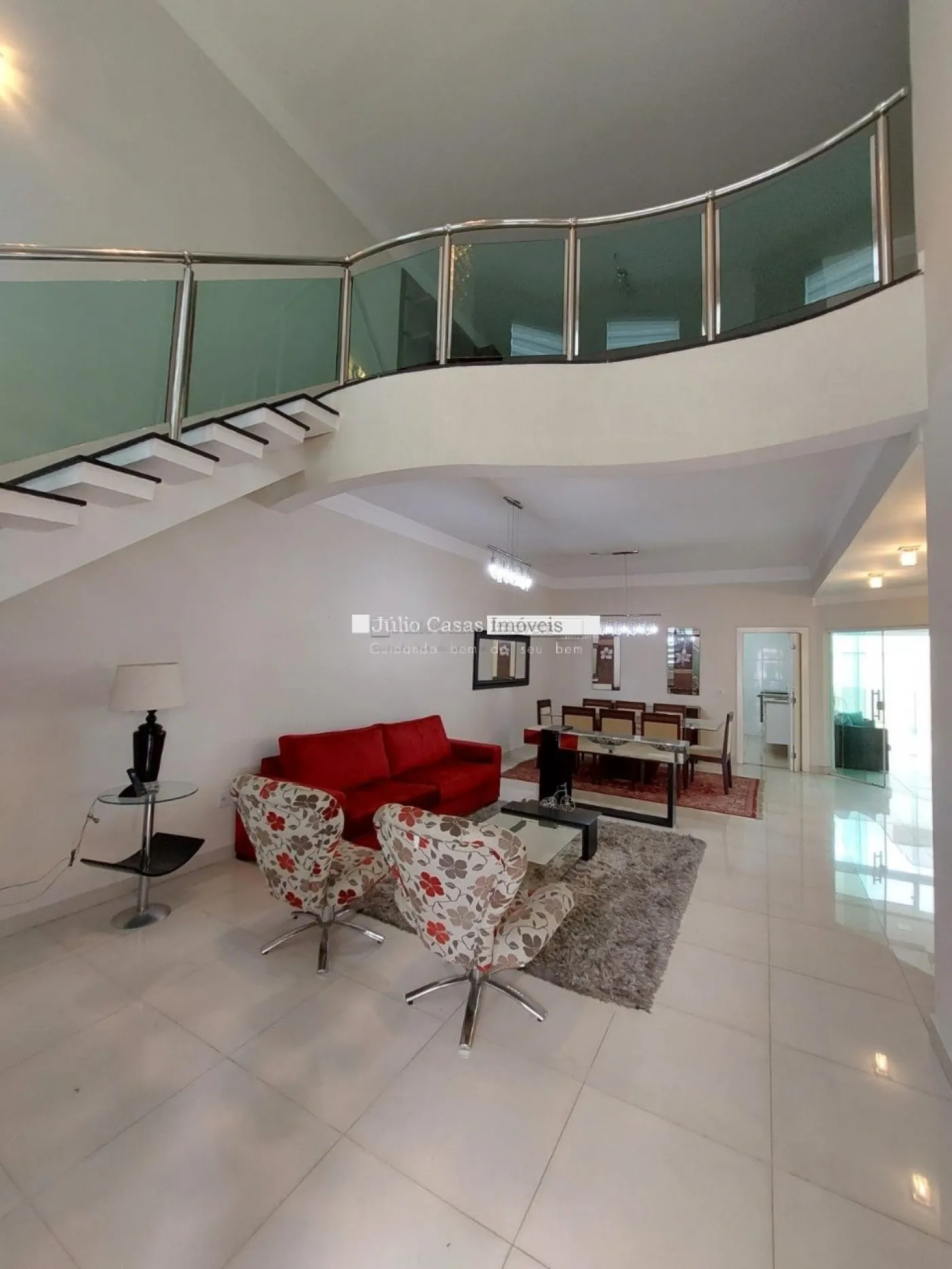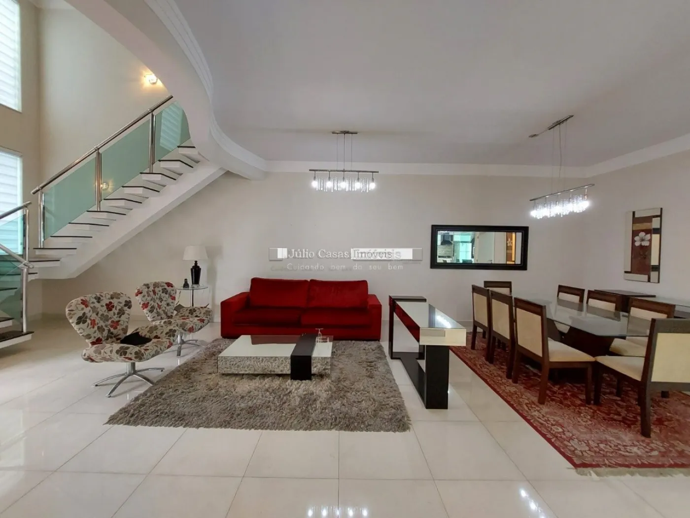 Casa estilo Sobrado mobiliado e modulado, terreno com 250m² e área construída de 268m², sala 2 ambientes em piso porcelanato, teto com acabamento em gessos e luminárias, sala de tv com modulado, cozinha ampla integrada com a área gourmet. Piscina, churrasqueira com coifa pia de apoio , quintal, lavabo.