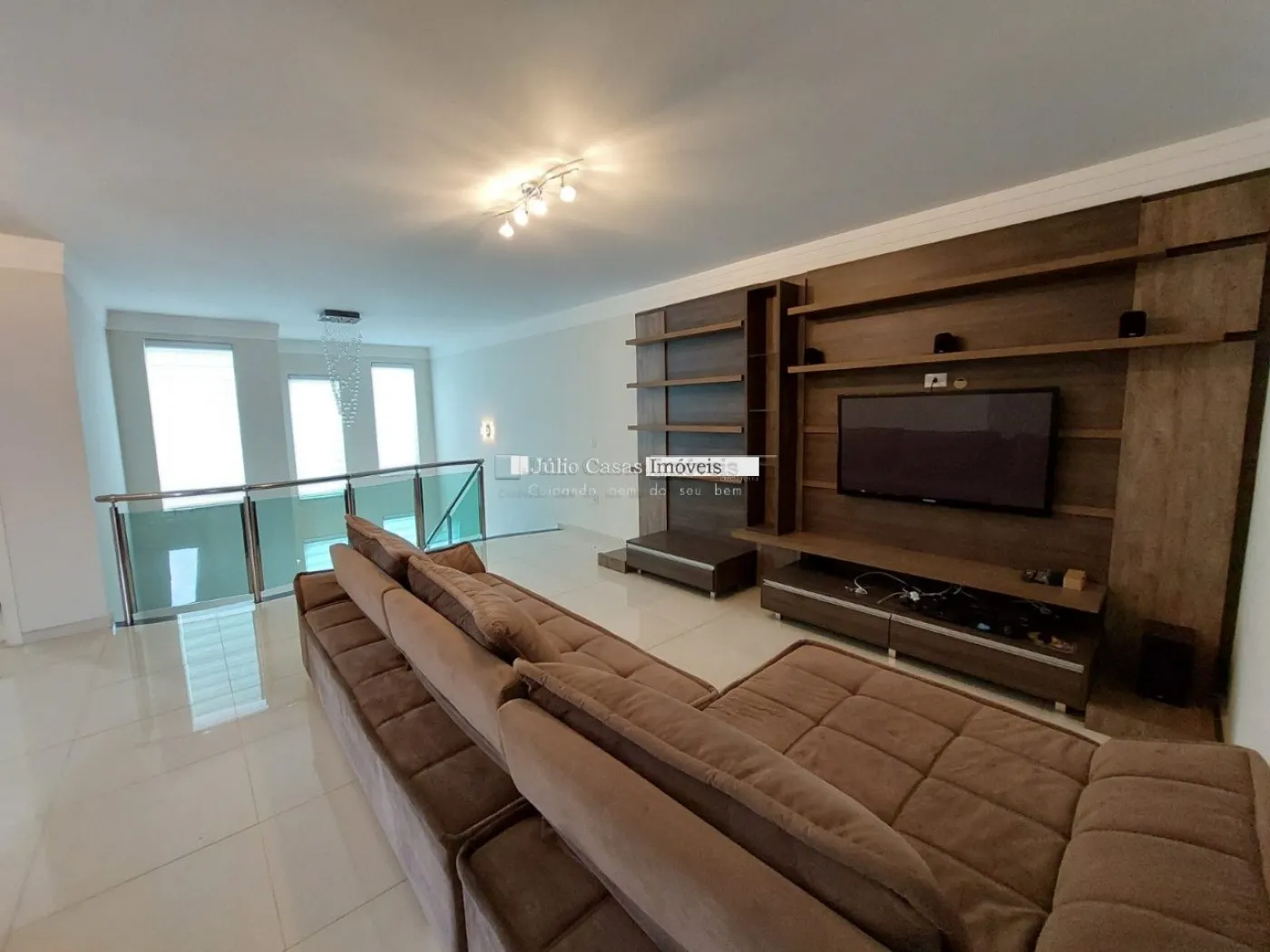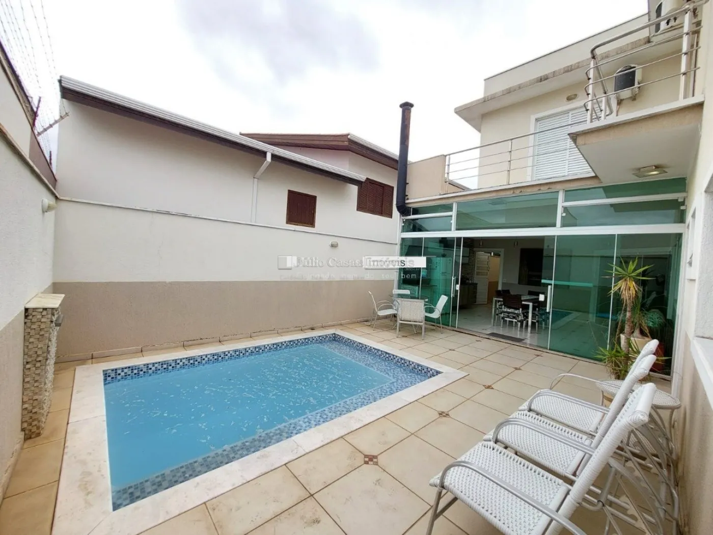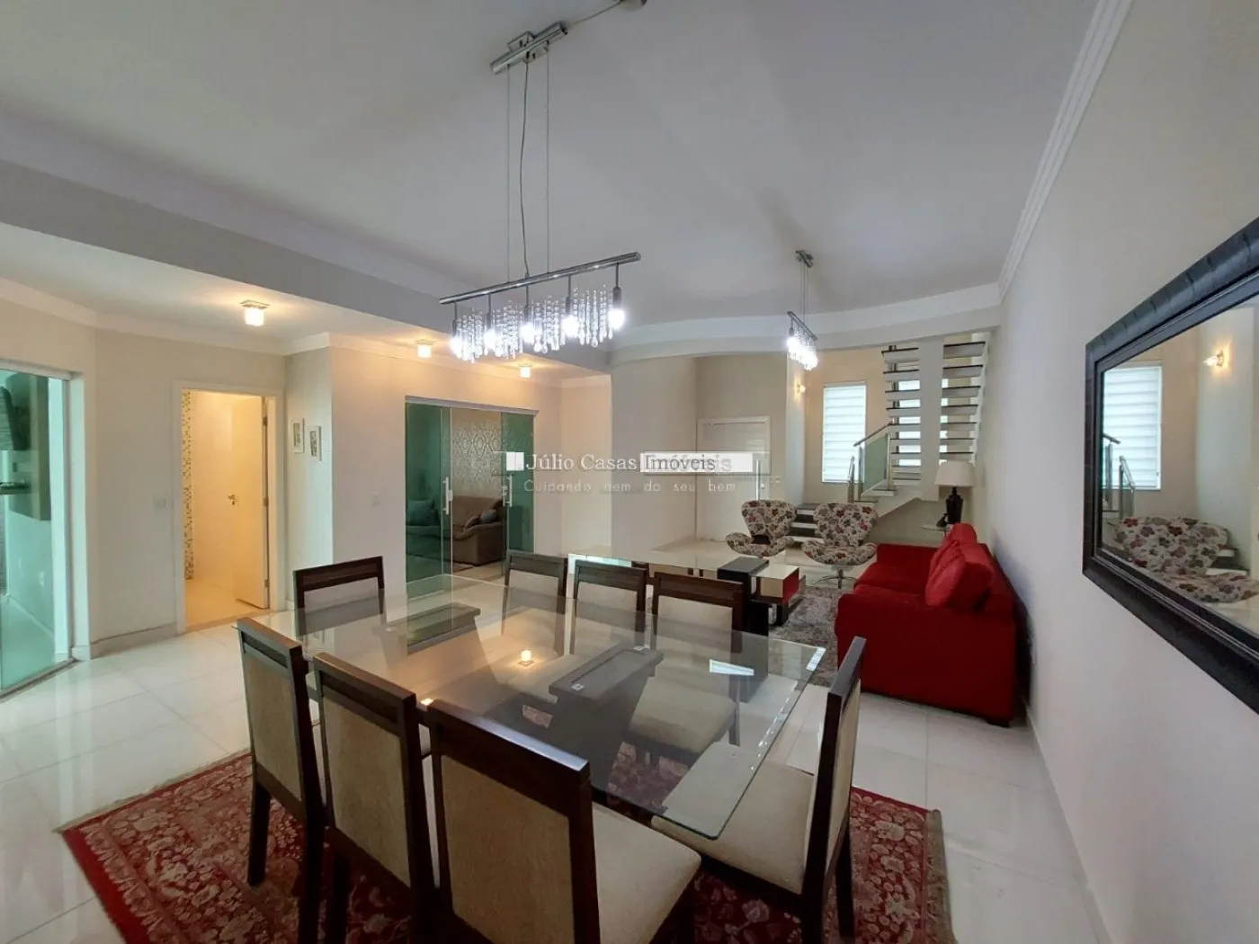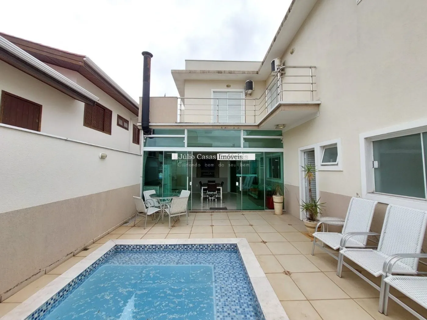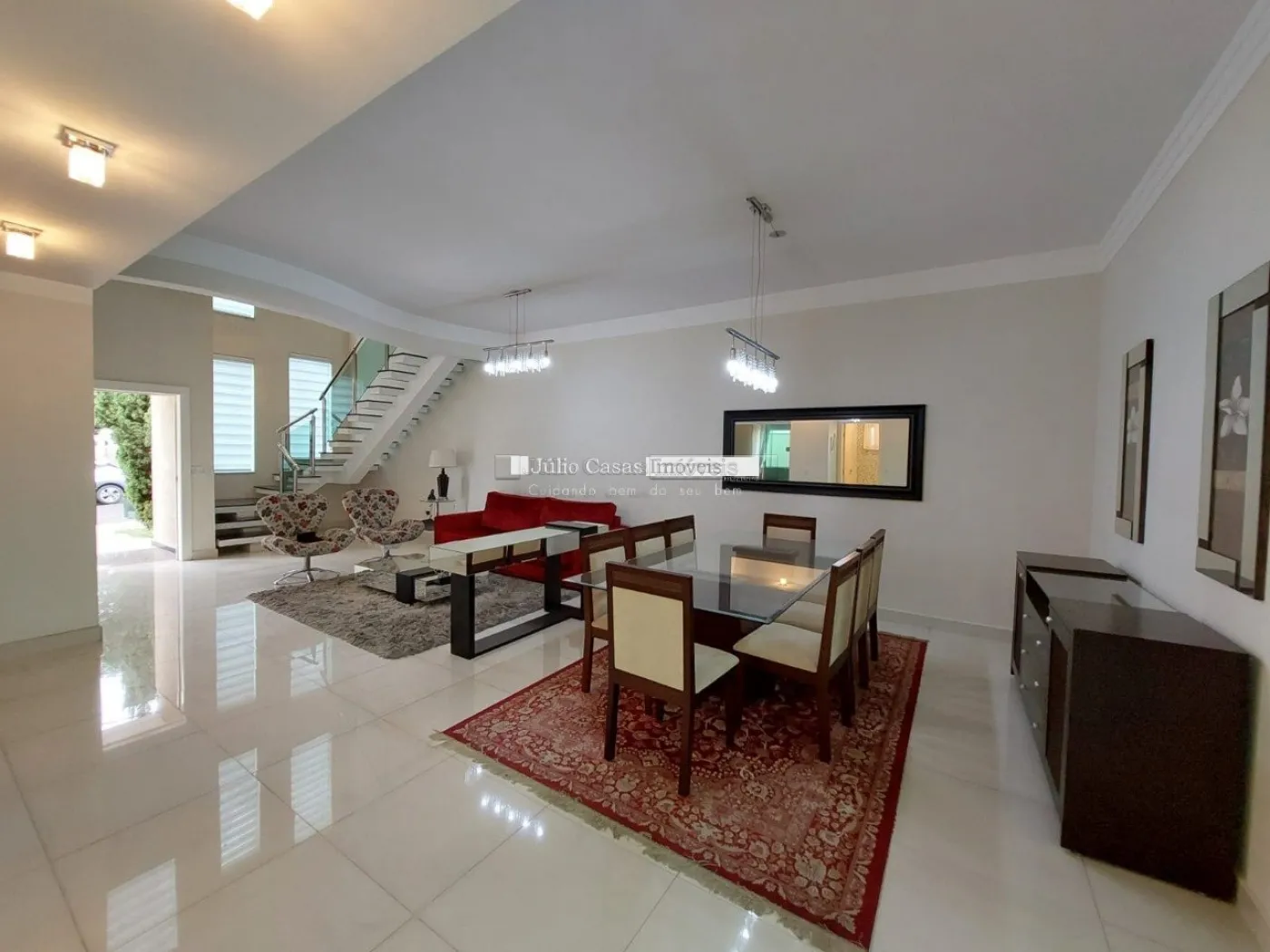 Casa estilo Sobrado mobiliado e modulado, terreno com 250m² e área construída de 268m², sala 2 ambientes em piso porcelanato, teto com acabamento em gessos e luminárias, sala de tv com modulado, cozinha ampla integrada com a área gourmet. Piscina, churrasqueira com coifa pia de apoio , quintal, lavabo.