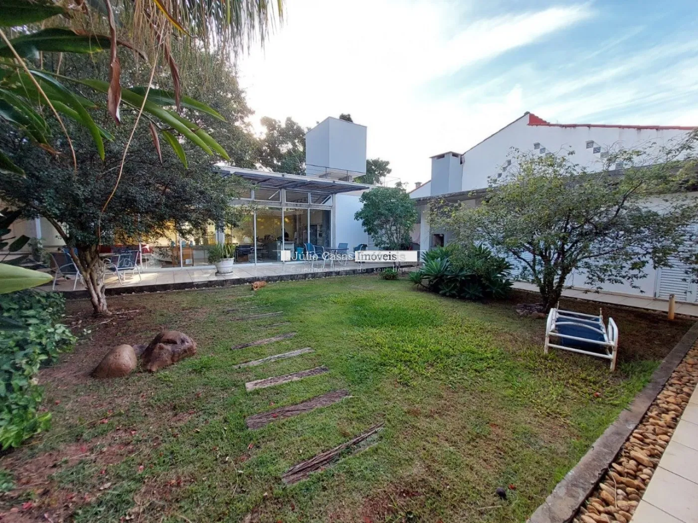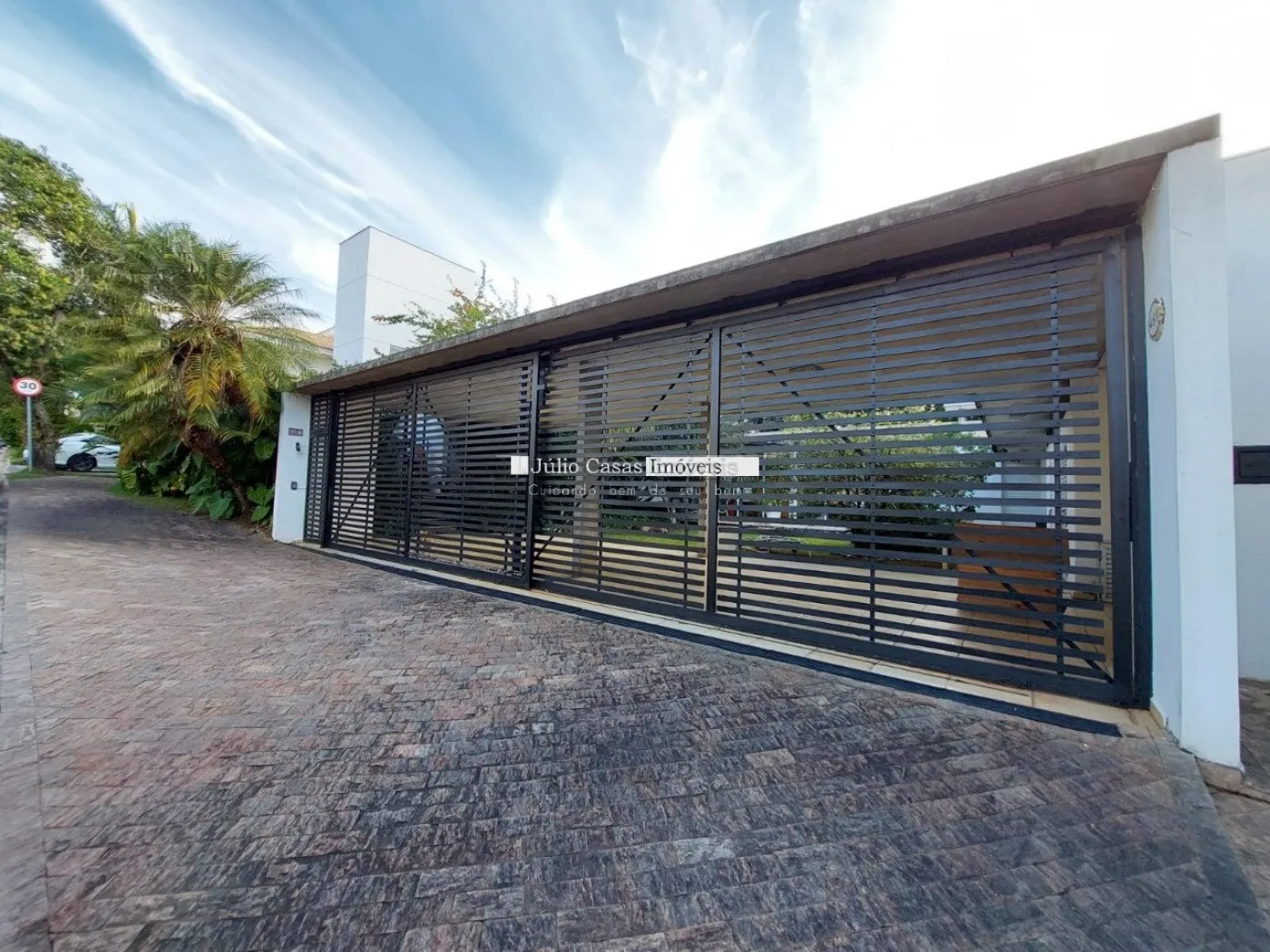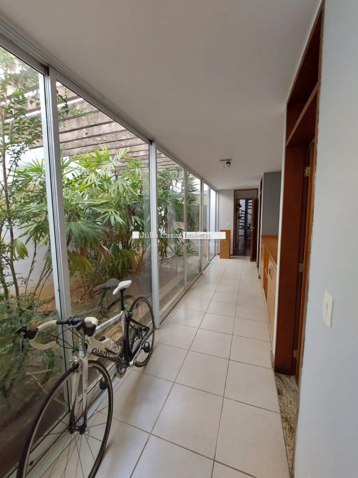 Sala 2 ambientes , lavabo, cozinha integrada com a sala, área de serviço com armários, mezanino com sala de tv, escritório e ampla suíte máster com varanda grande, 3 suítes no térreo todas em piso madeira, sala íntima, área gourmet com pia e churrasqueira, casa fundo para praça com linda vista e paisagismo, casa construída em dois lotes, Garagem para 4 veículos cobertos.