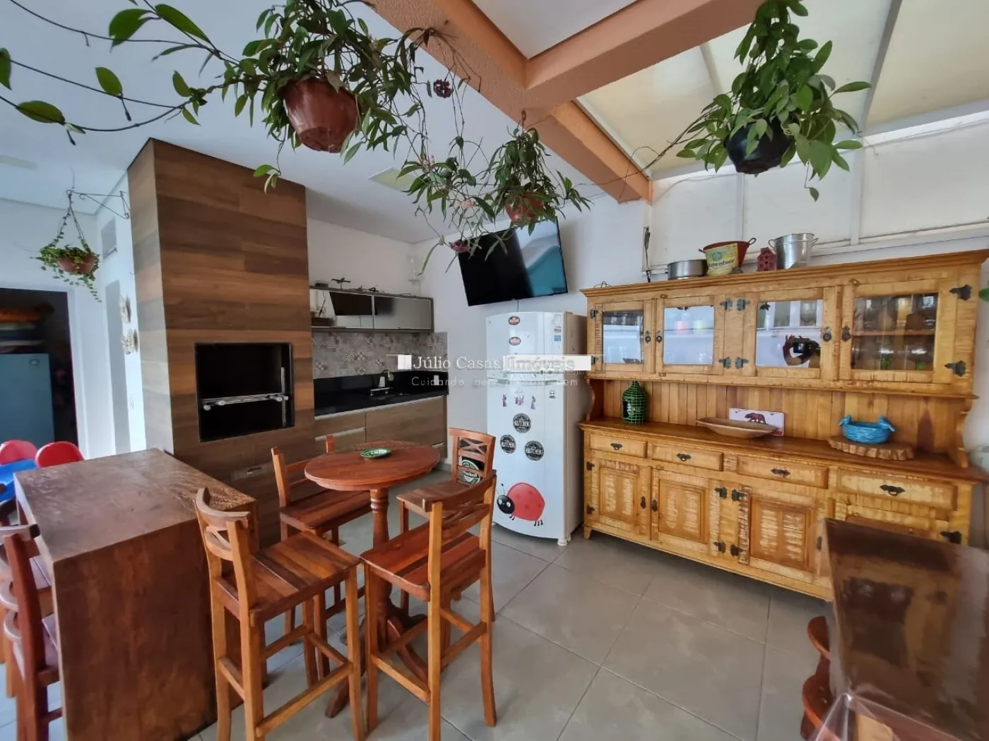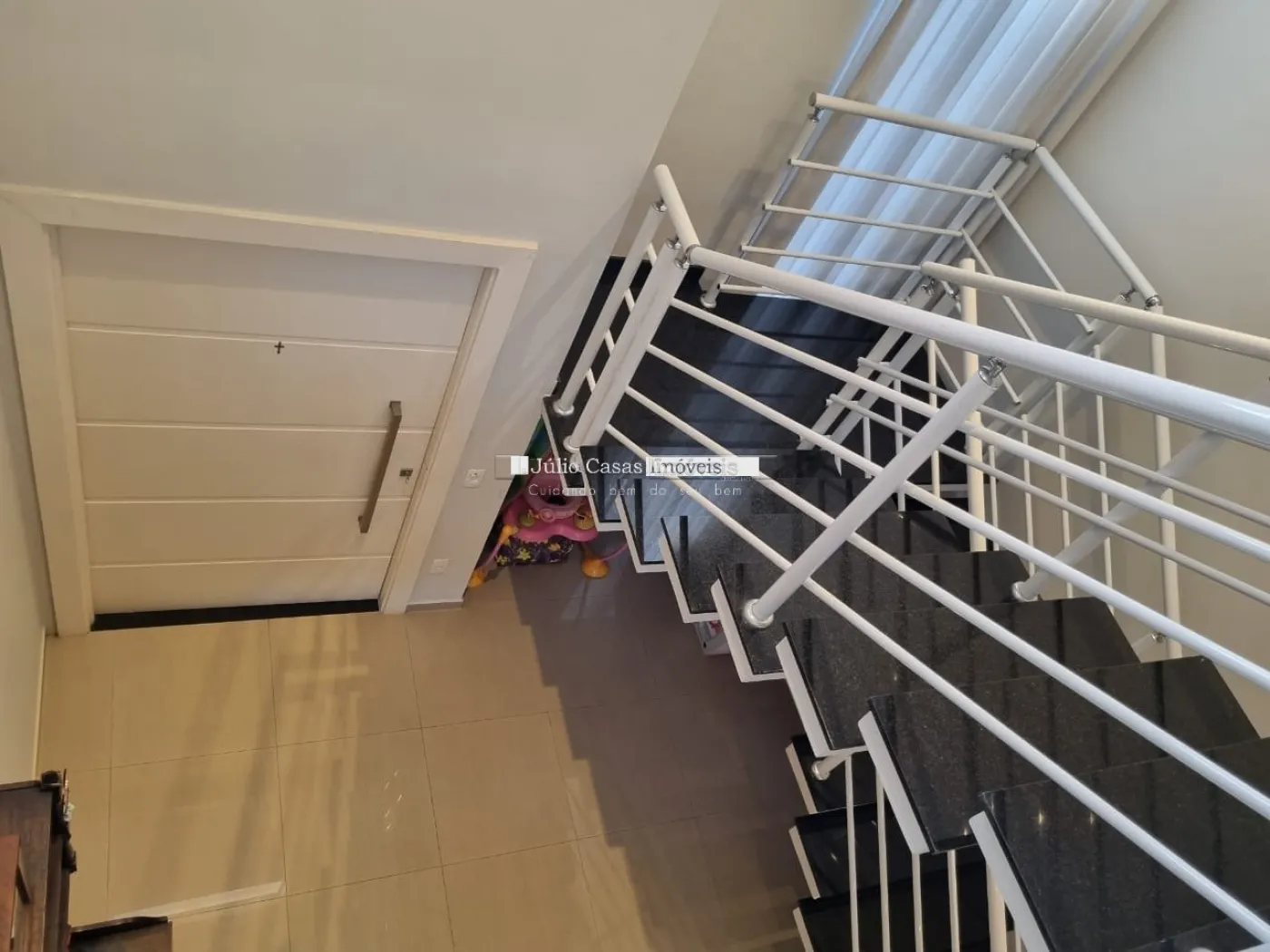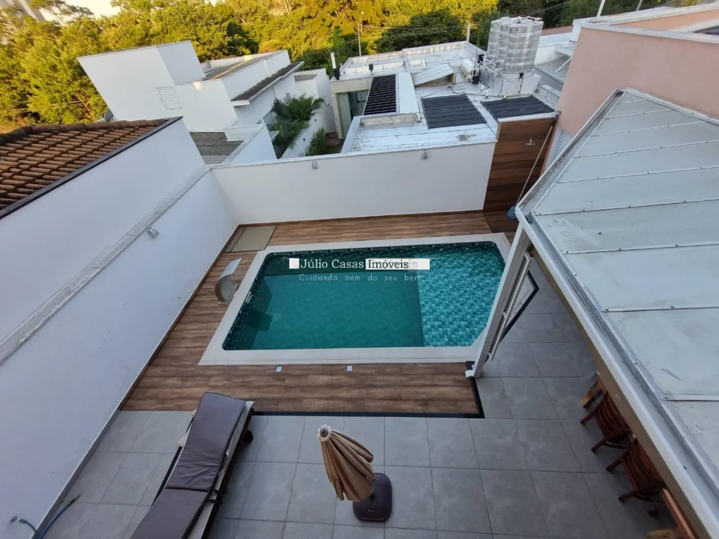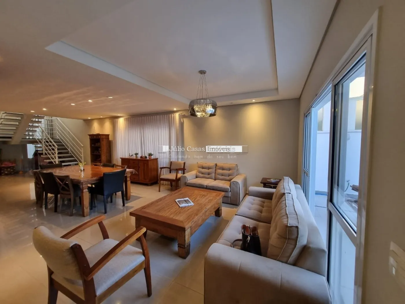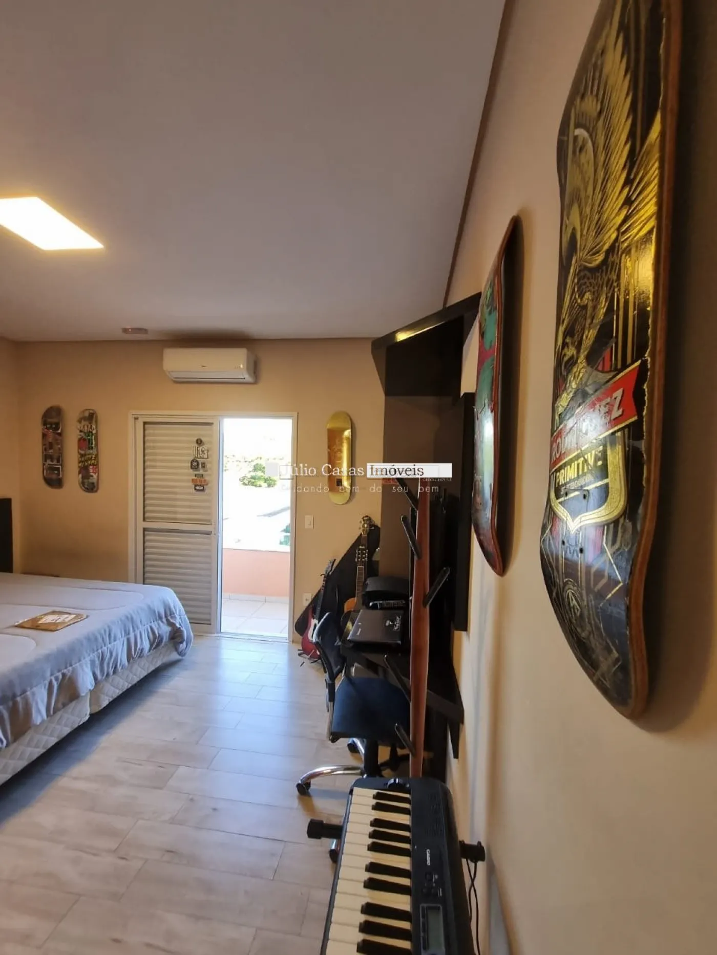 Sala com 2 ambientes em piso porcelanato e sancas em gesso, lavabo com pia e cuba sobreposta, cozinha modulada com coifa em inox, integrada com a área gourmet com pia e churrasqueira. Piscina aquecida, entrada de serviço independente, banheiro para piscina, sala de TV e escritório que pode ser revertido para suíte térrea, amplo hall entre os dormitórios.