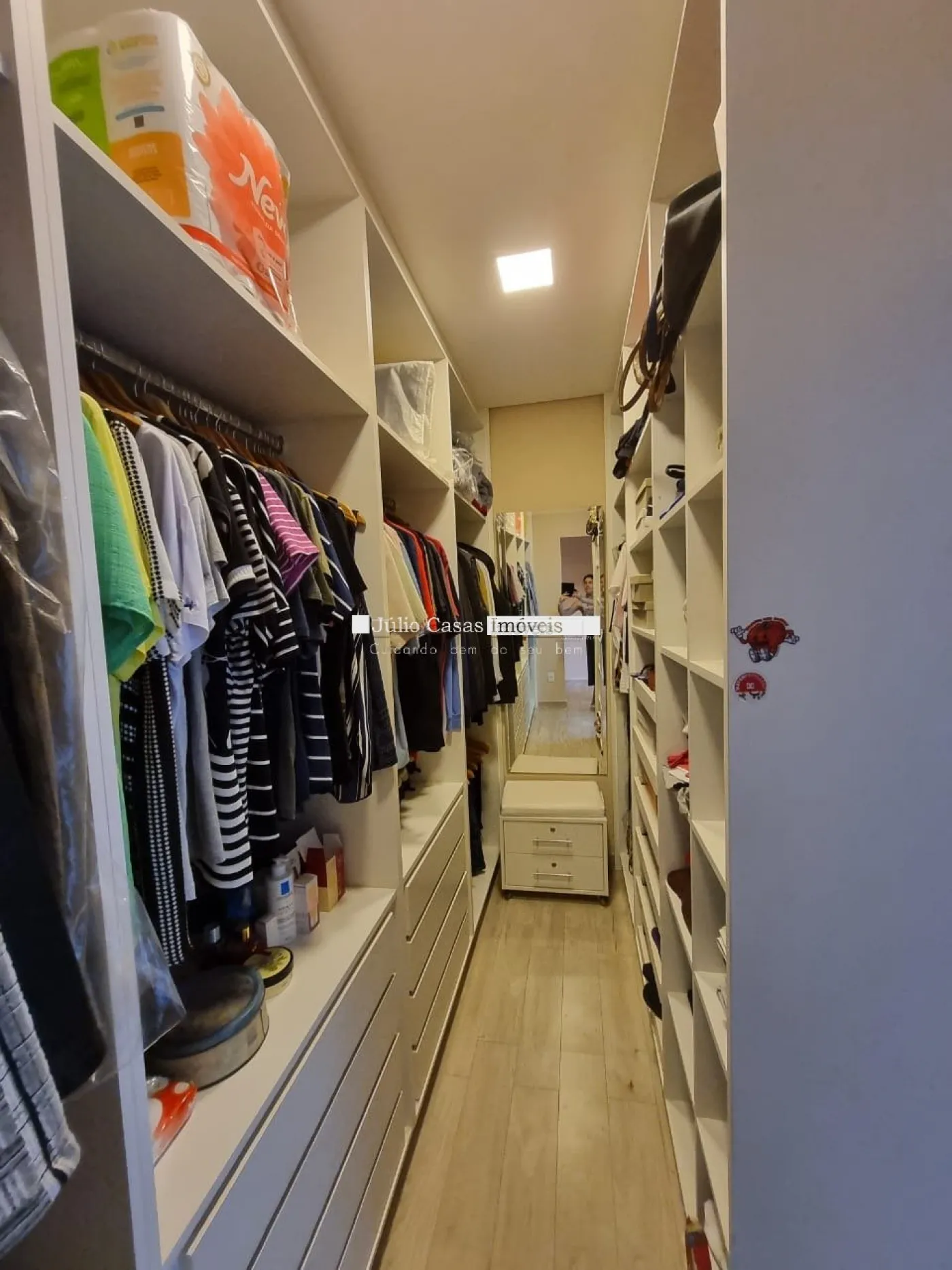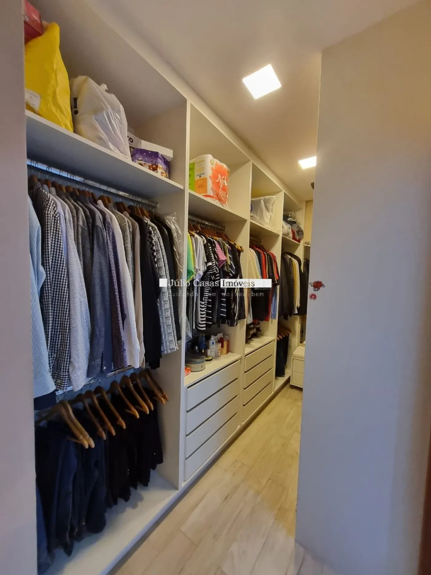 Possui 3 suítes amplas, sendo 1 máster com closet e hidromassagem, todas com varanda e modulados. Os quartos têm piso porcelanato e aquecimento em todos os banheiros, cozinha e piscina. Conta com 4 vagas de garagem, sendo 2 cobertas.