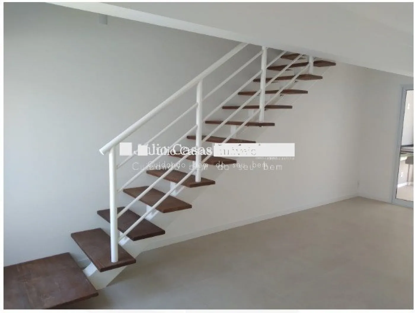 No piso superior três confortáveis dormitórios com piso revestido em laminado de madeira, teto com detalhe em gesso,1 sendo suíte máster com pequena sacada,