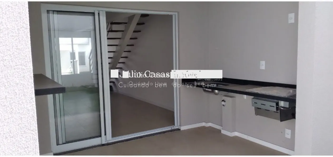 Área gourmet integrada a cozinha, com churrasqueira a gás, pia em granito e cuba de inox, pequeno quintal com entrada de serviço