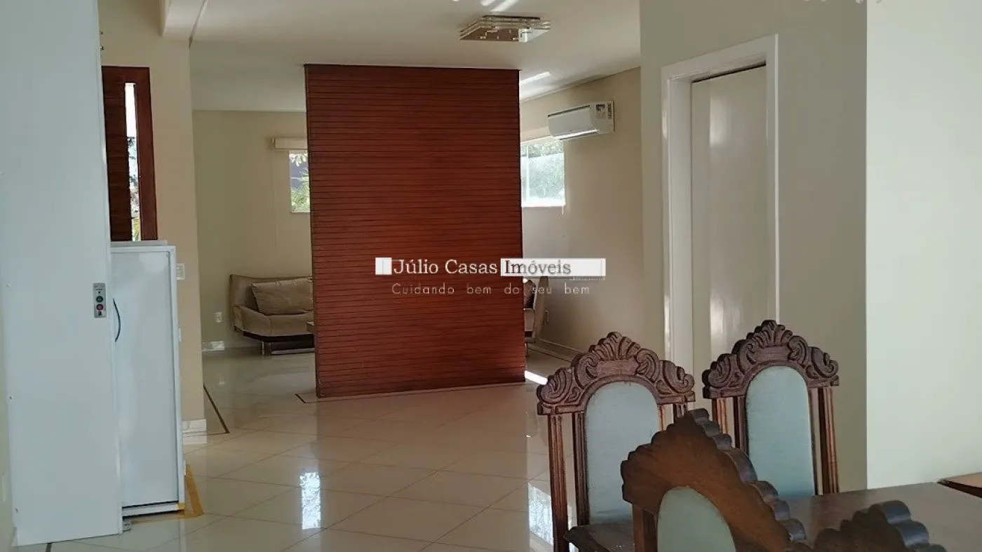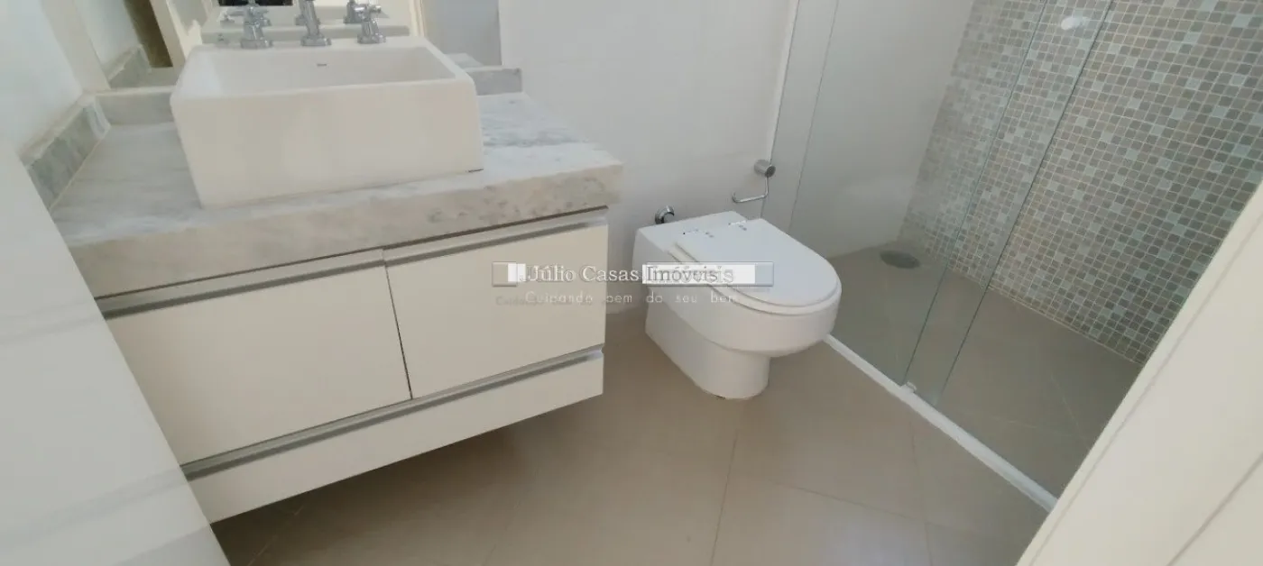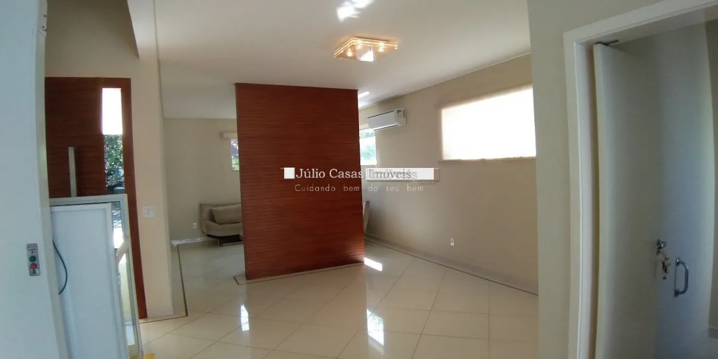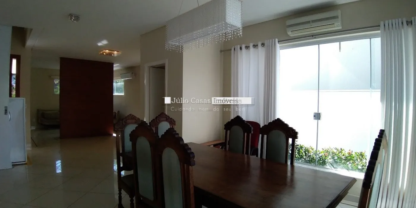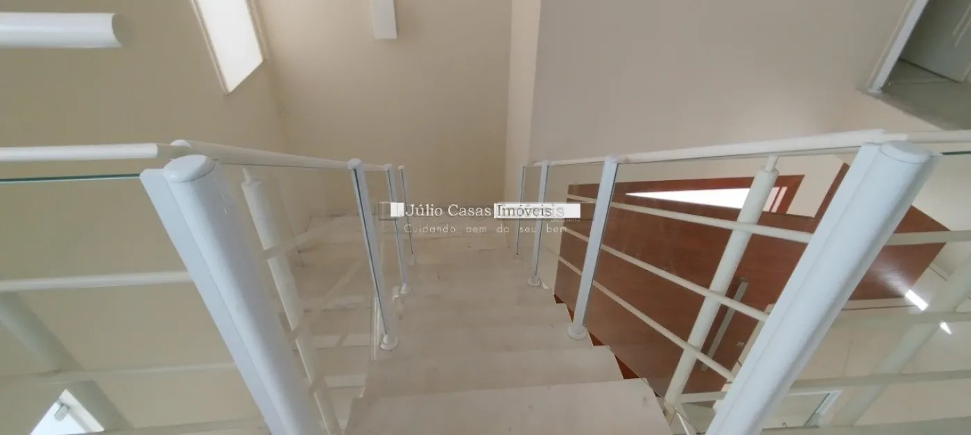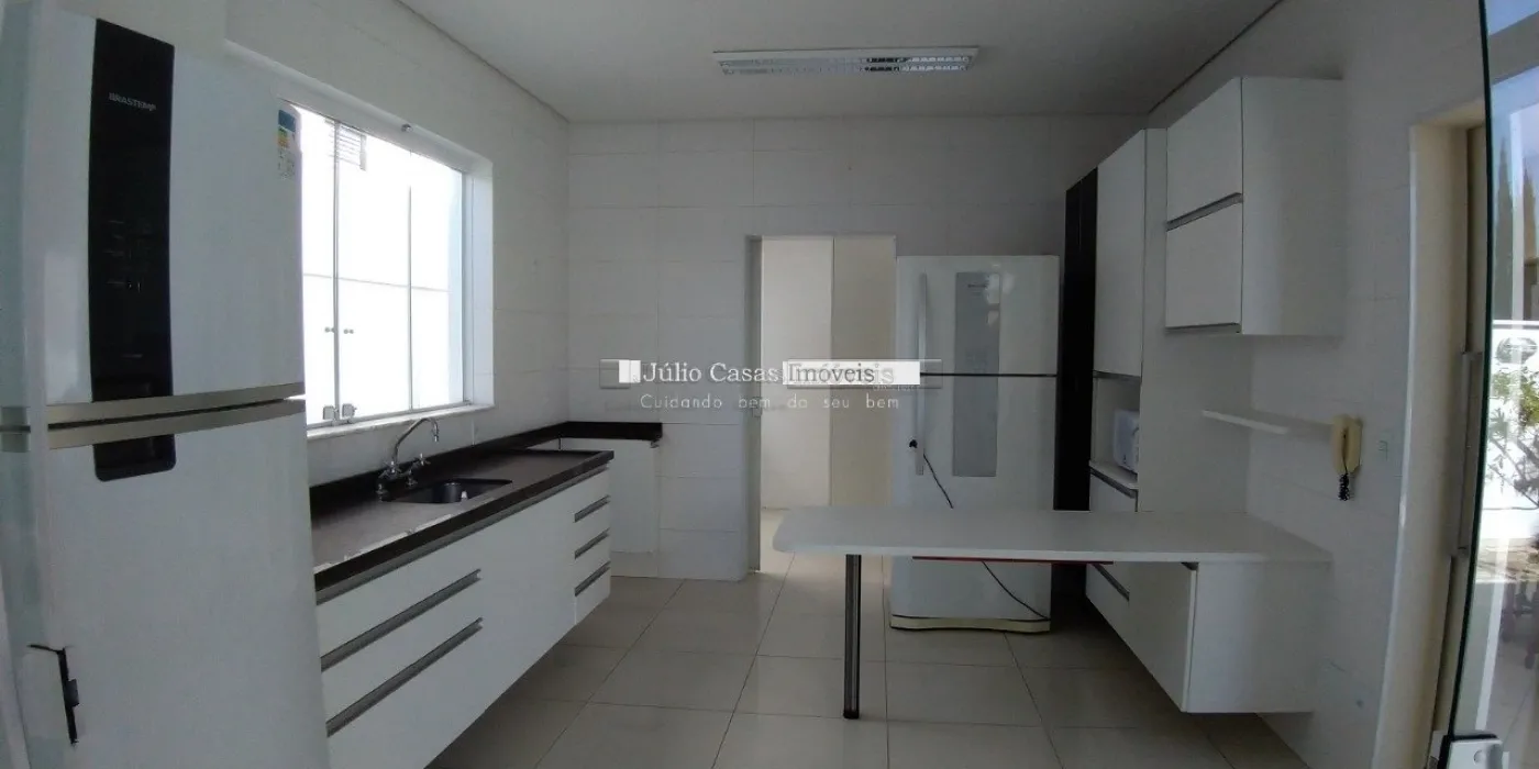 Sobrado em condomínio de alto padrão, com uma ampla sala de estar e uma cozinha integrada à área gourmet, ideal para momentos de confraternização. Conta com uma despensa, lavabo e um banheiro que atende a área gourmet. No piso superior, há três suítes, incluindo uma suíte máster com banheira, duas cubas, box de vidro temperado e armário planejado. Todos os banheiros possuem gabinetes.