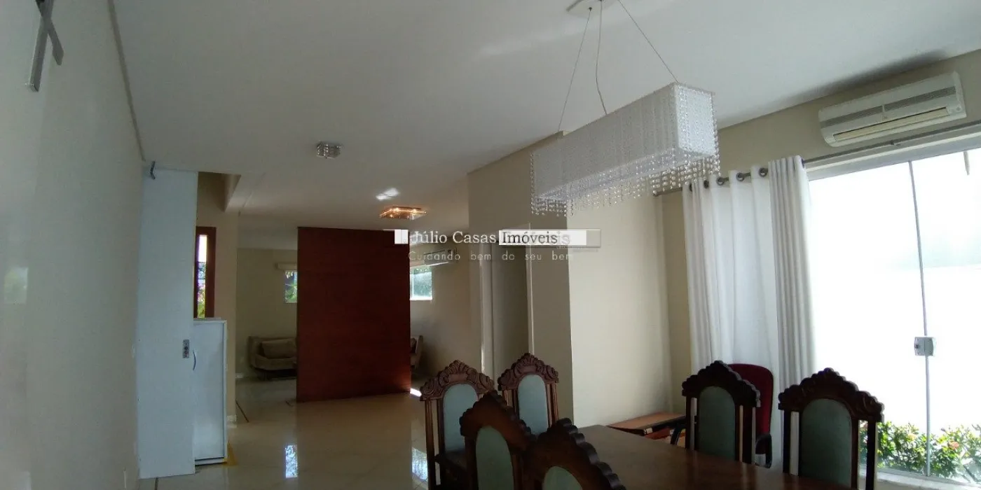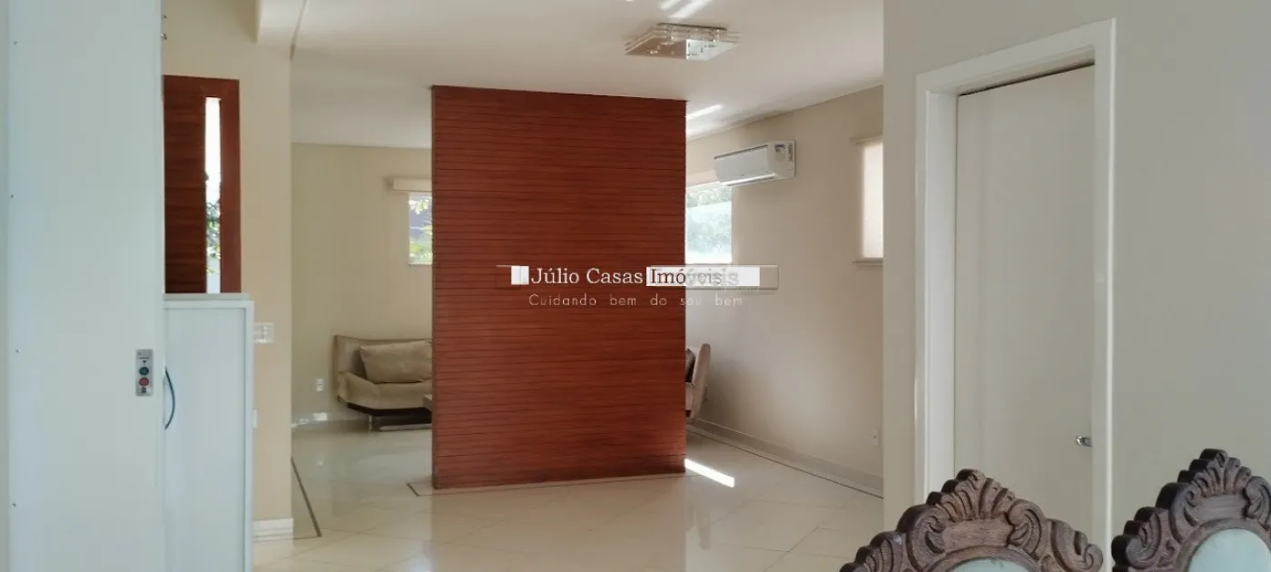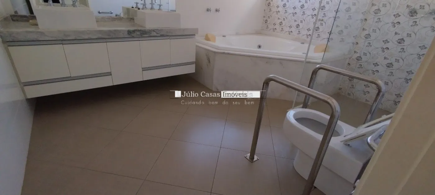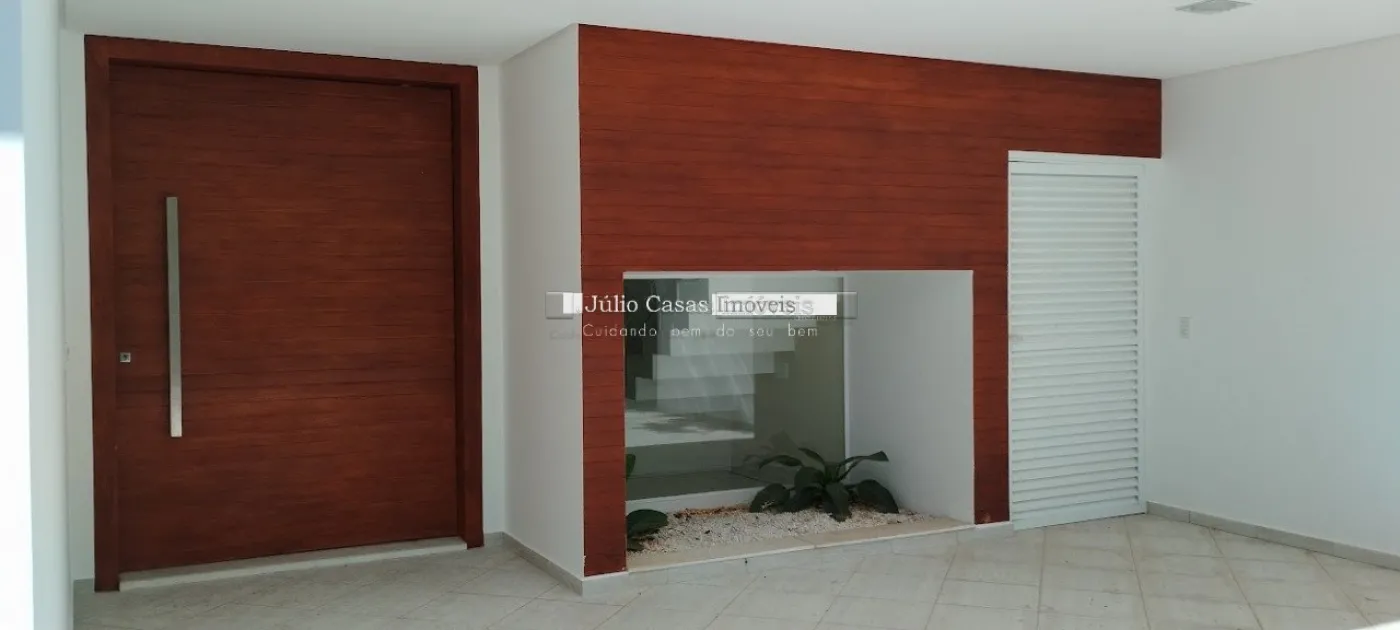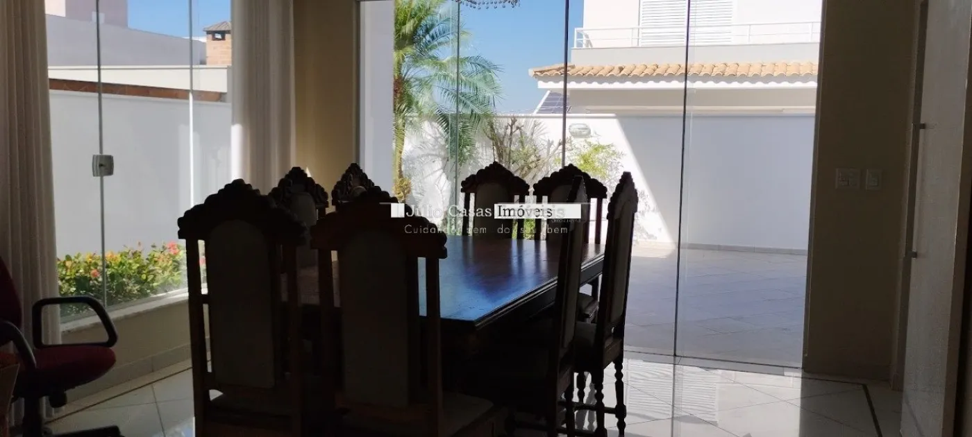 Sobrado em condomínio de alto padrão, com uma ampla sala de estar e uma cozinha integrada à área gourmet, ideal para momentos de confraternização. Conta com uma despensa, lavabo e um banheiro que atende a área gourmet. No piso superior, há três suítes, incluindo uma suíte máster com banheira, duas cubas, box de vidro temperado e armário planejado. Todos os banheiros possuem gabinetes.